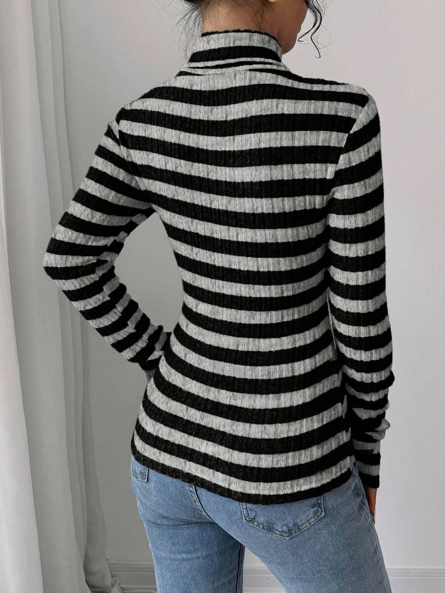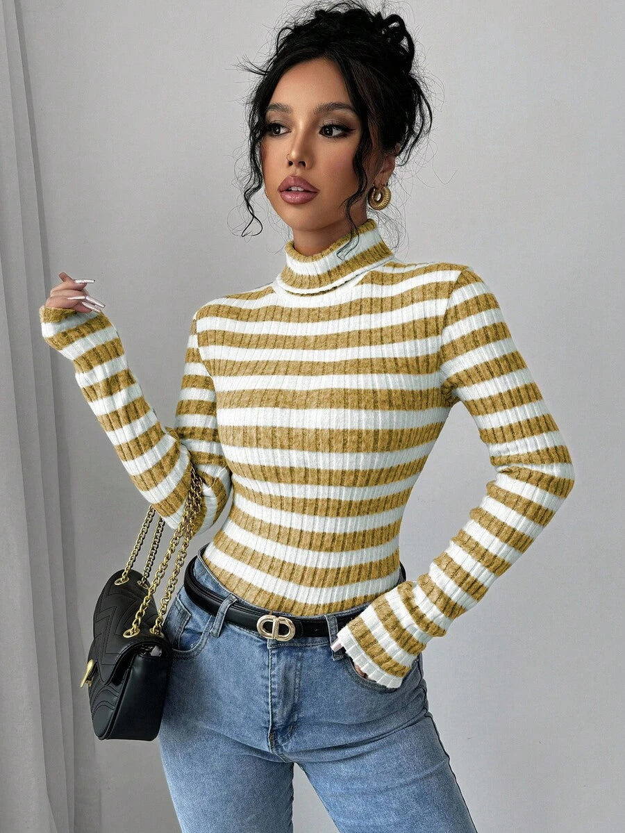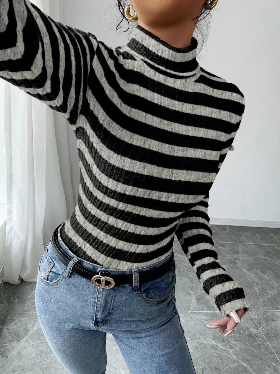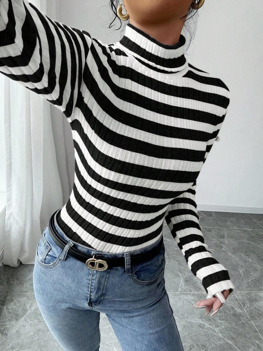 MIU AZRA Ženska modna majica s visokim vratom, dugim rukavima i uskim krojem, s cirkonima, pogodna za svakodnevno nošenje, jesen