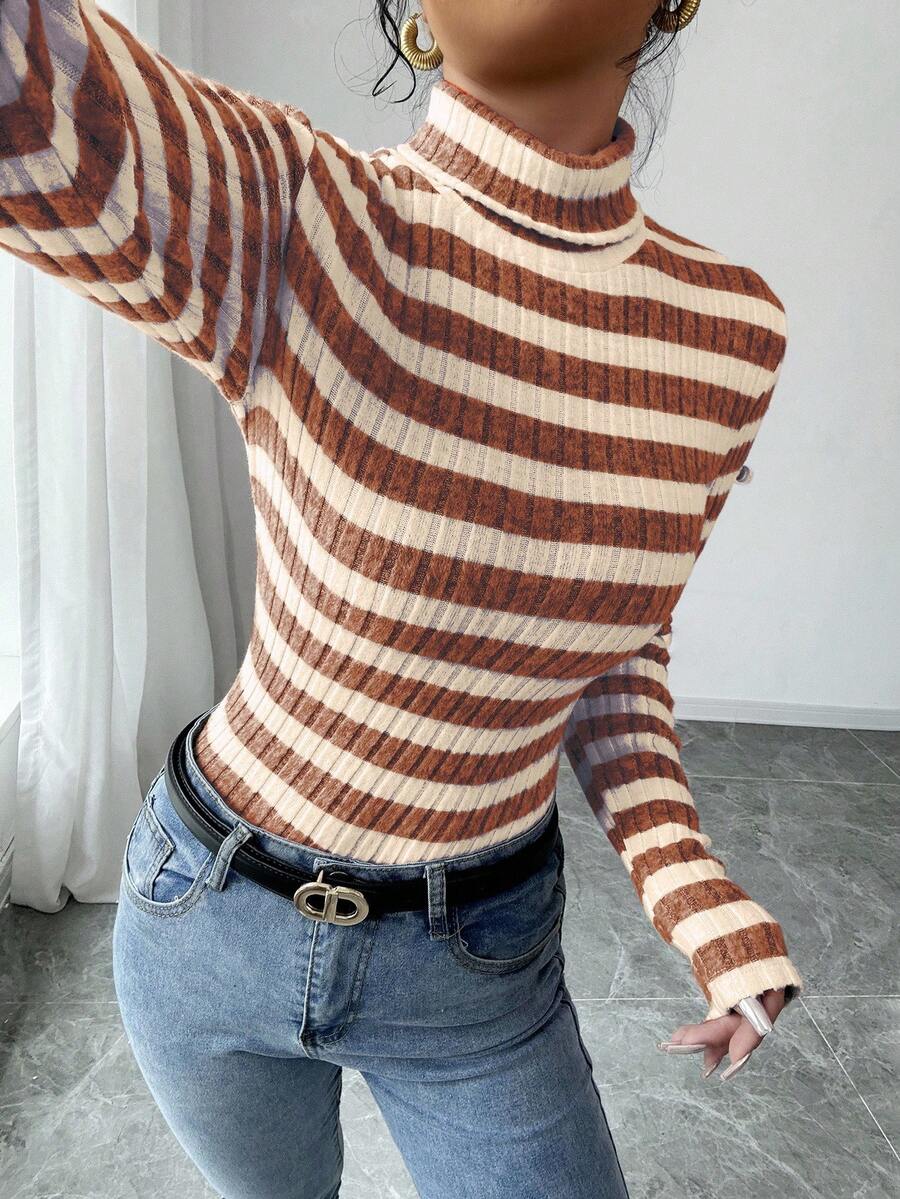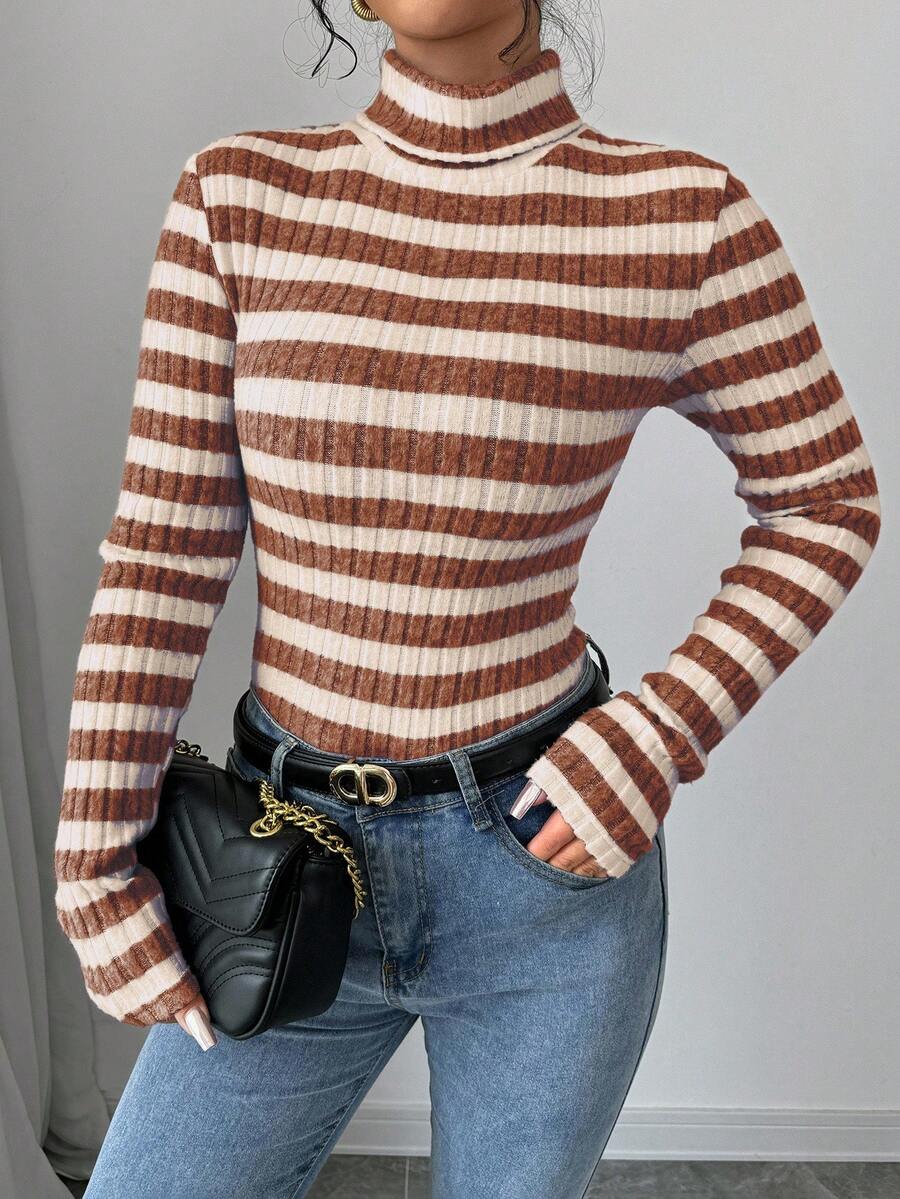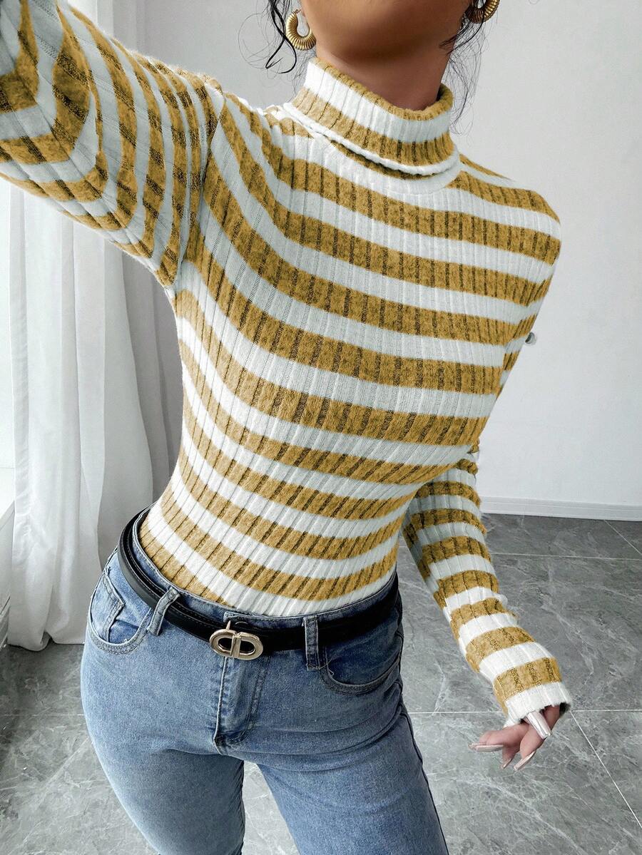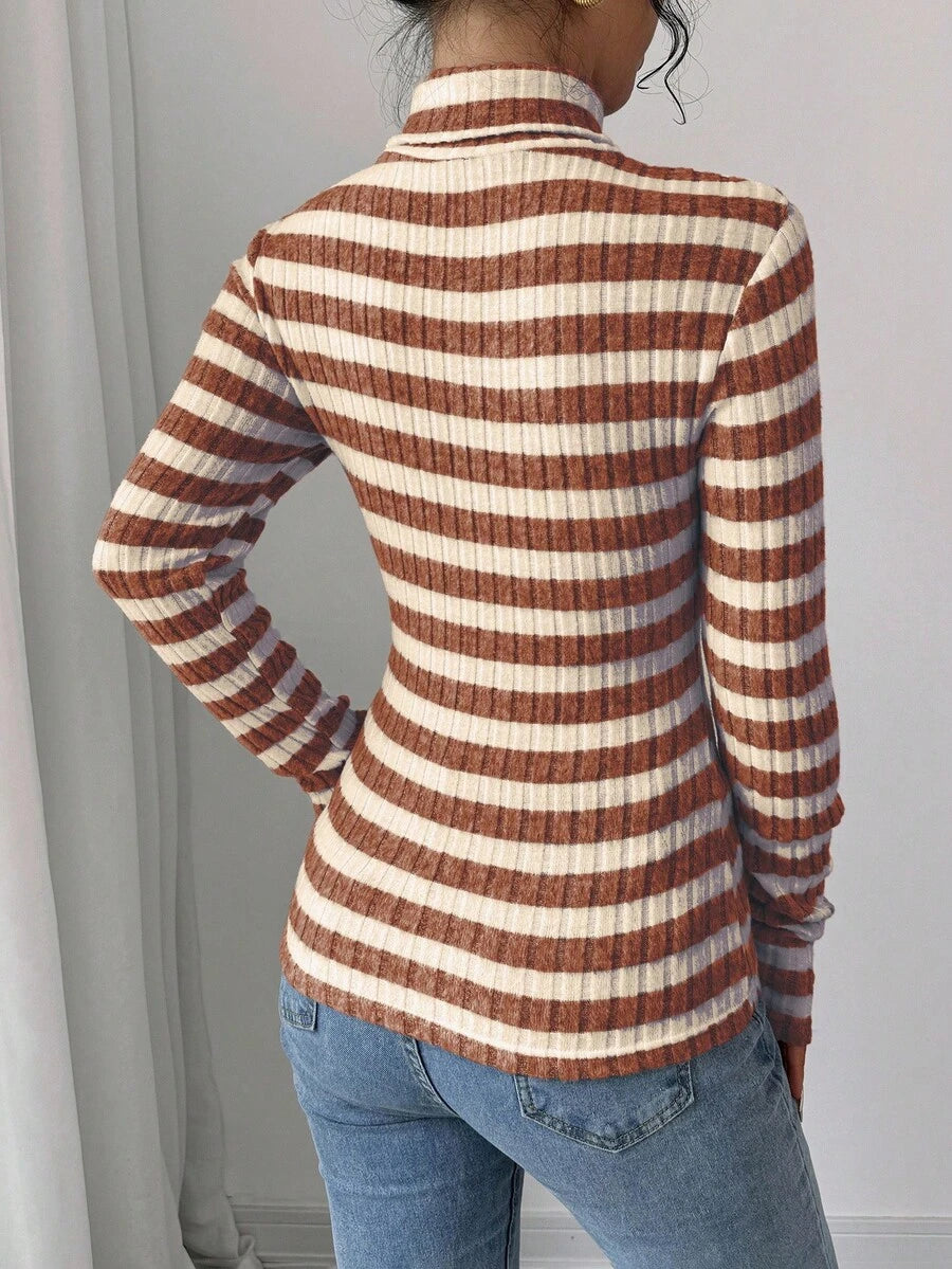 MIU AZRA Ženska modna majica s visokim vratom, dugim rukavima i uskim krojem, s cirkonima, pogodna za svakodnevno nošenje, jesen