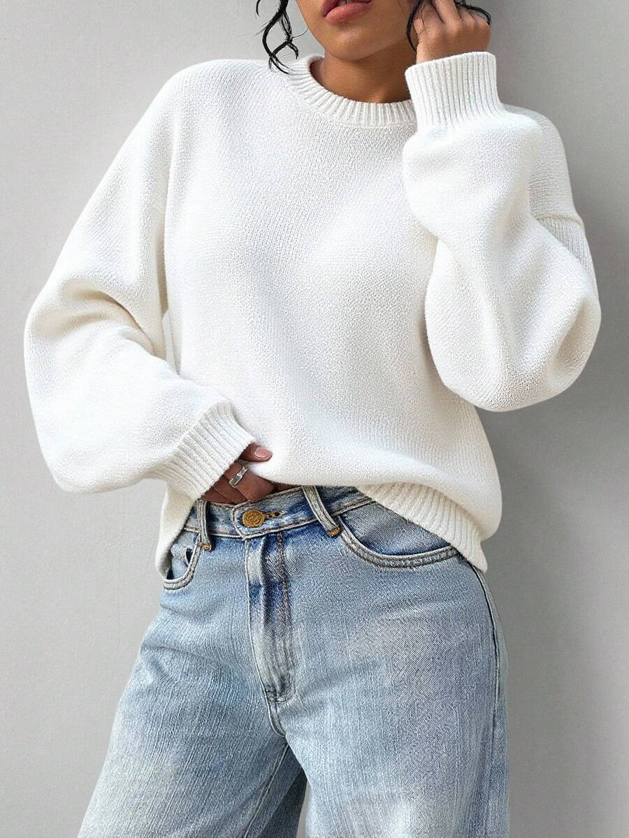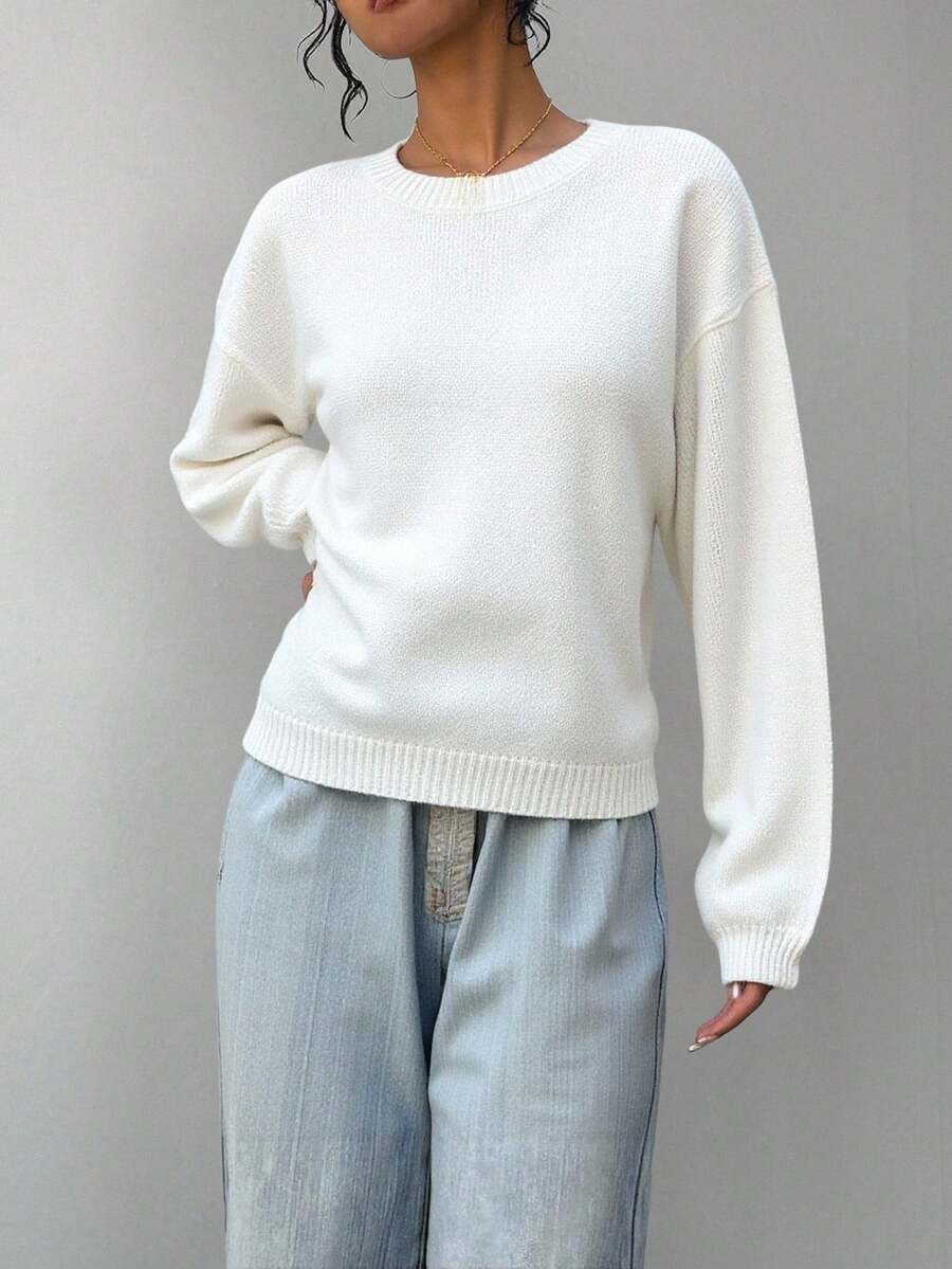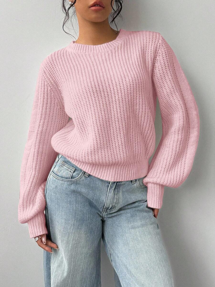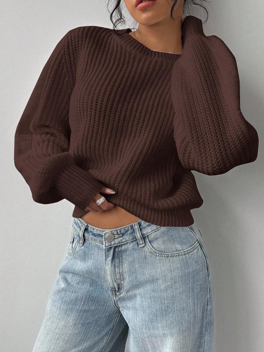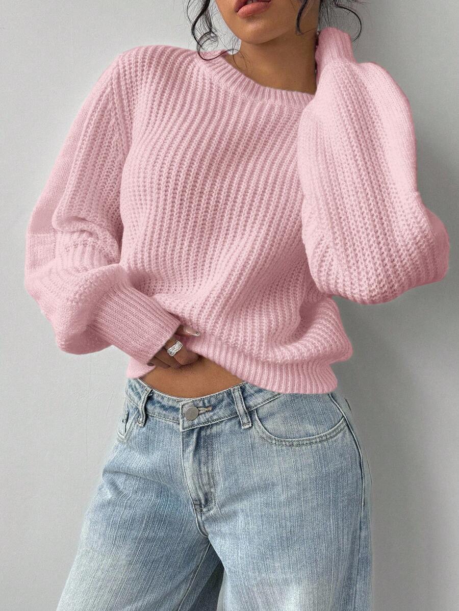 MIU BASICS Women's Casual Solid Color Round Neck Long Sleeve Knitted Sweater, Autumn/Winter, Chic Insulation,Tops For School