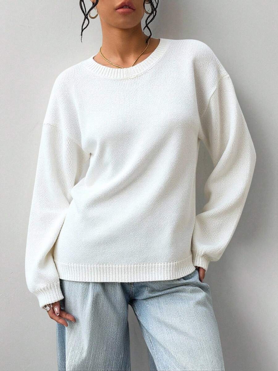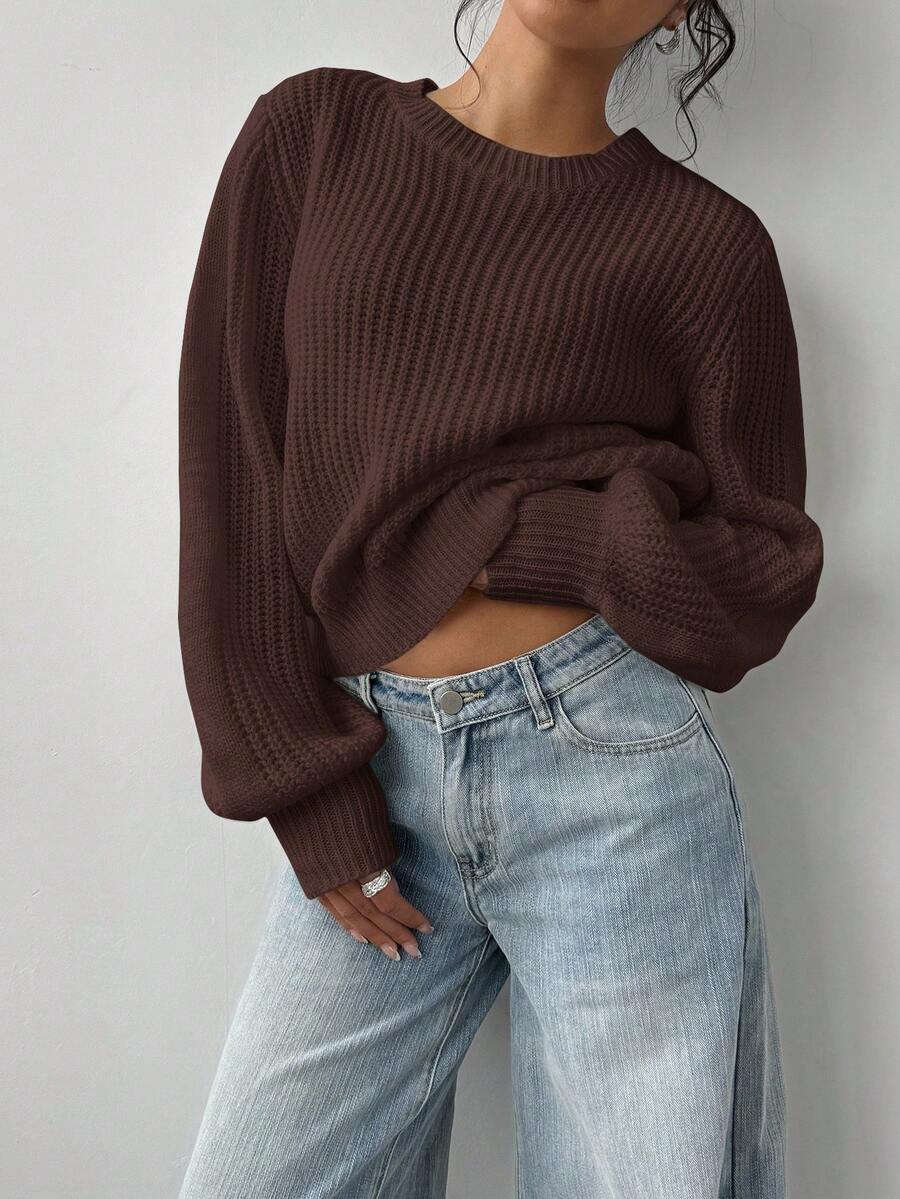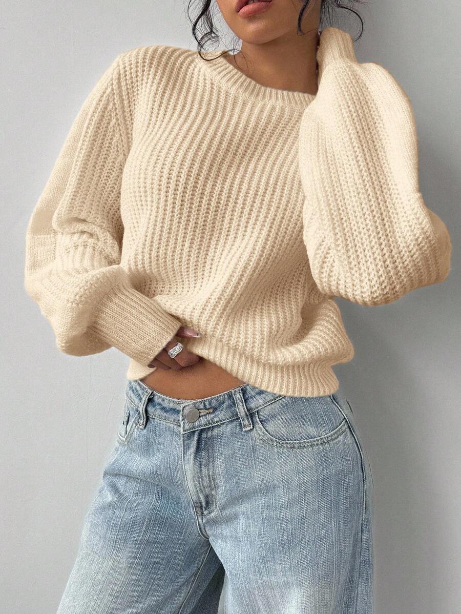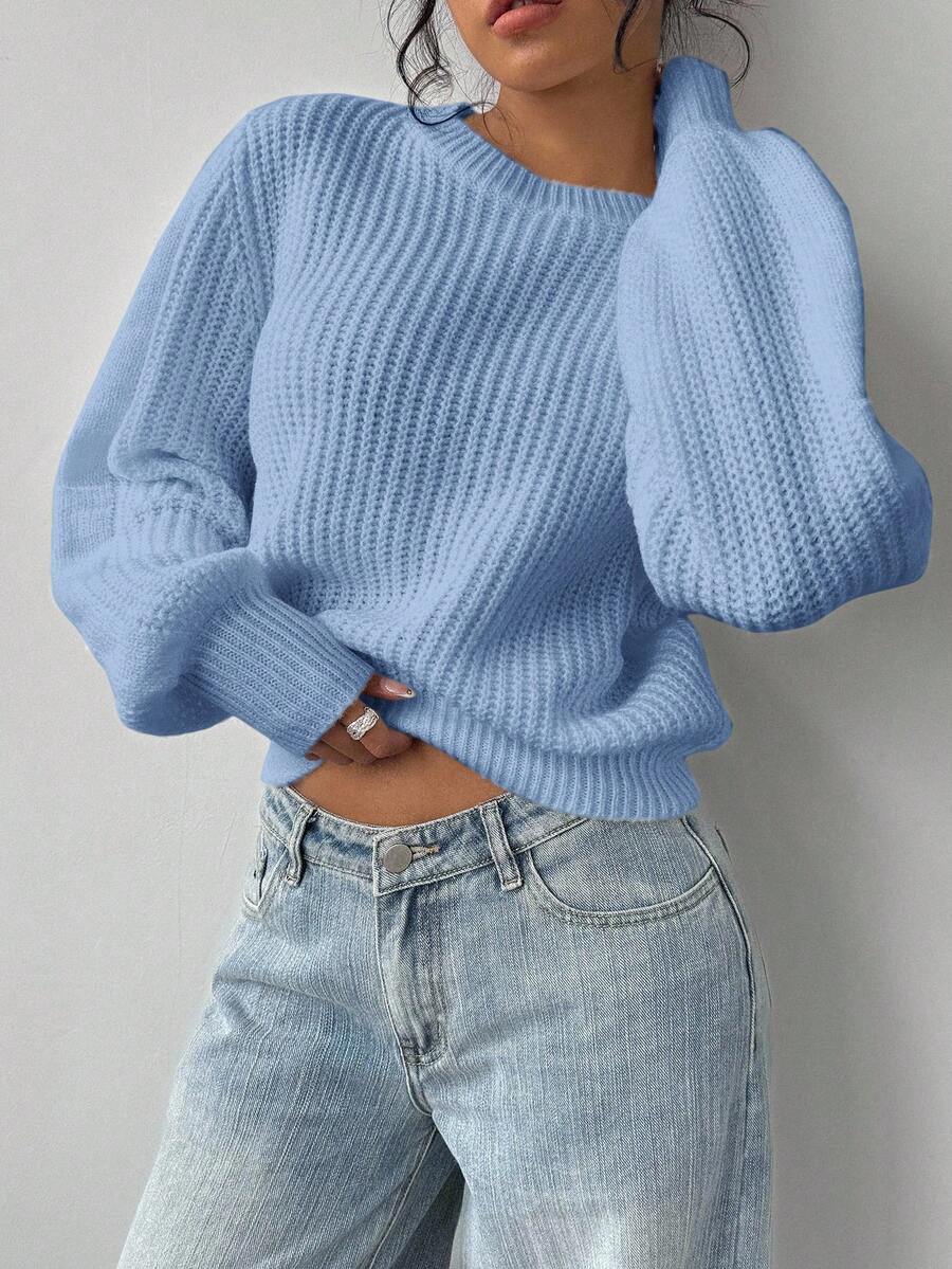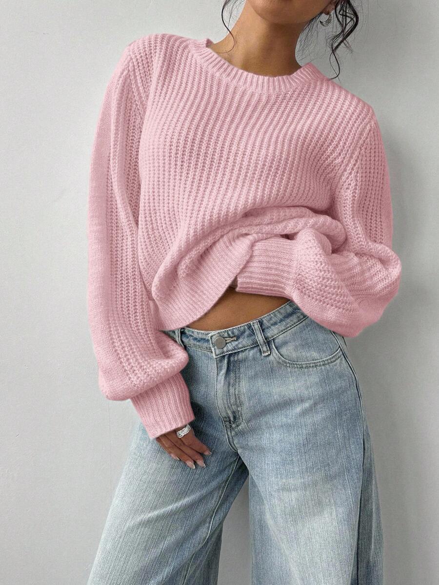 MIU BASICS Women's Casual Solid Color Round Neck Long Sleeve Knitted Sweater, Autumn/Winter, Chic Insulation,Tops For School