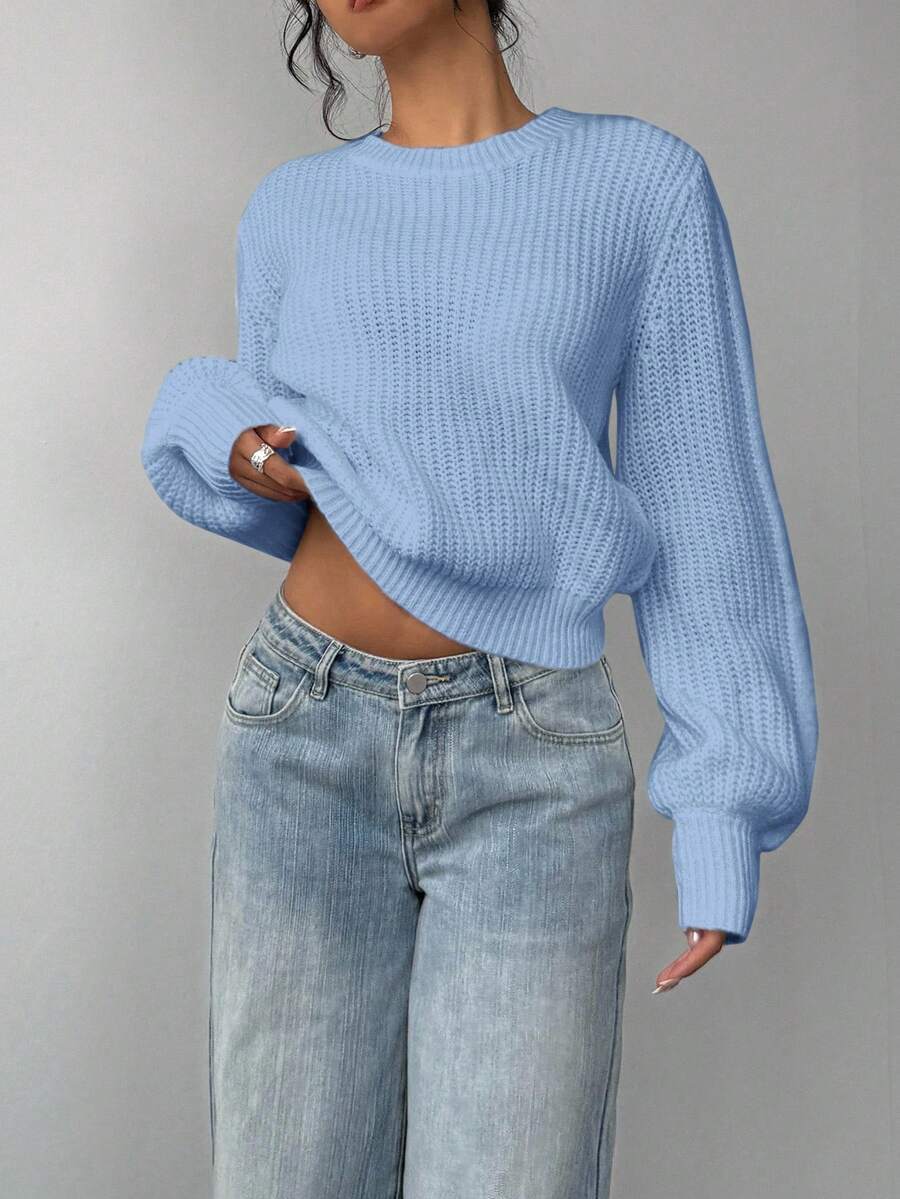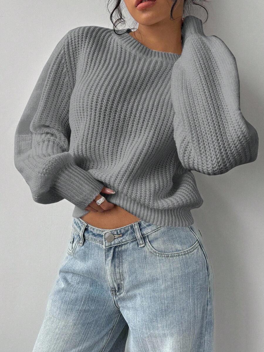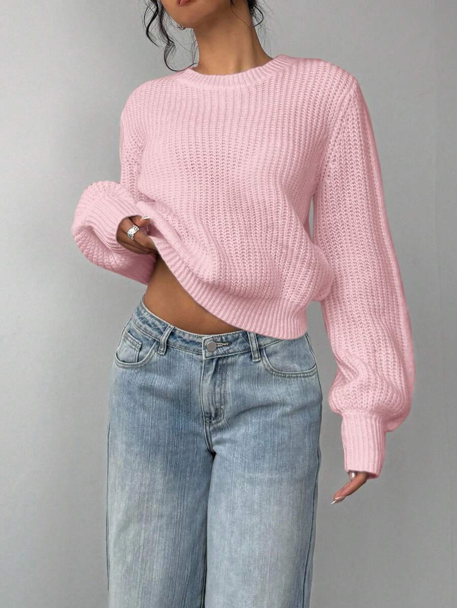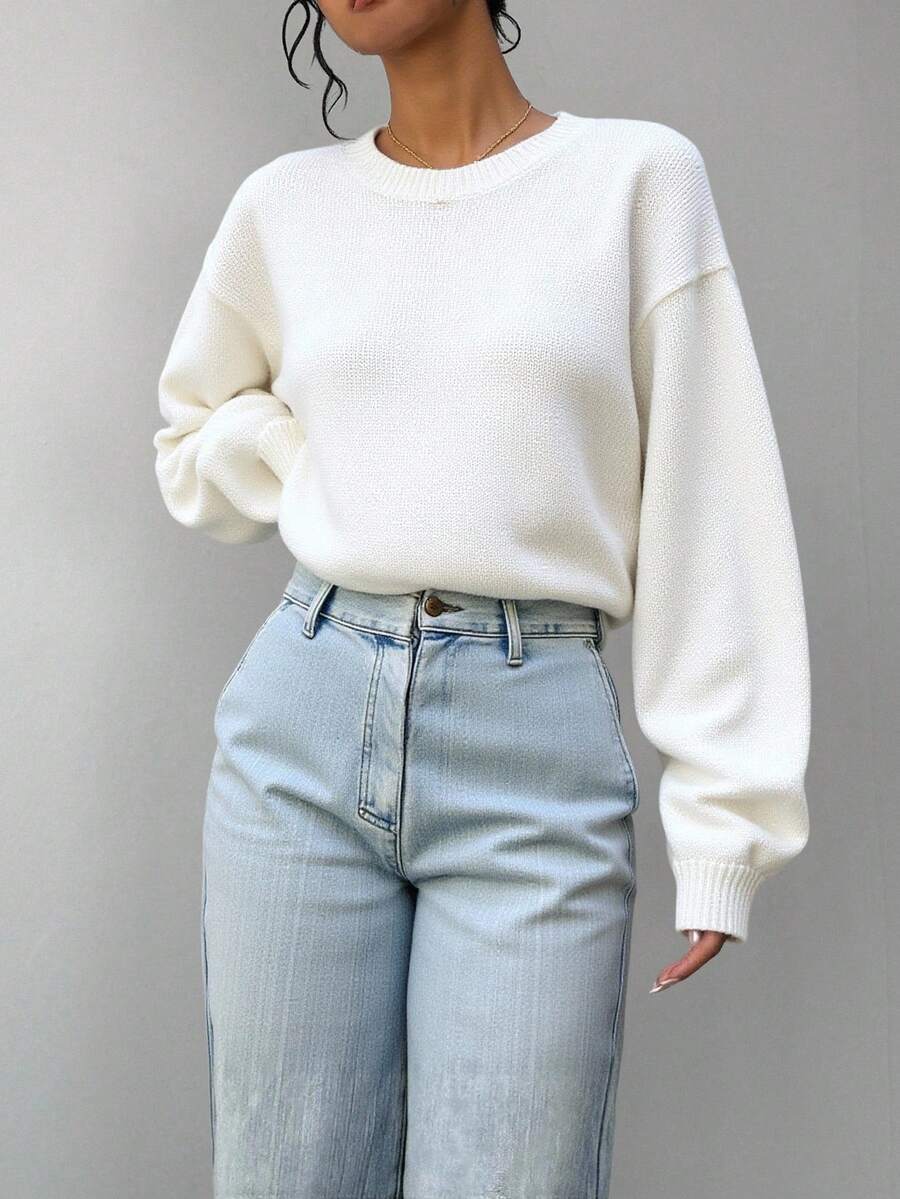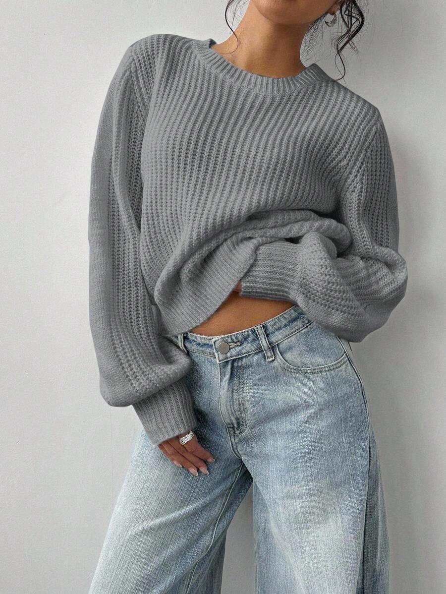 MIU BASICS Women's Casual Solid Color Round Neck Long Sleeve Knitted Sweater, Autumn/Winter, Chic Insulation,Tops For School