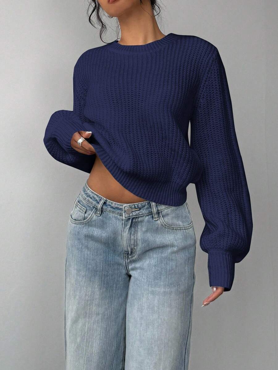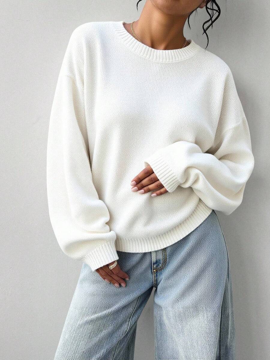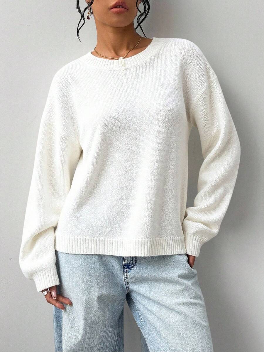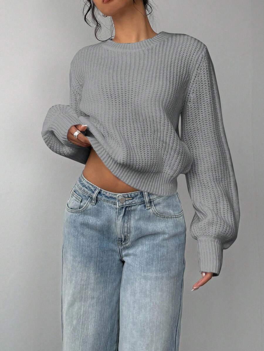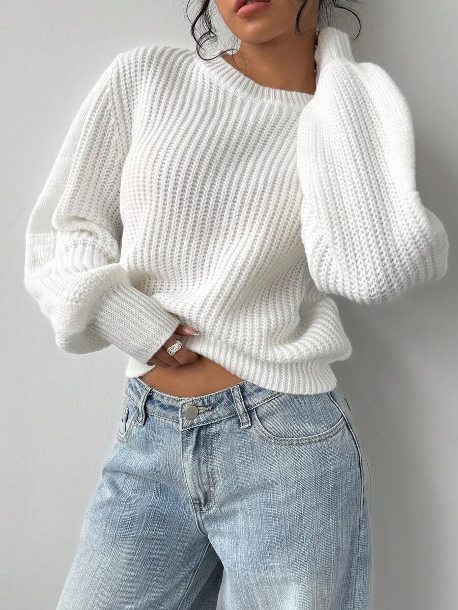 MIU BASICS Women's Casual Solid Color Round Neck Long Sleeve Knitted Sweater, Autumn/Winter, Chic Insulation,Tops For School