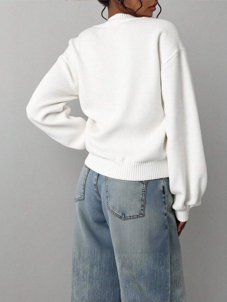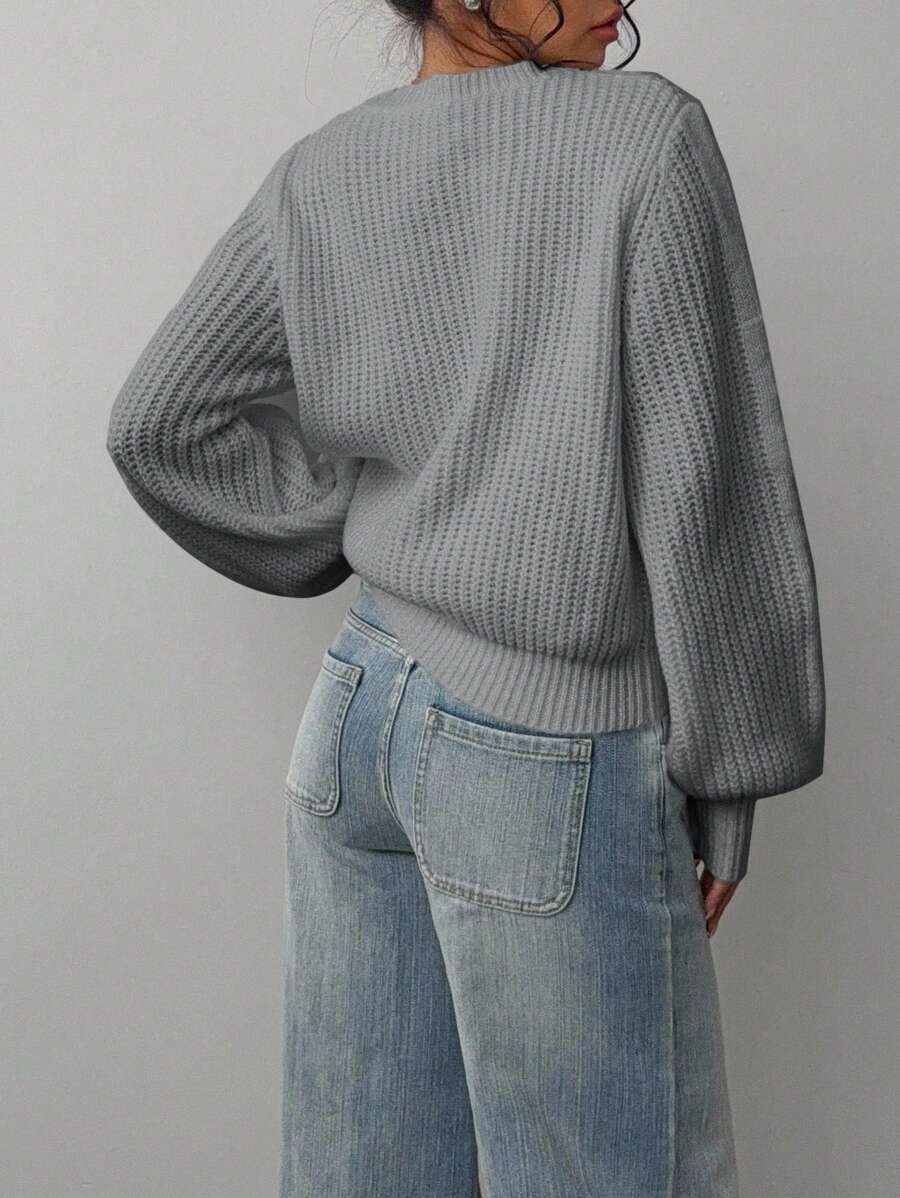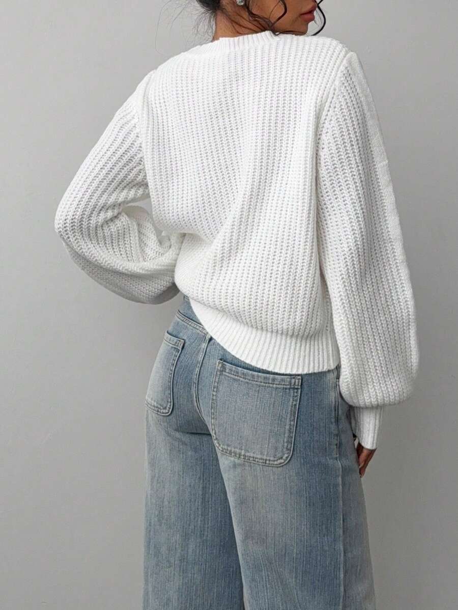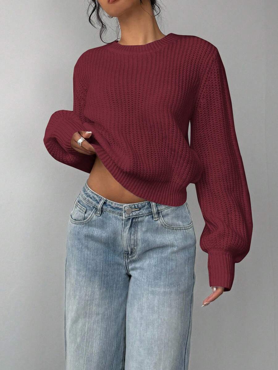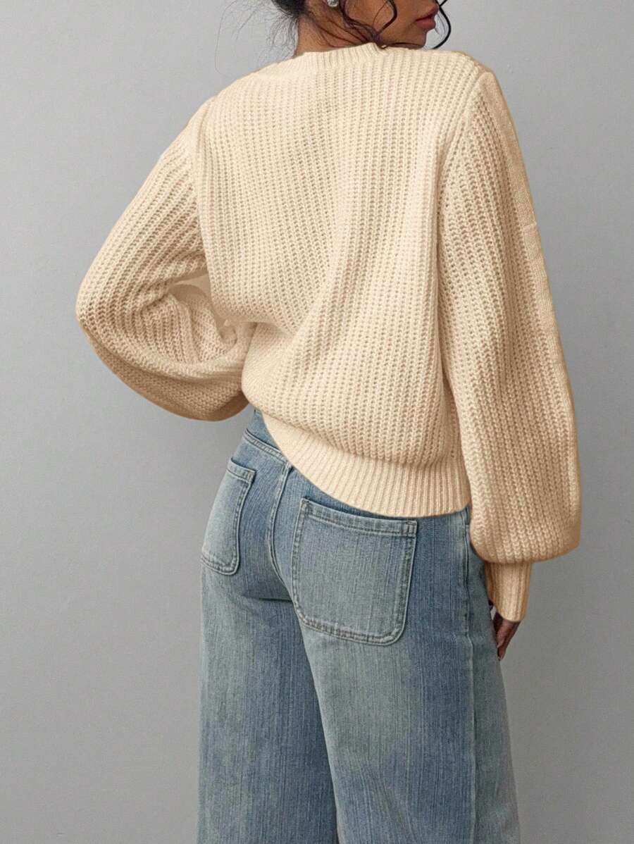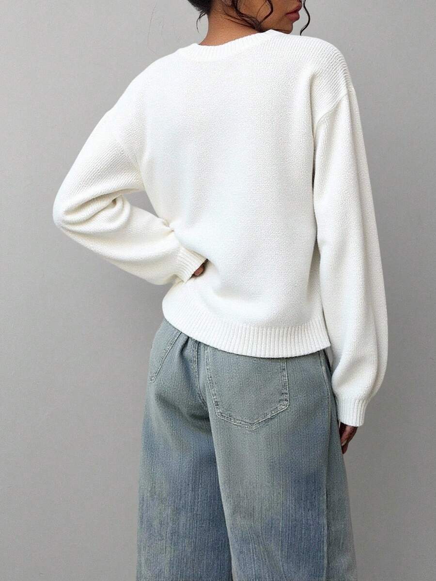 MIU BASICS Women's Casual Solid Color Round Neck Long Sleeve Knitted Sweater, Autumn/Winter, Chic Insulation,Tops For School