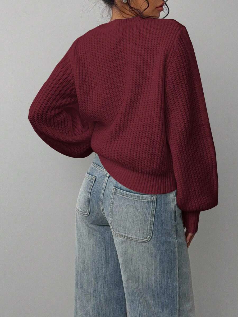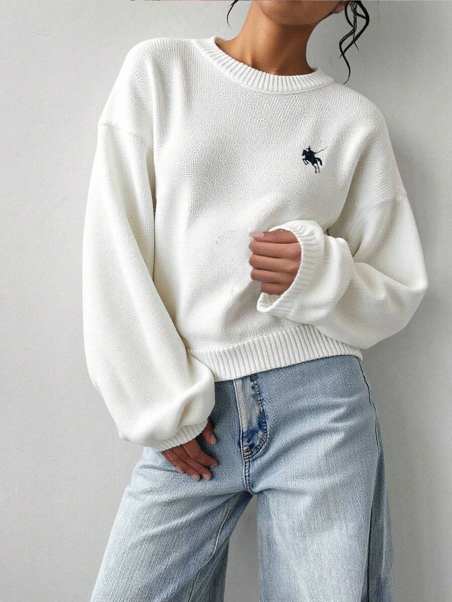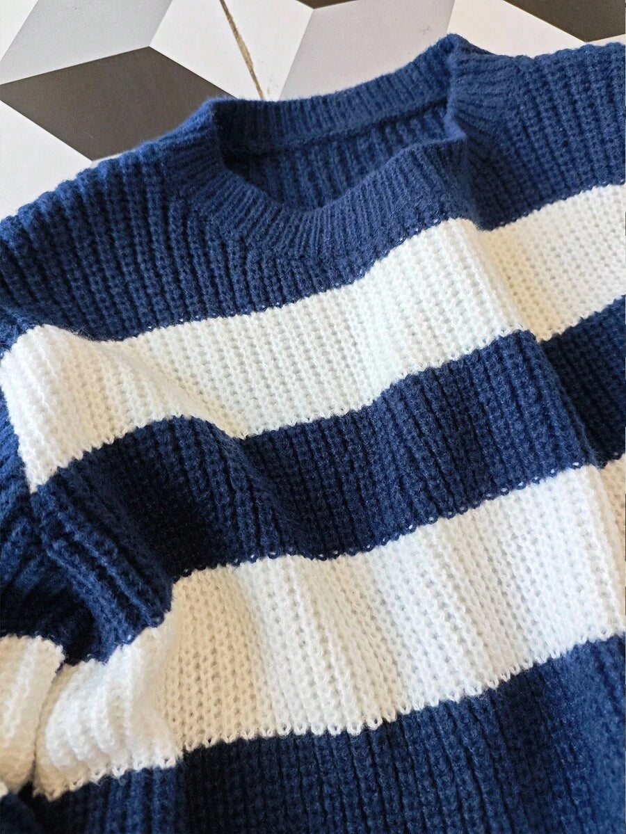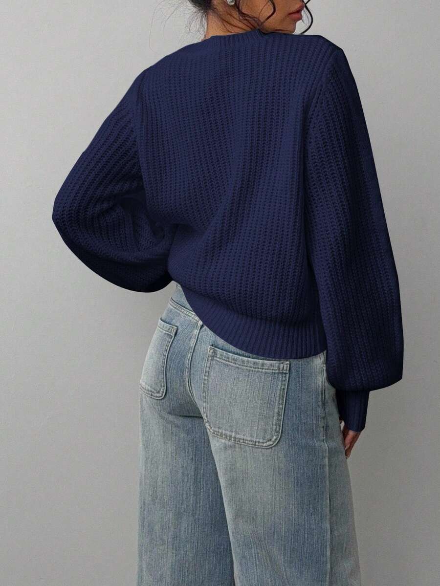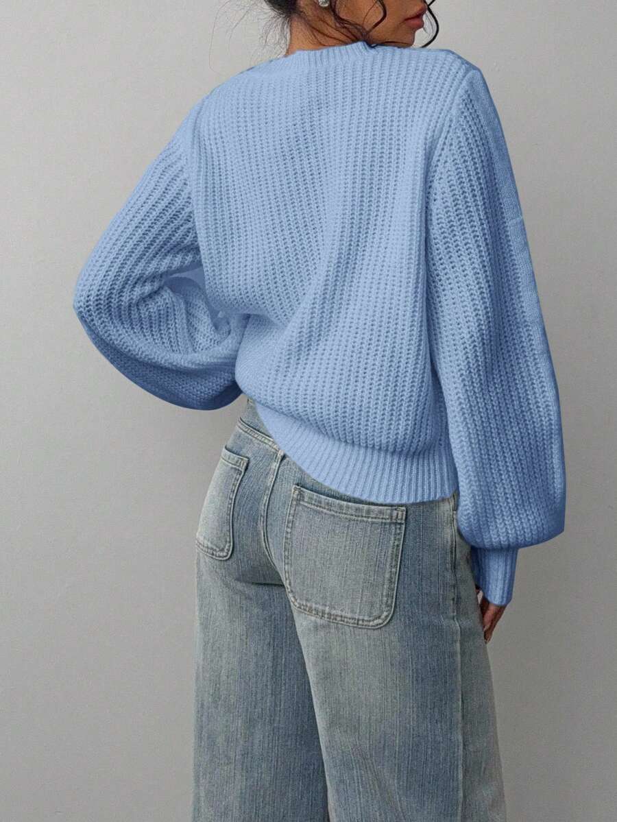 MIU BASICS Women's Casual Solid Color Round Neck Long Sleeve Knitted Sweater, Autumn/Winter, Chic Insulation,Tops For School