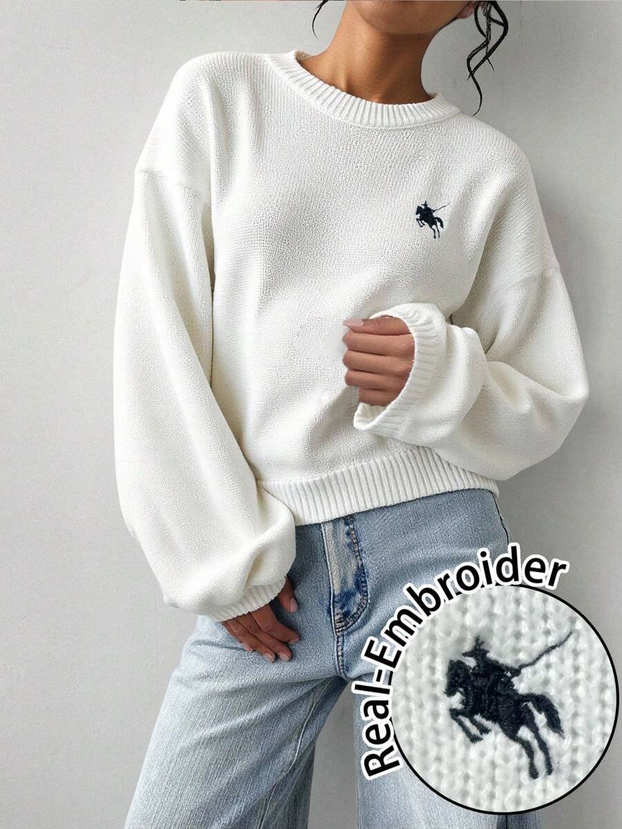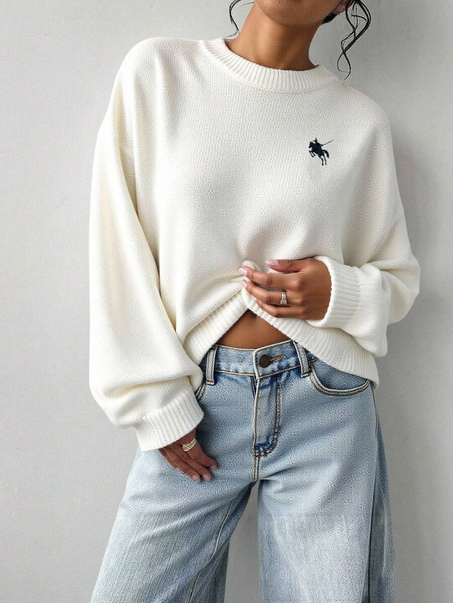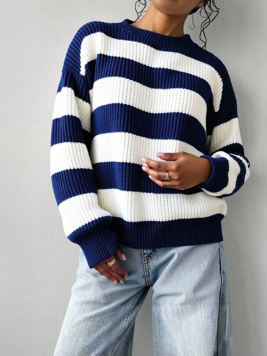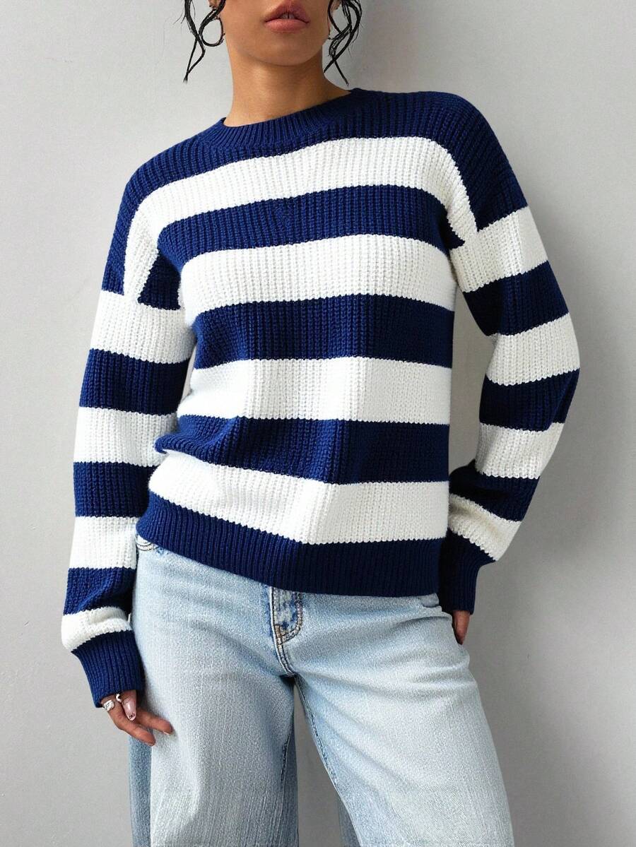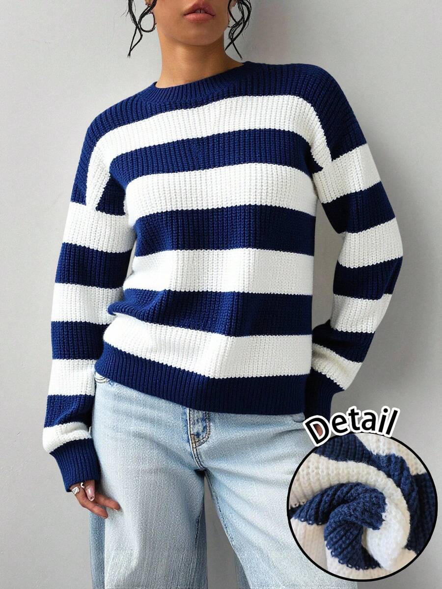 MIU BASICS Women's Casual Solid Color Round Neck Long Sleeve Knitted Sweater, Autumn/Winter, Chic Insulation,Tops For School