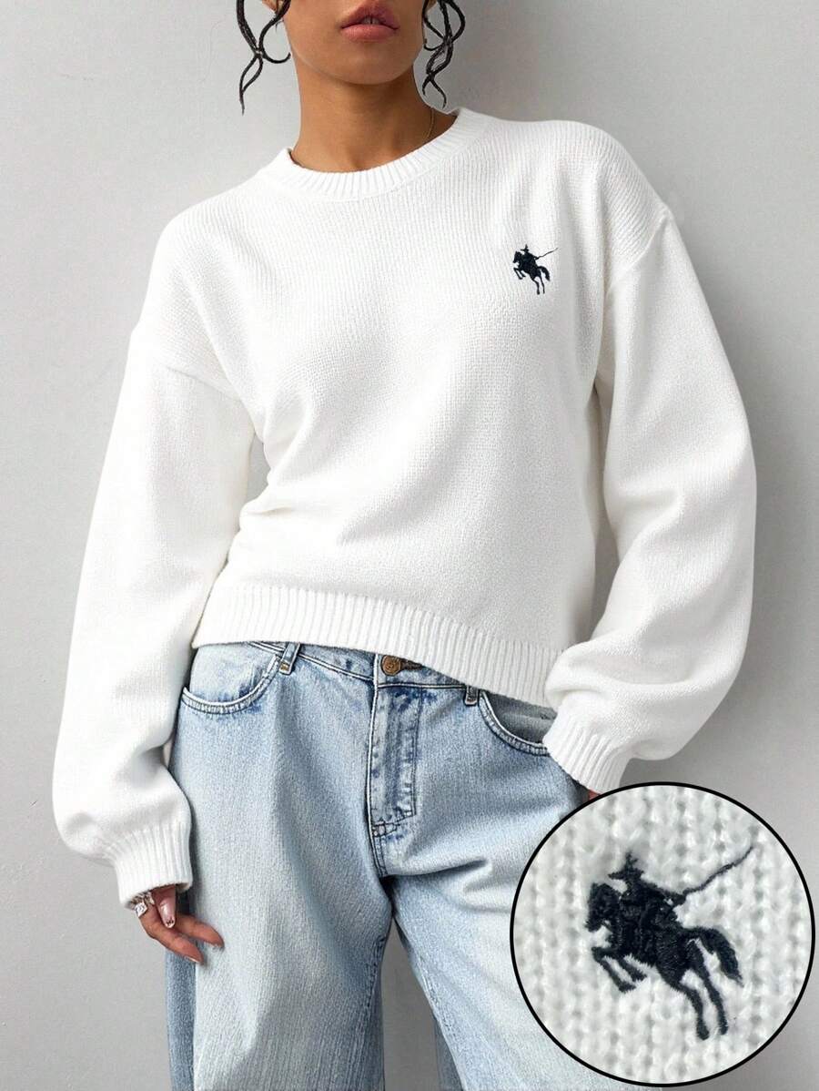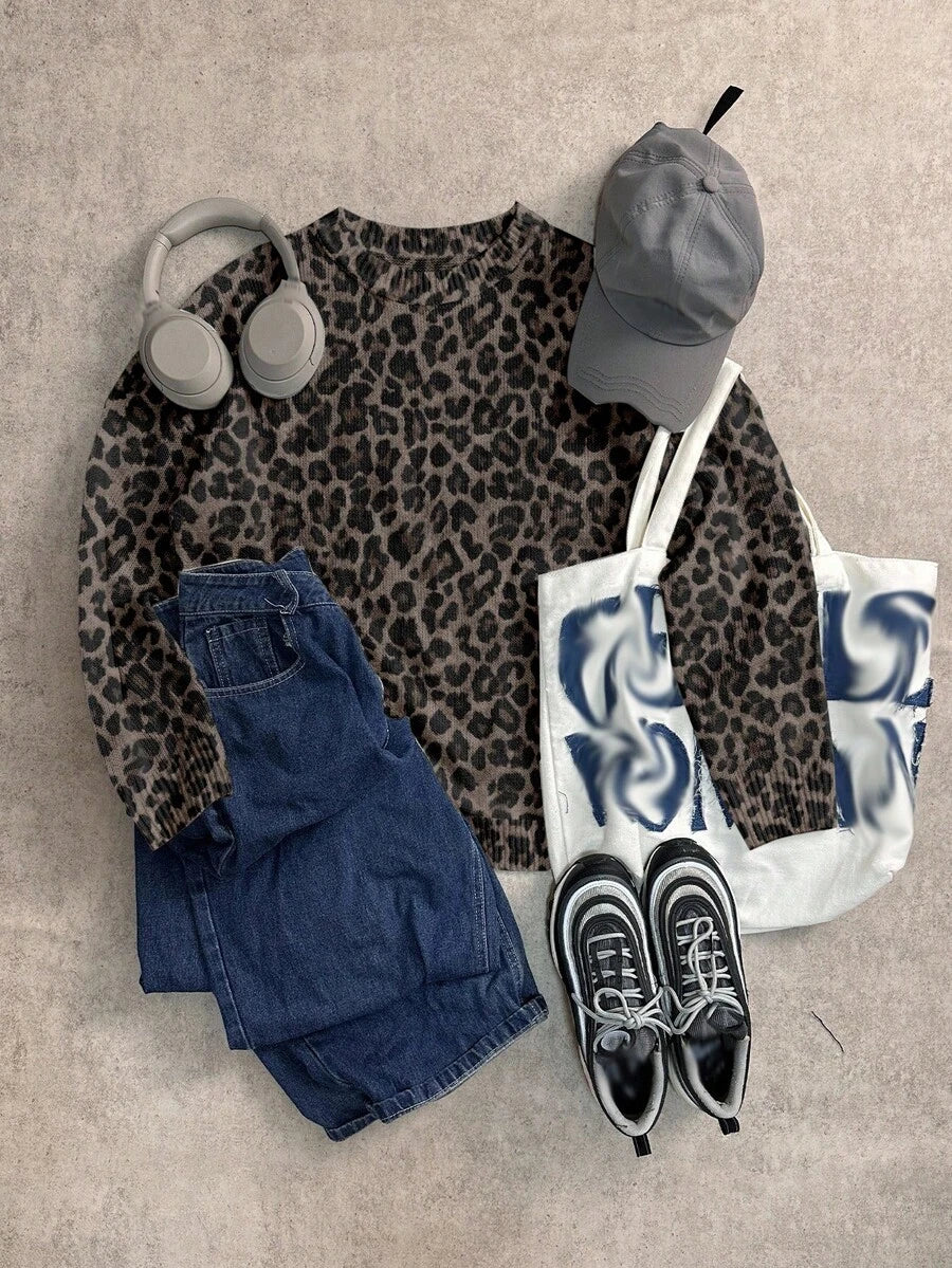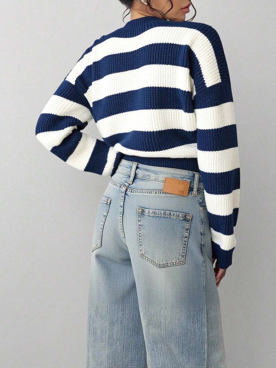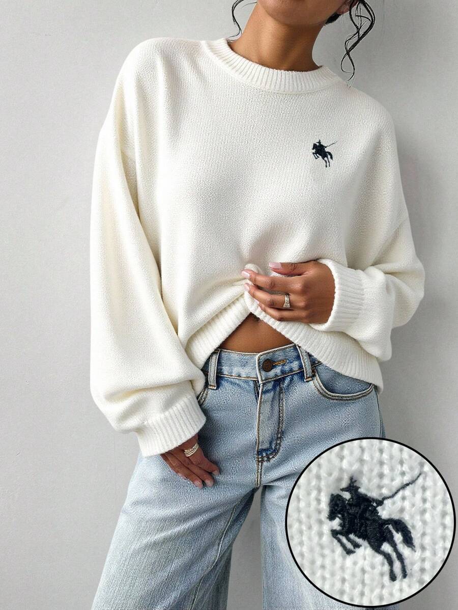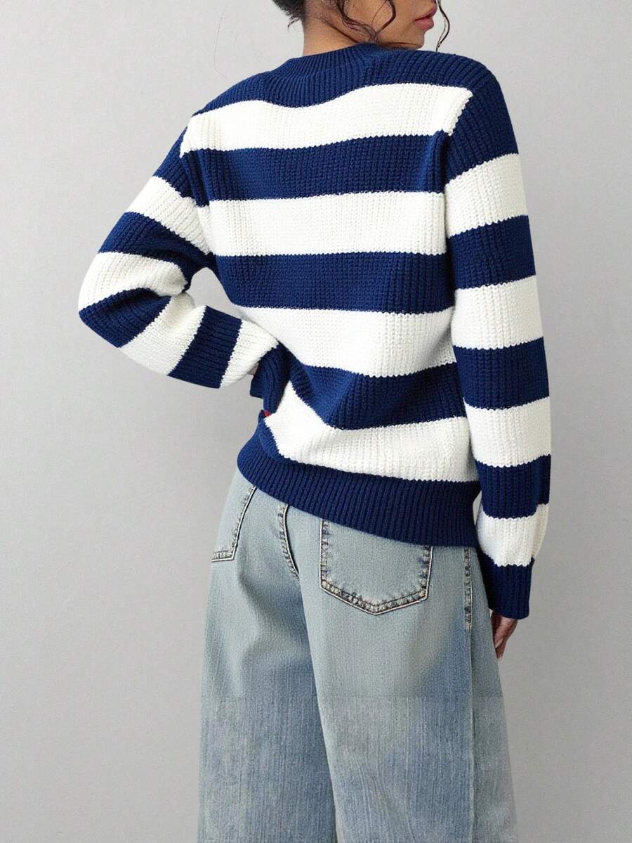 MIU BASICS Women's Casual Solid Color Round Neck Long Sleeve Knitted Sweater, Autumn/Winter, Chic Insulation,Tops For School