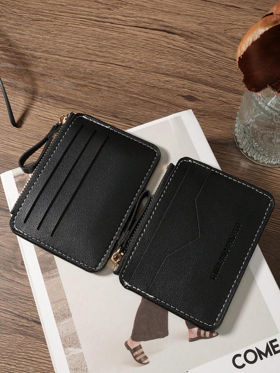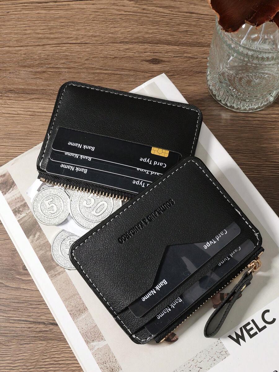 MIU Black Letter Mini Purse Pocket Wallet Fashion Minimalist Card Holder Slim Lightweight Portable Cash Money ID Card Credit Card Coin Pocket For Birthday Gift Women Teenagers For College Student School Student Men Male
