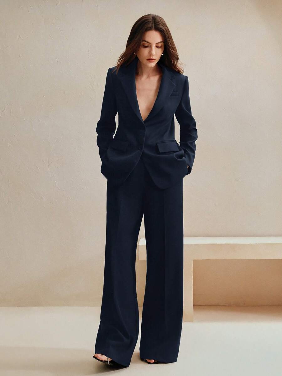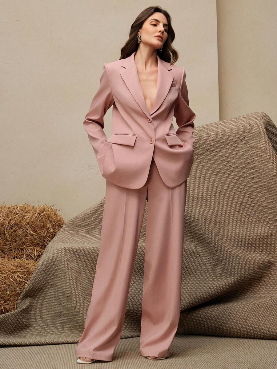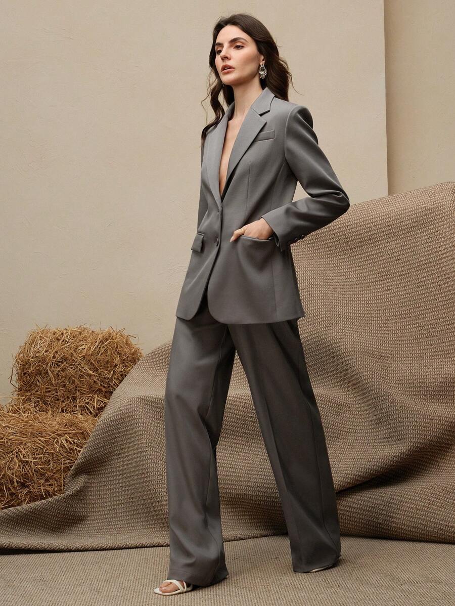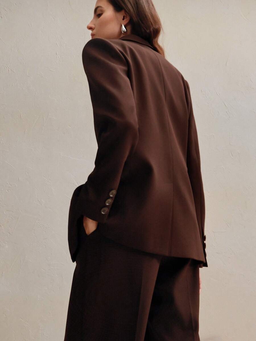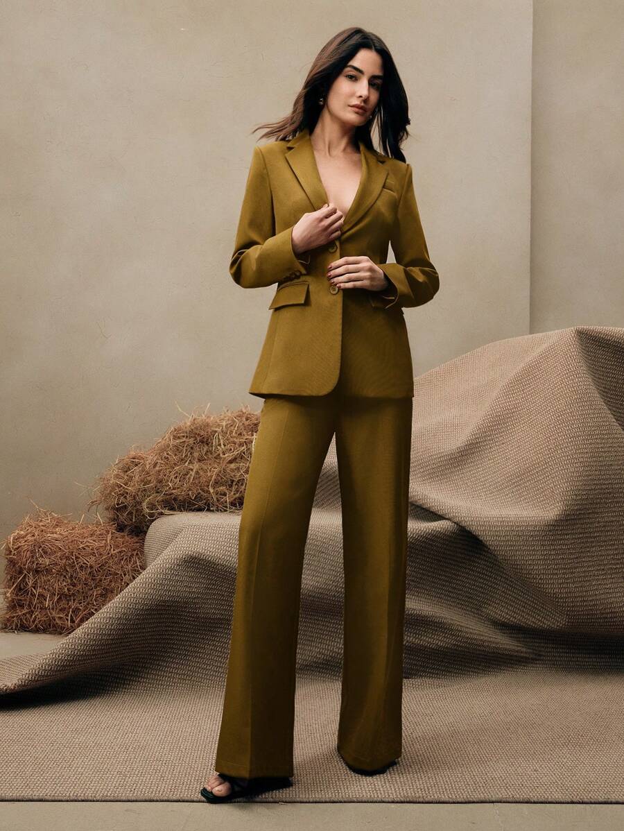 MIU Business Casual Elegant Old Money Style Women 2 Pieces Suit Set: Blazer Jacket Straight Pants, Maillard Tone