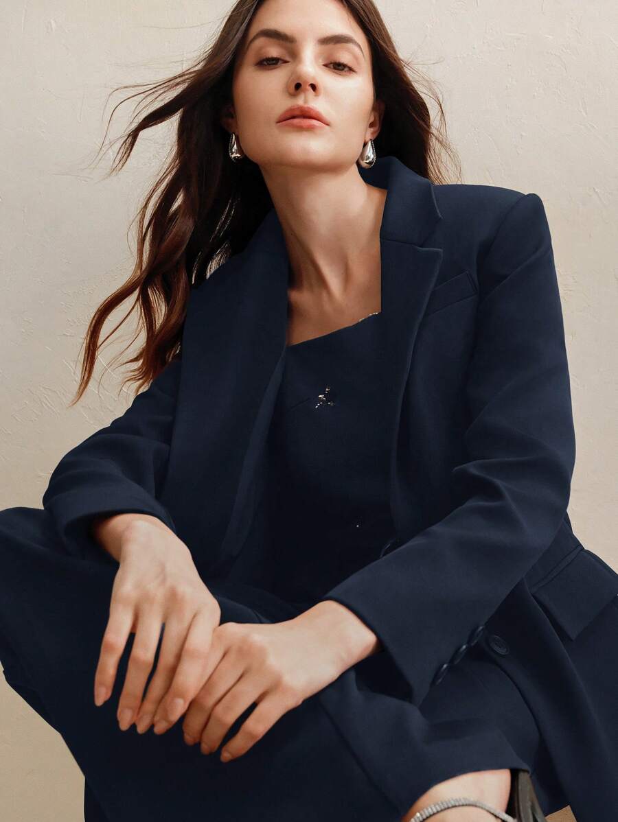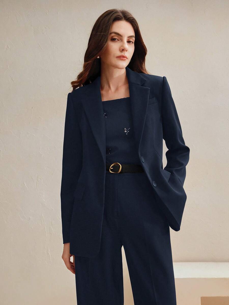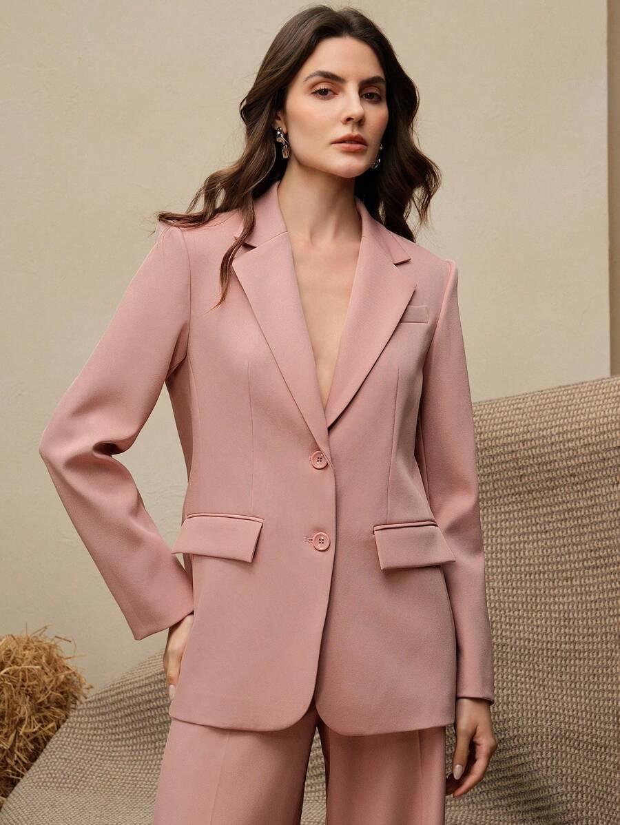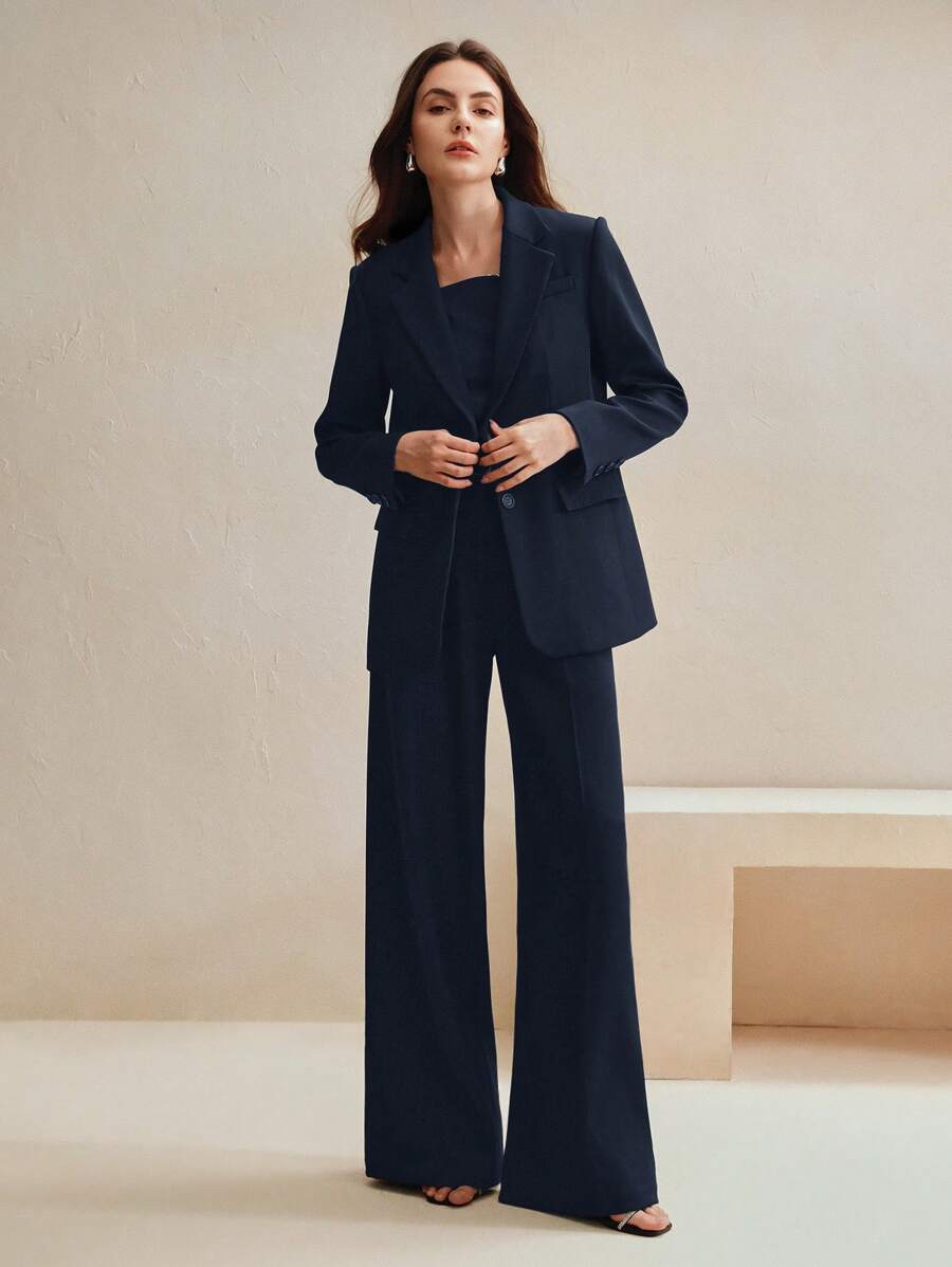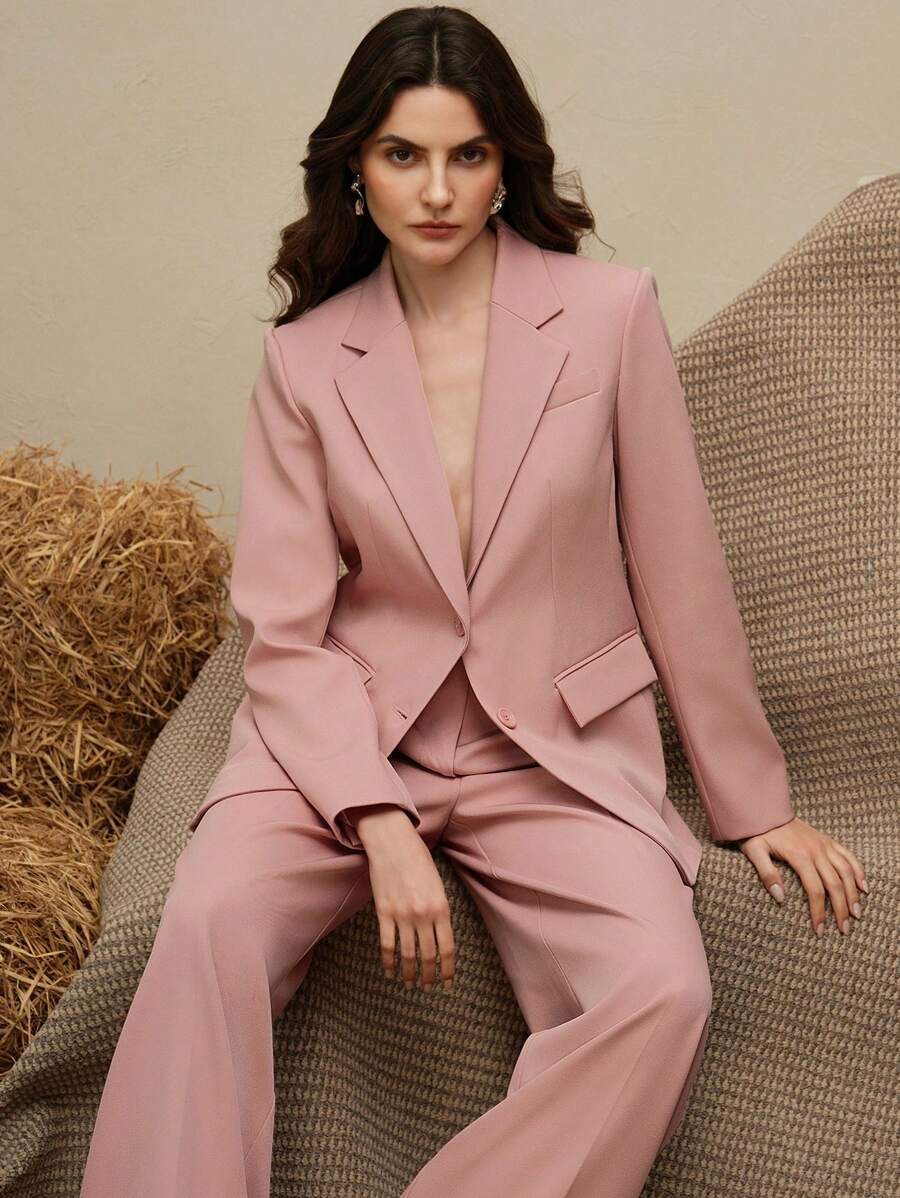 MIU Business Casual Elegant Old Money Style Women 2 Pieces Suit Set: Blazer Jacket Straight Pants, Maillard Tone