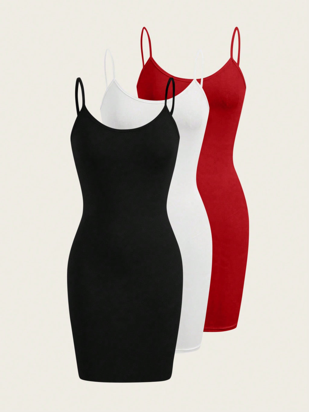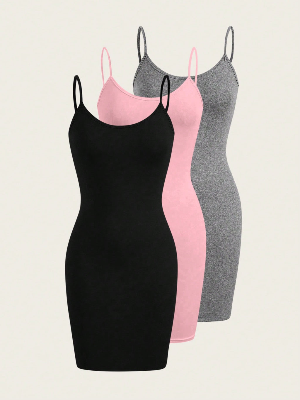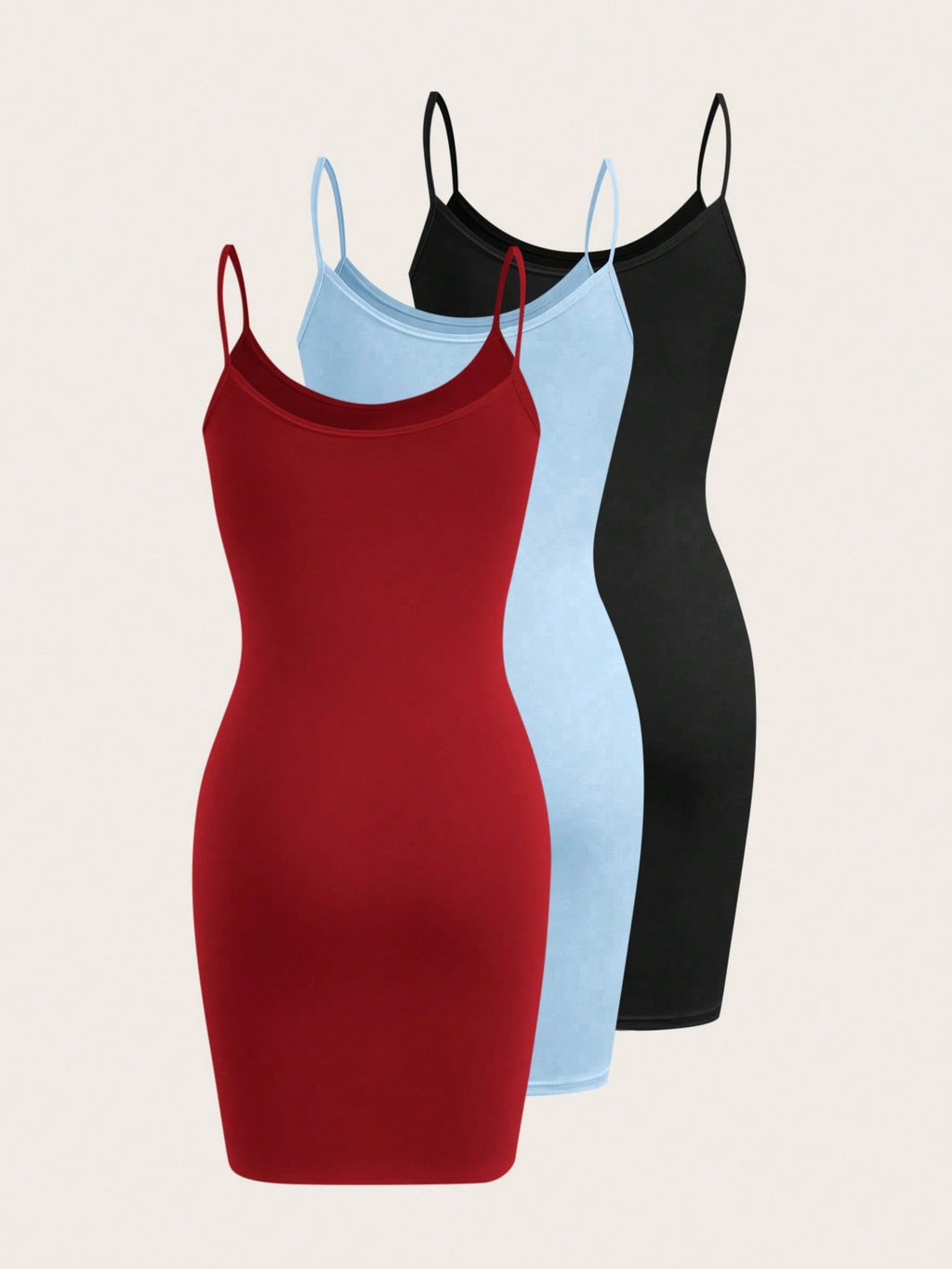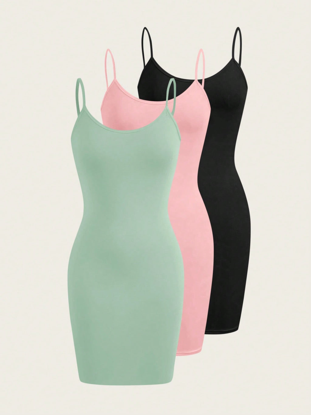 MIU Calvaya set od 3 haljine jednobojnog dizajna s tankim naramenicama.