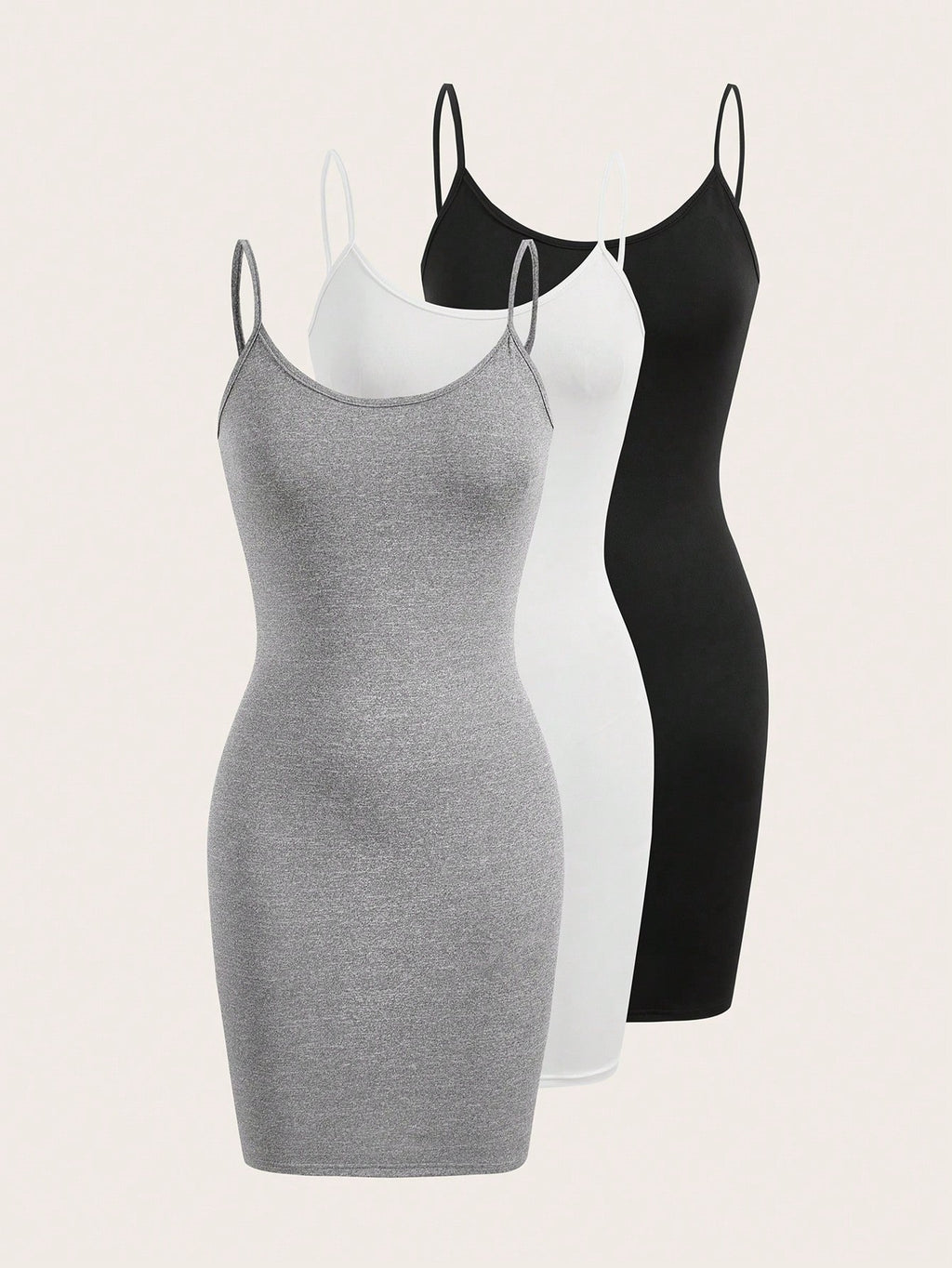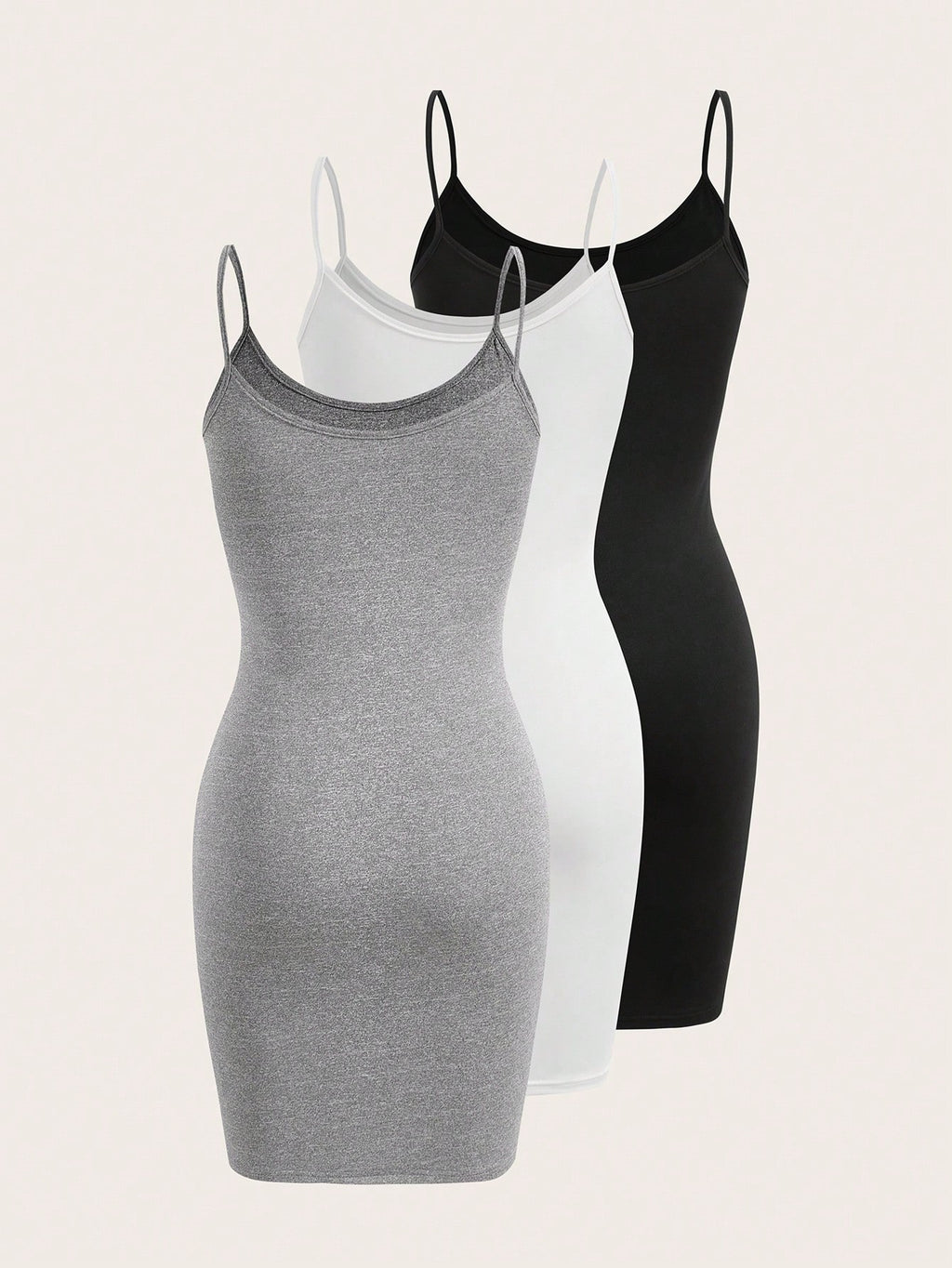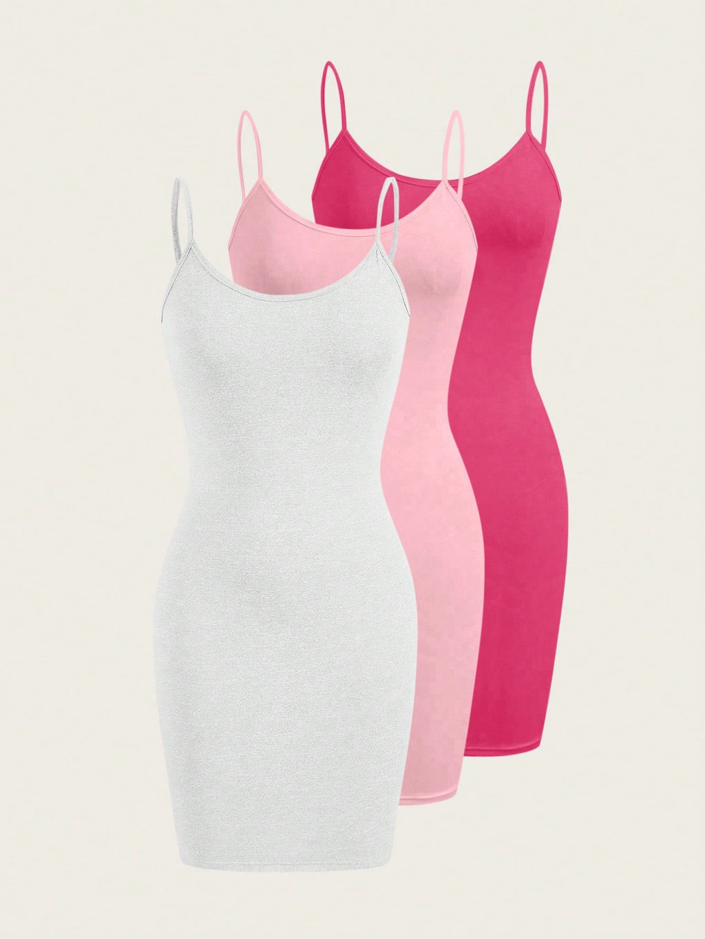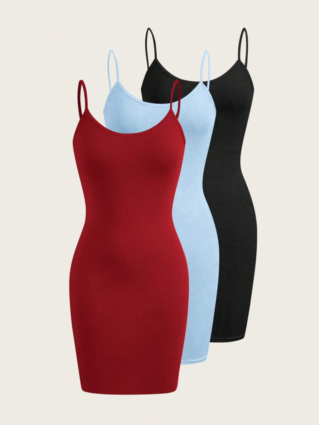 MIU Calvaya set od 3 haljine jednobojnog dizajna s tankim naramenicama.