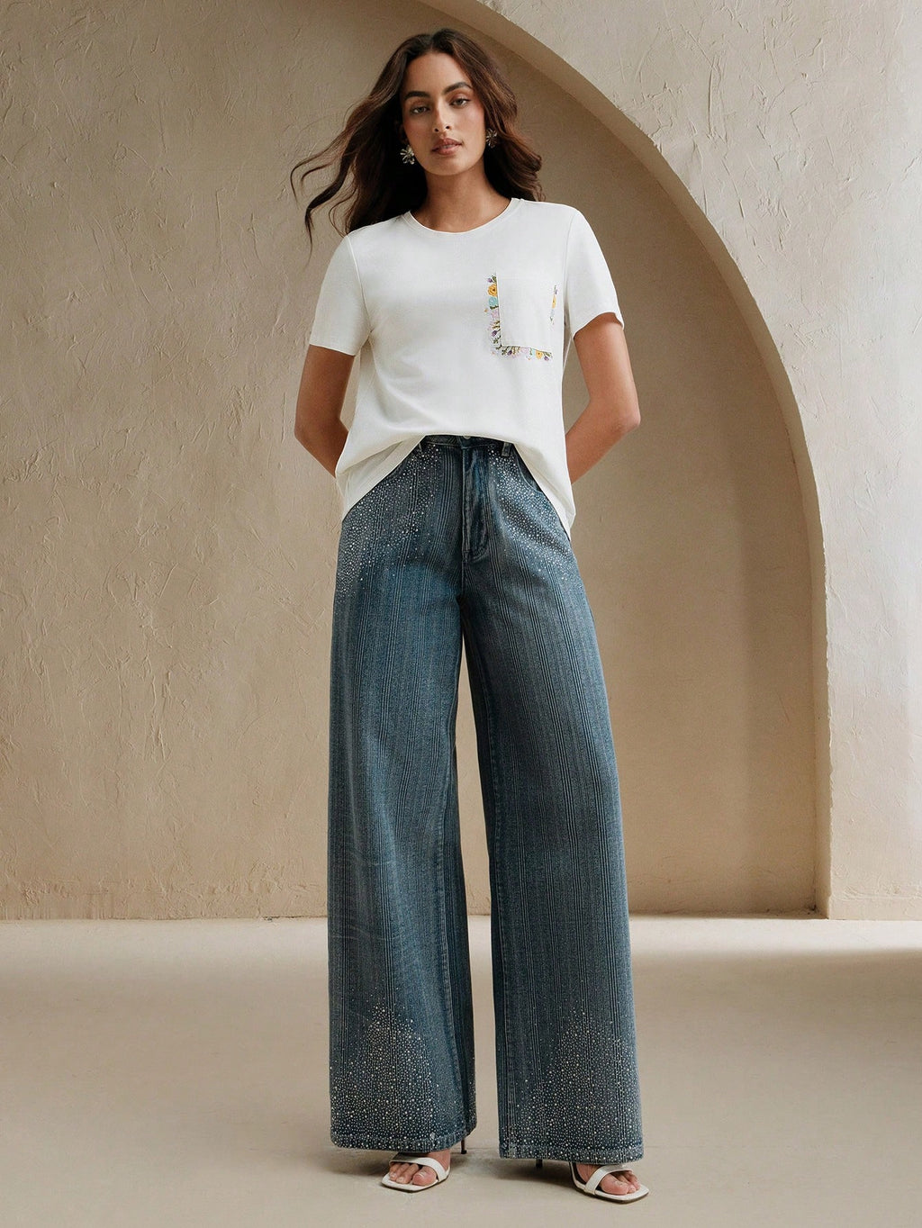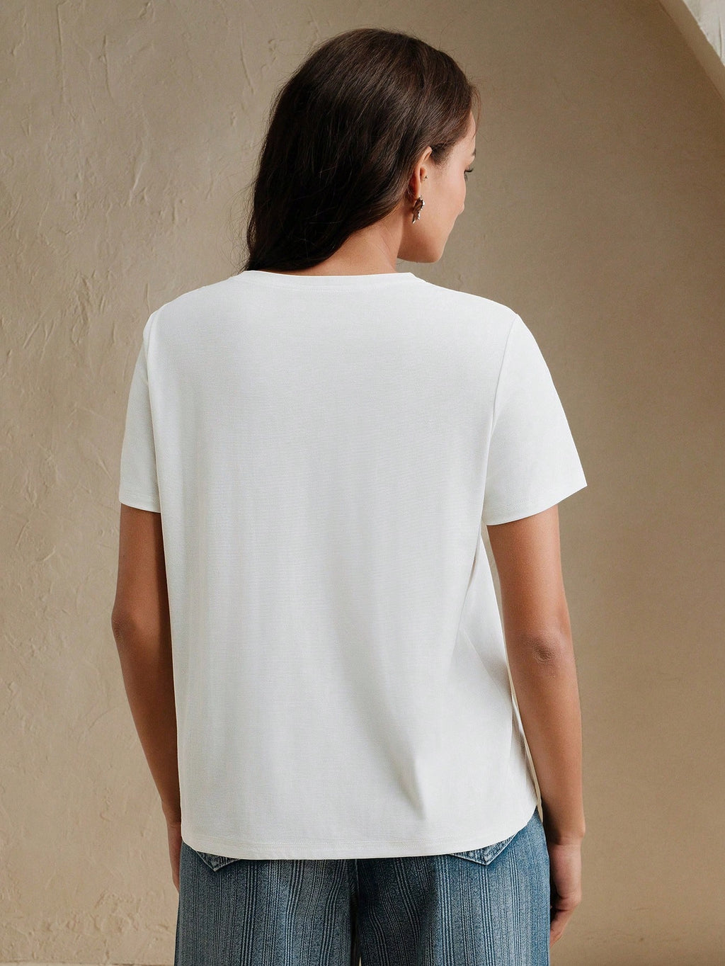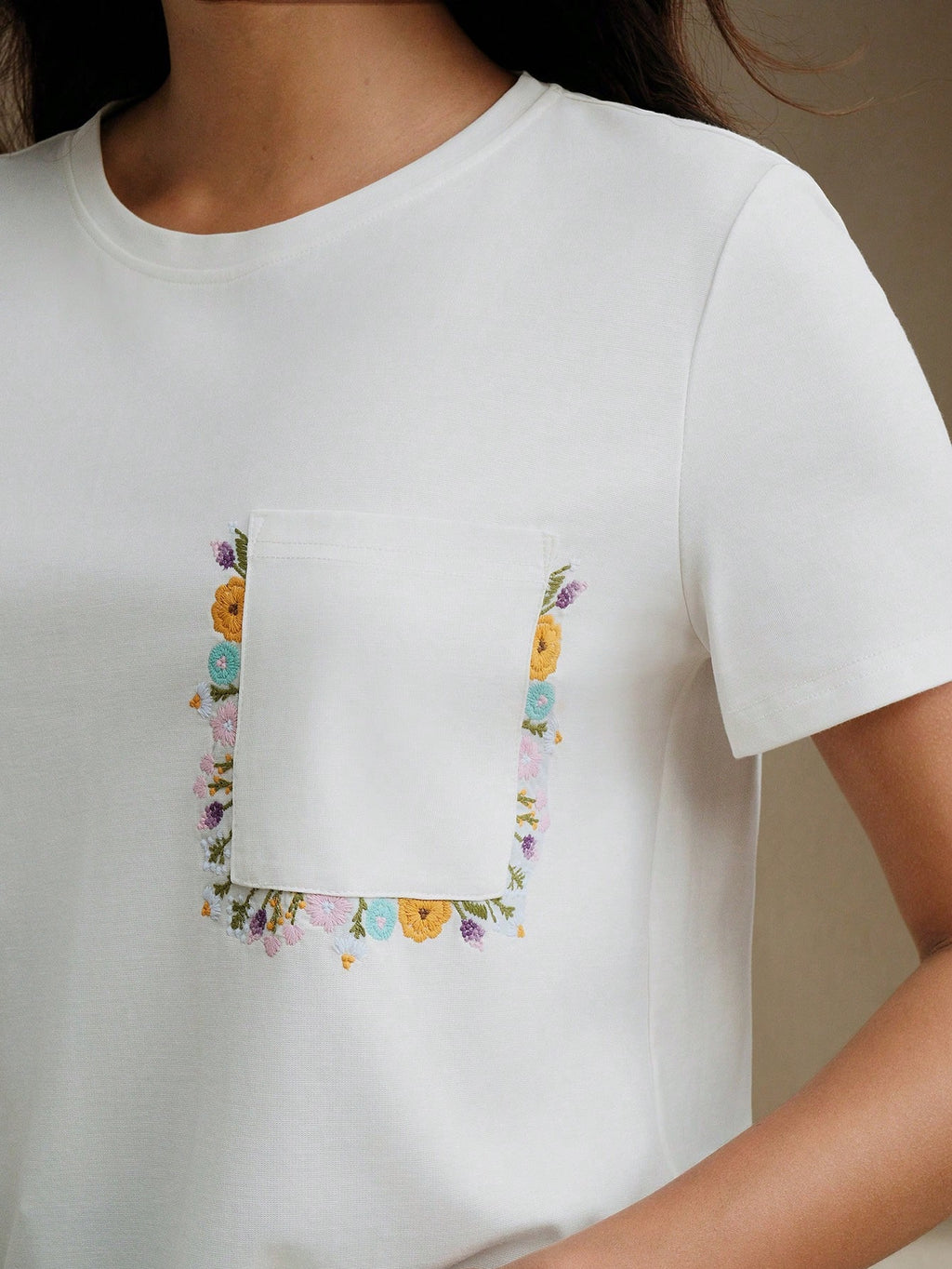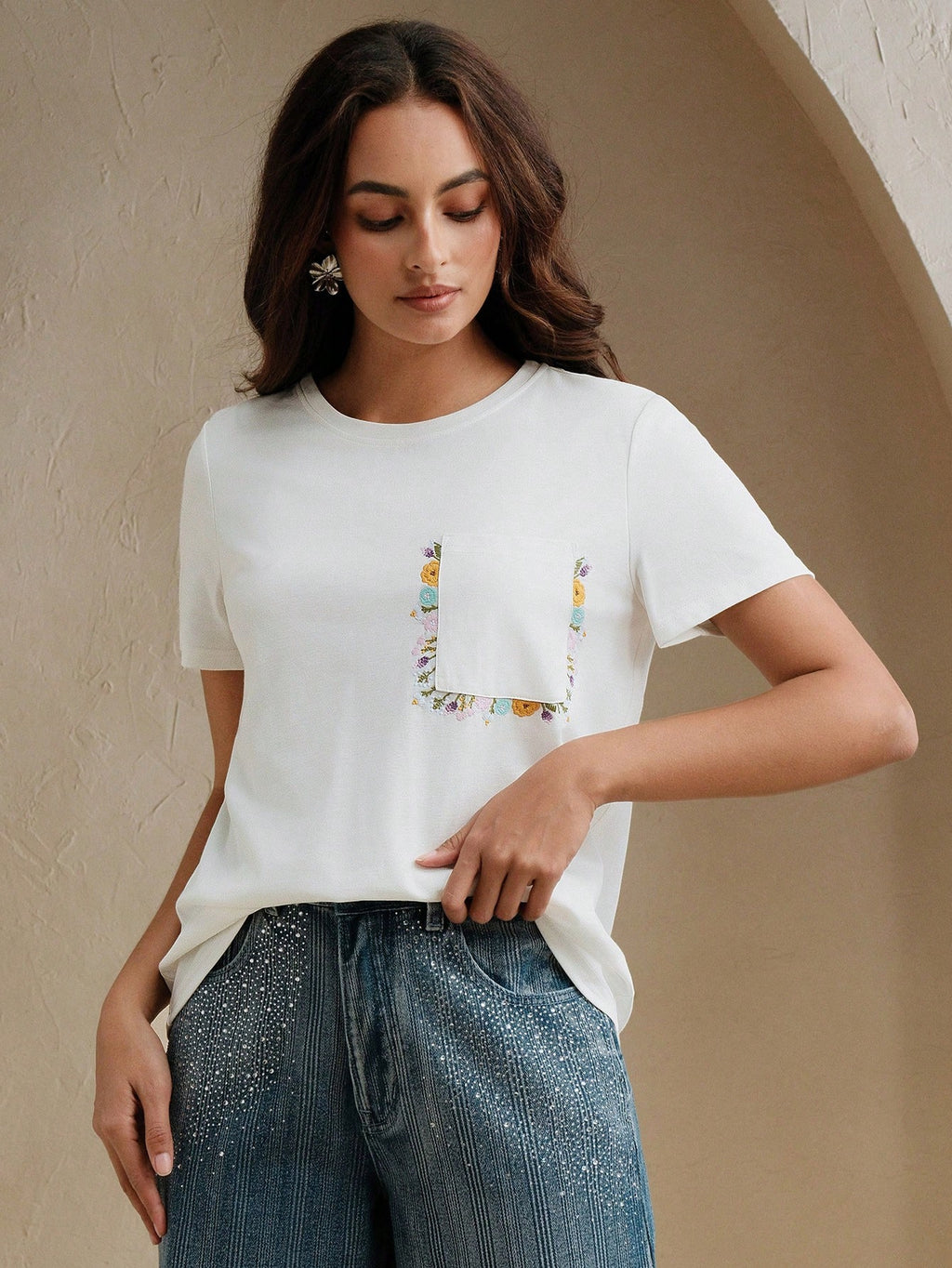 MIU Casual Embroidered Pocket Short Sleeve T-Shirt, Summer