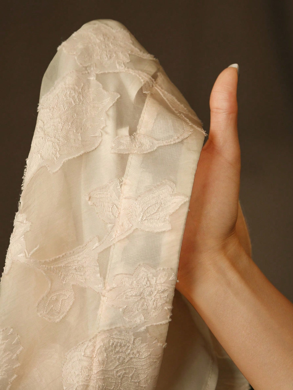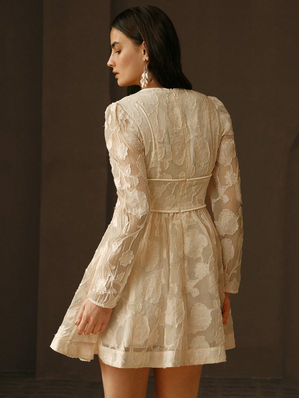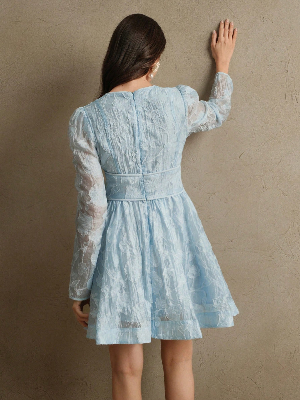 MIU Chiffon Floral Burnout V-Neck High-Low Bowknot Waist Summer Dress, Valentine's Day