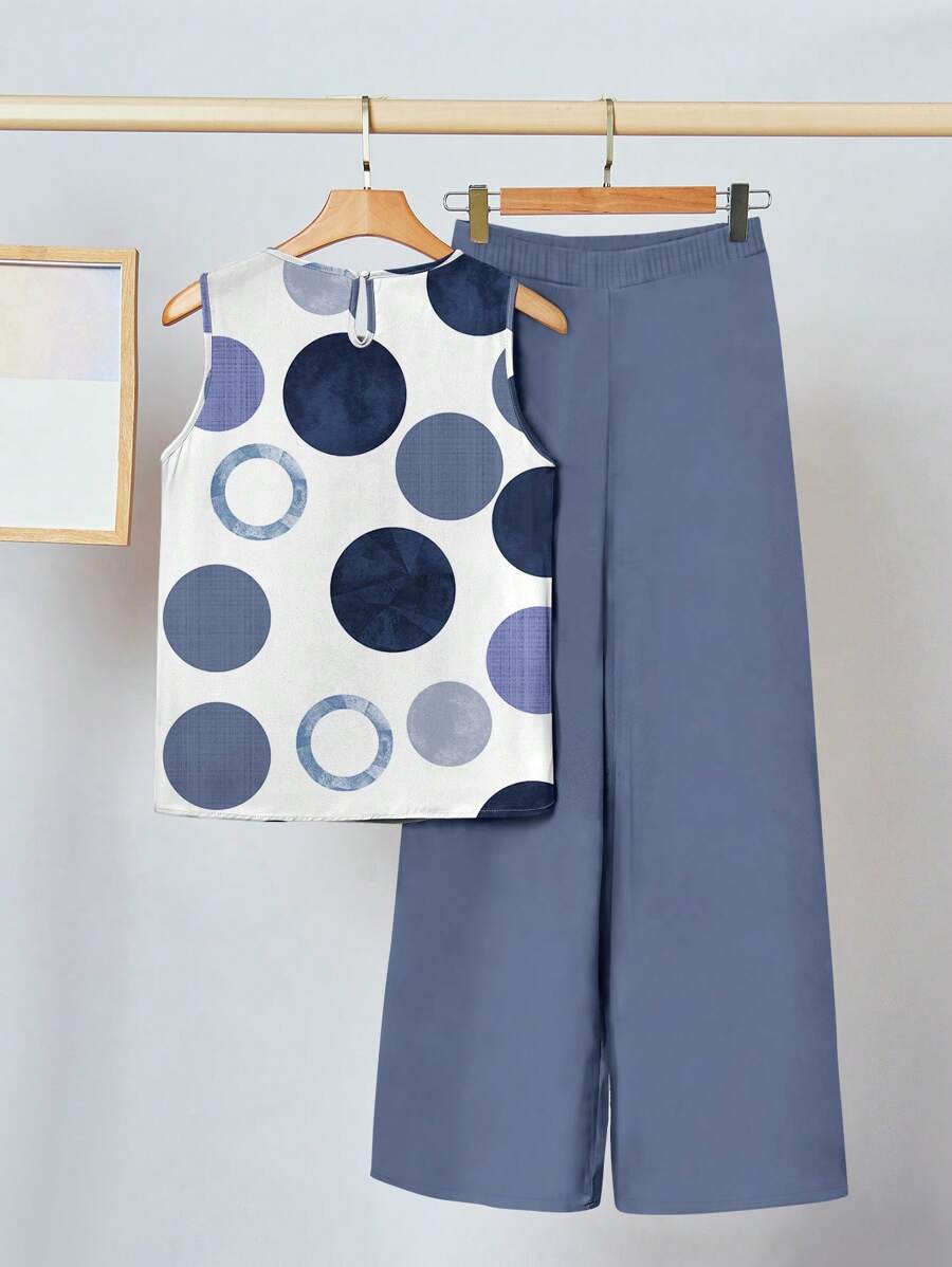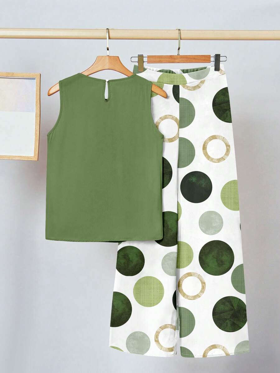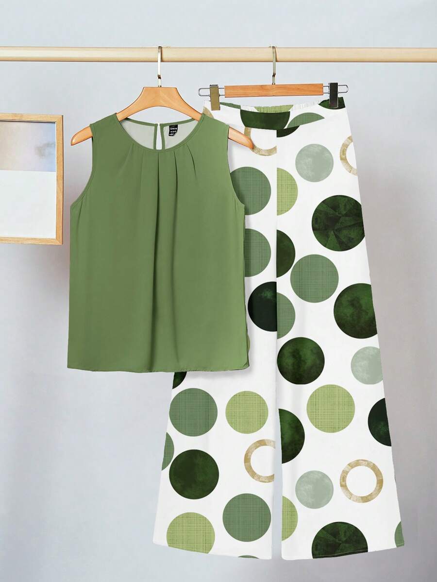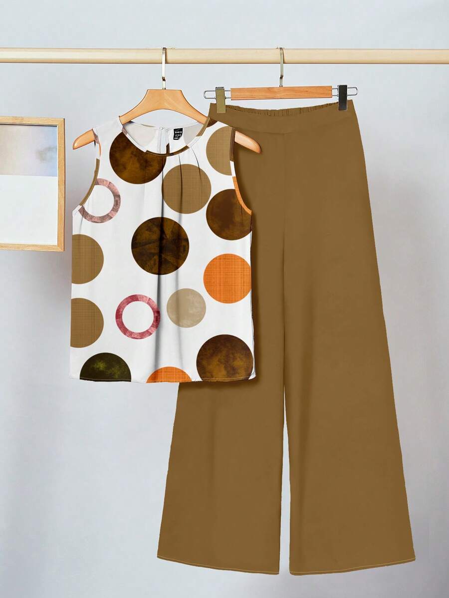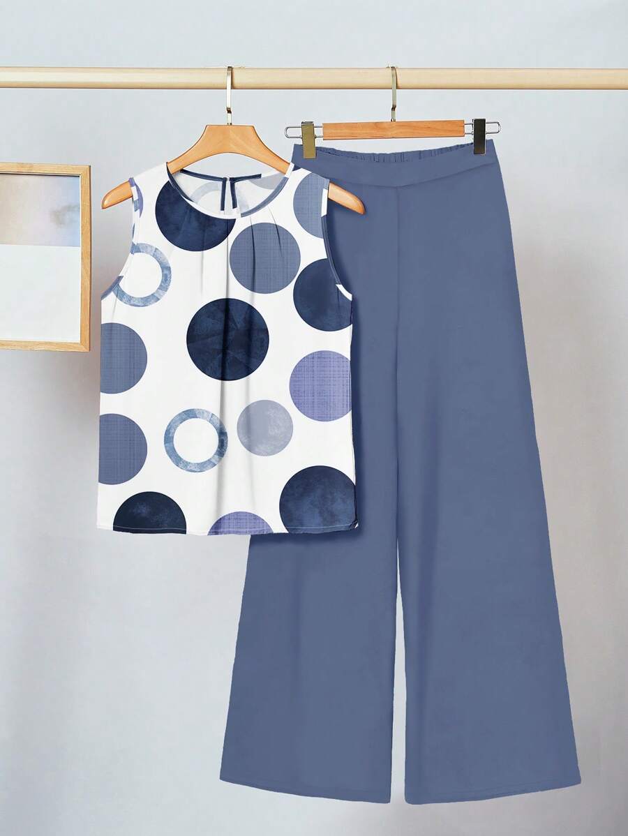MIU Clasi 2pcs Women Casual Minimalist Polka Dot Pattern Set, Suitable For Summer,Summer Outfits For Women Summer Outfits For Women