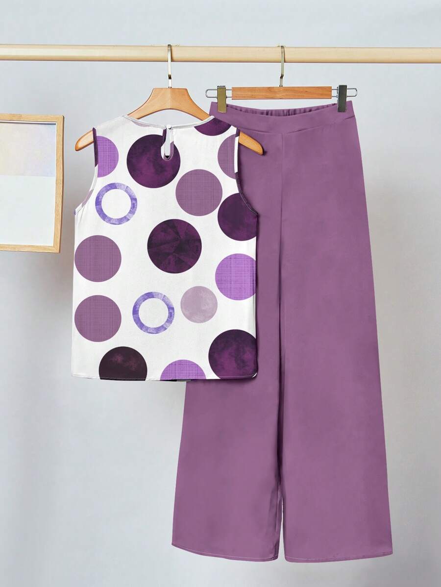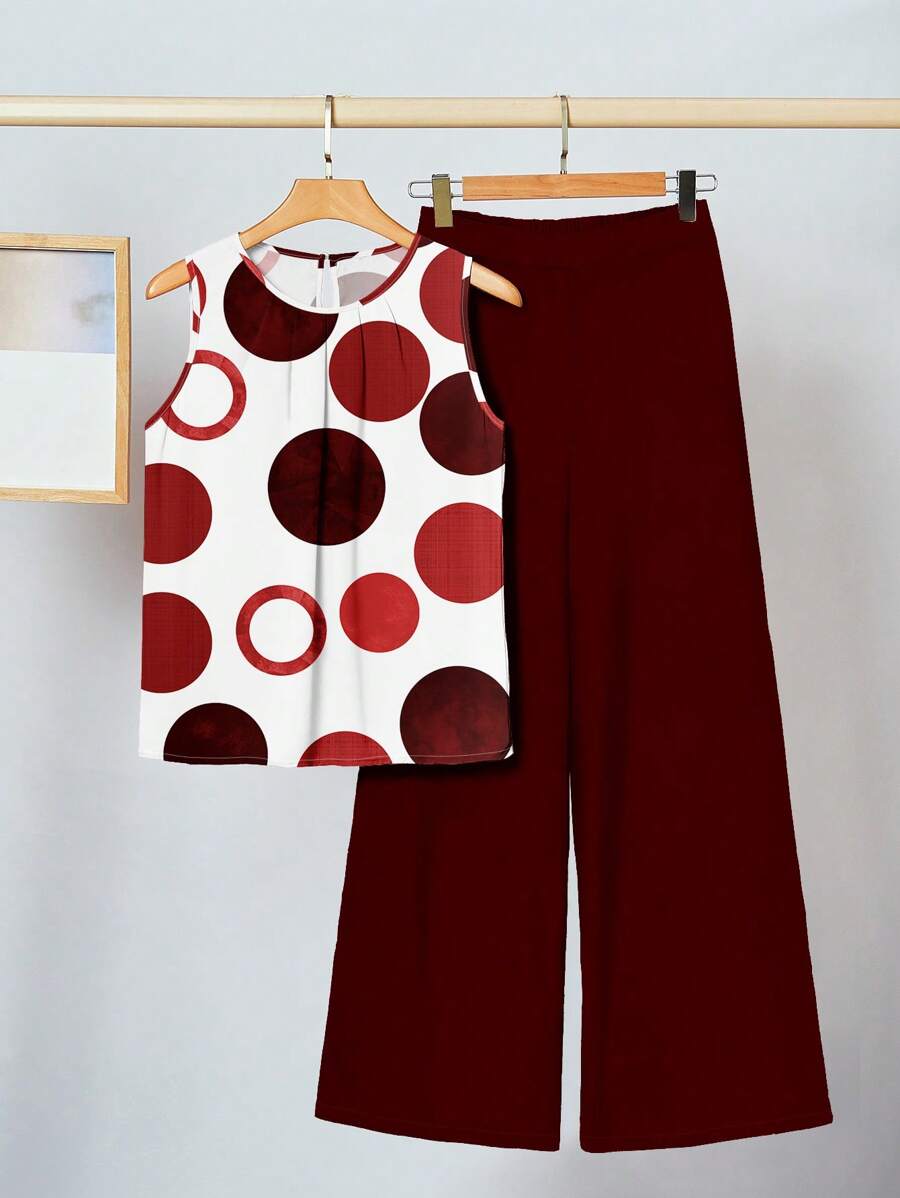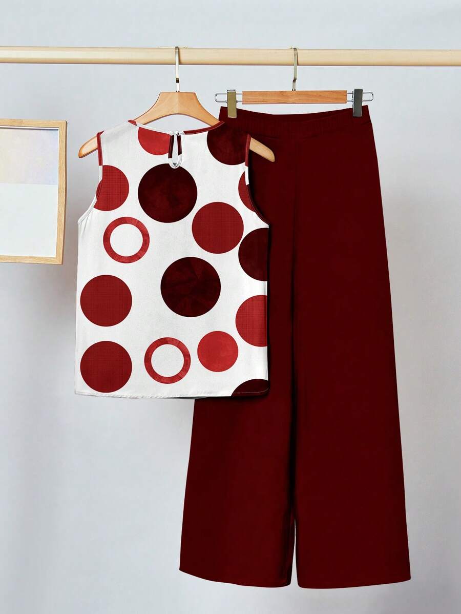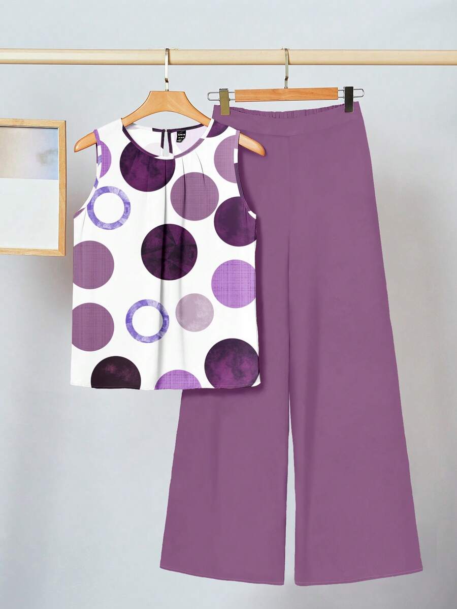 MIU Clasi 2pcs Women Casual Minimalist Polka Dot Pattern Set, Suitable For Summer,Summer Outfits For Women Summer Outfits For Women