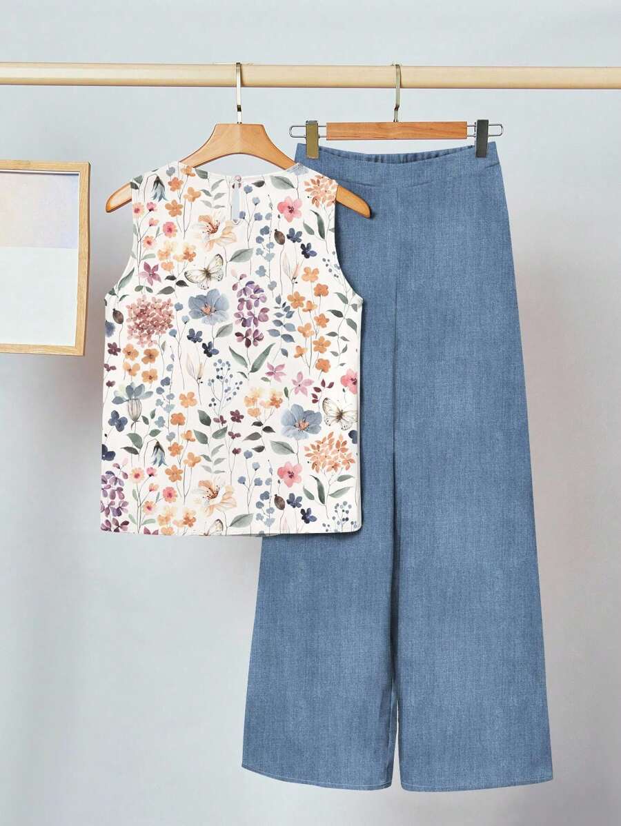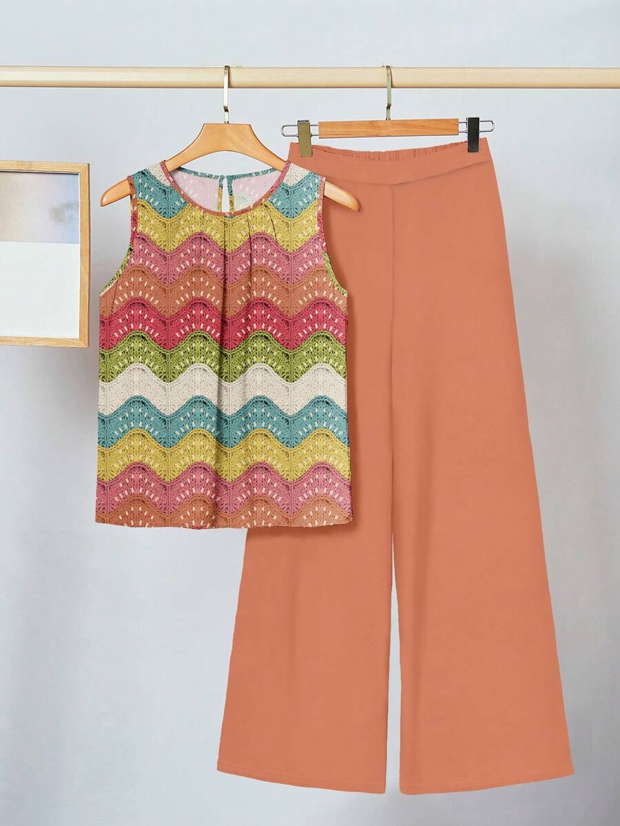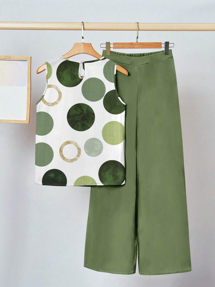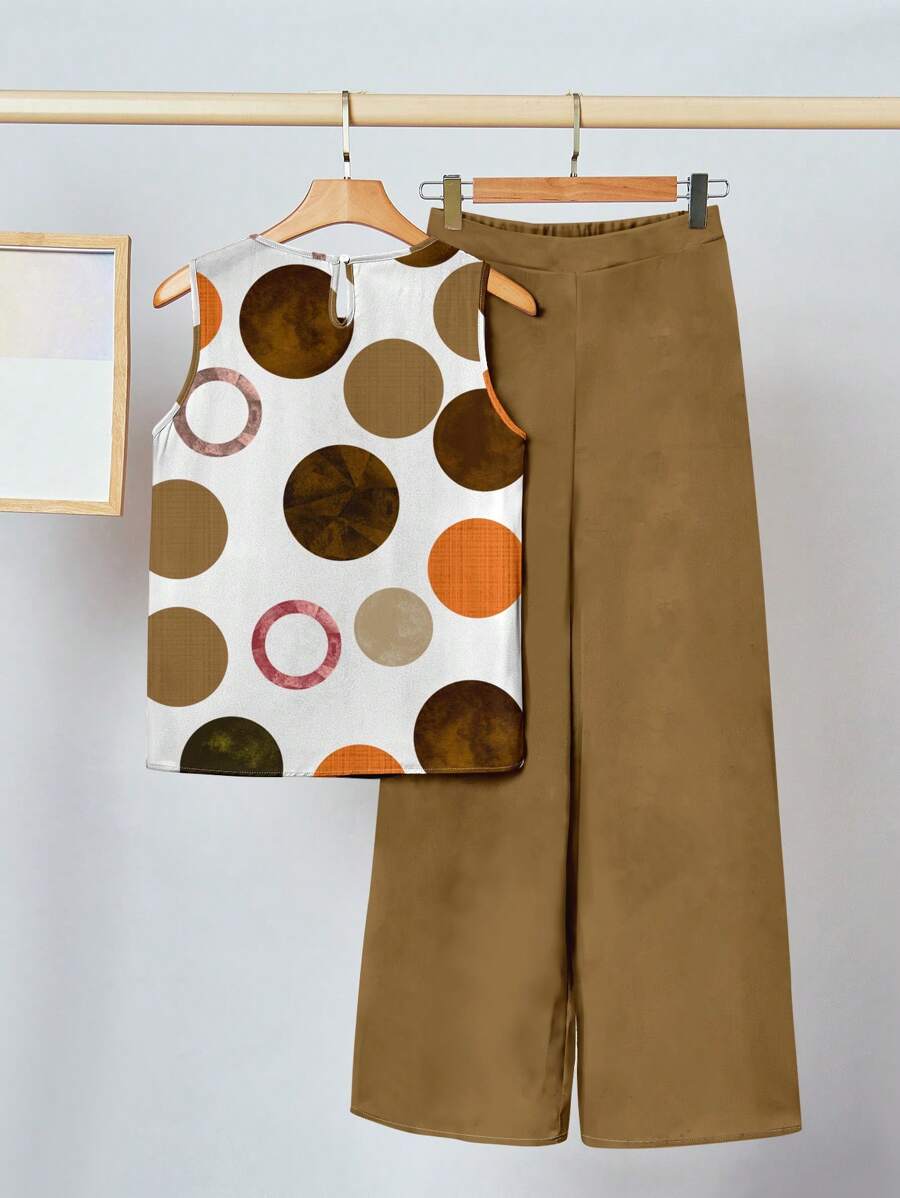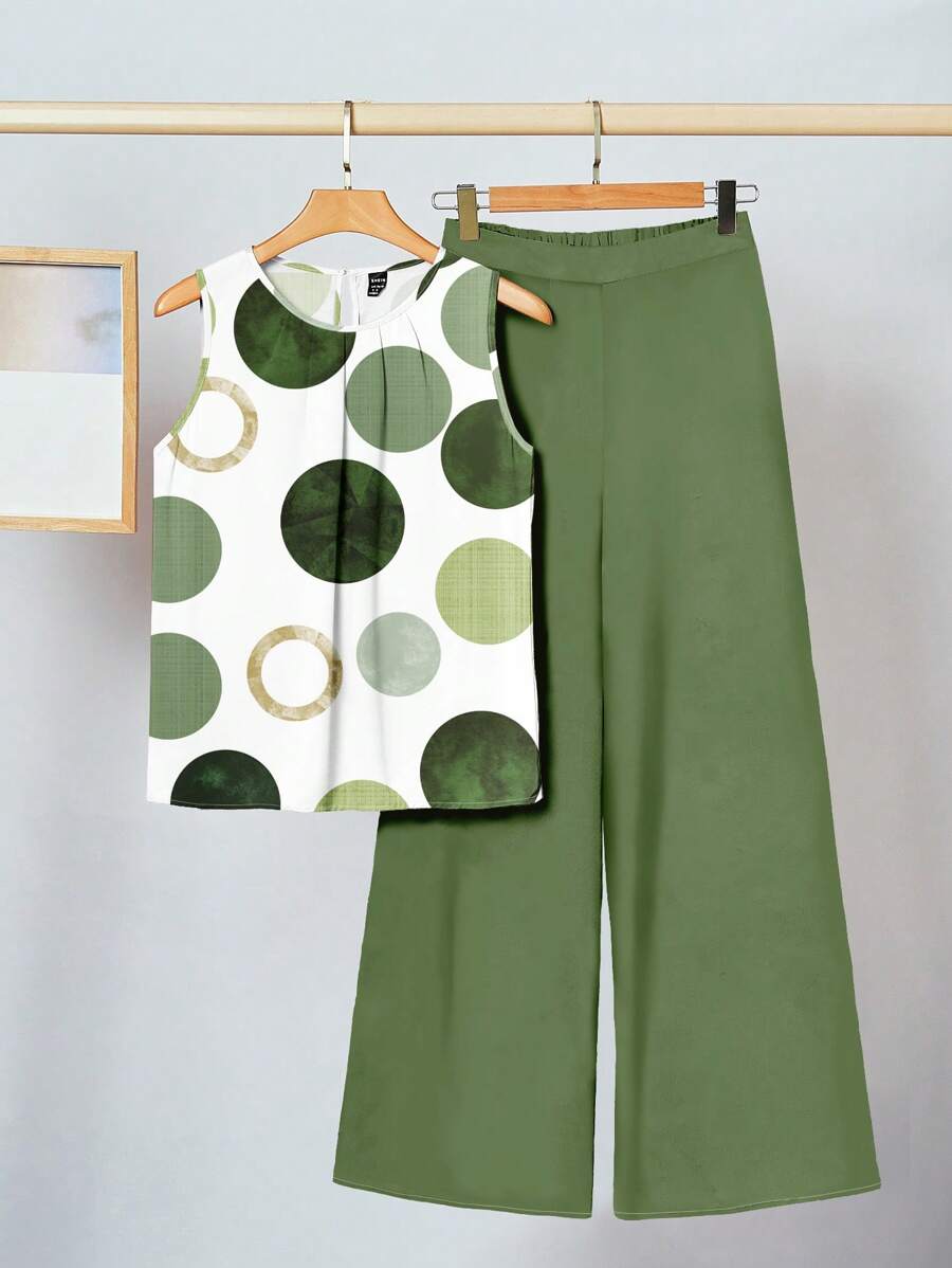MIU Clasi 2pcs Women Casual Minimalist Polka Dot Pattern Set, Suitable For Summer,Summer Outfits For Women Summer Outfits For Women