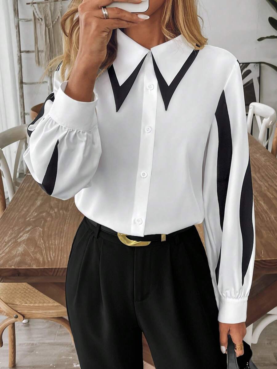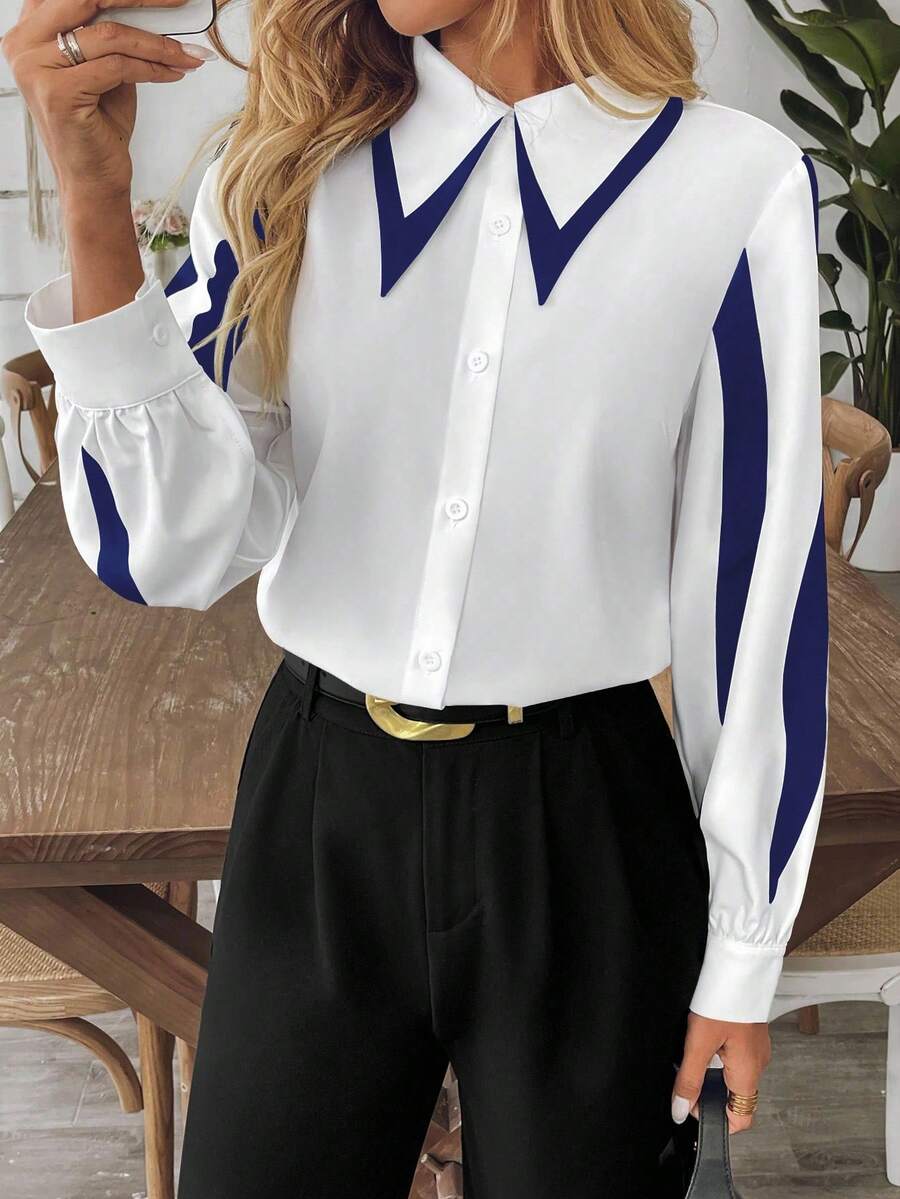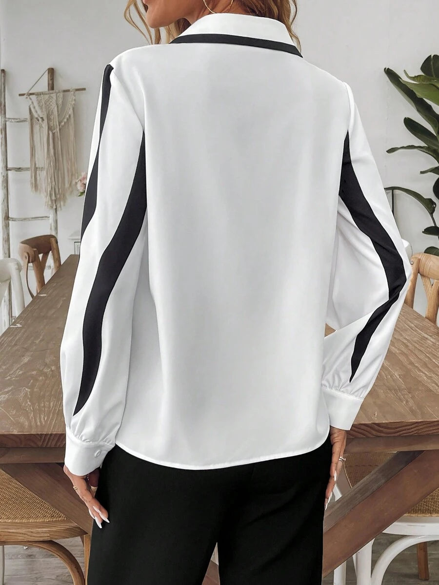 MIU Clasi Women's Casual Commute Color Block Printed Blouse Fall Cloth For Women