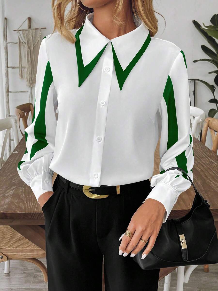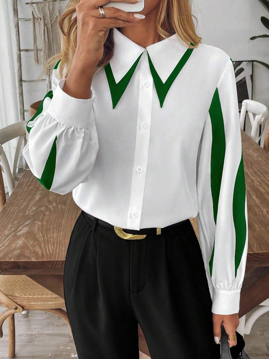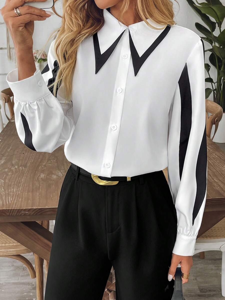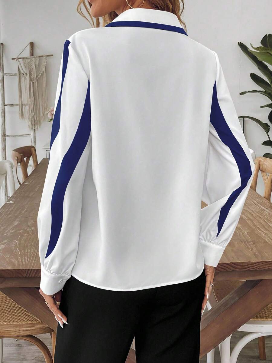 MIU Clasi Women's Casual Commute Color Block Printed Blouse Fall Cloth For Women