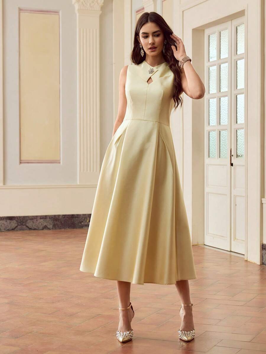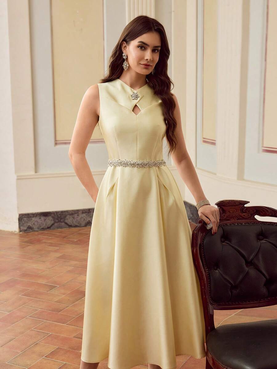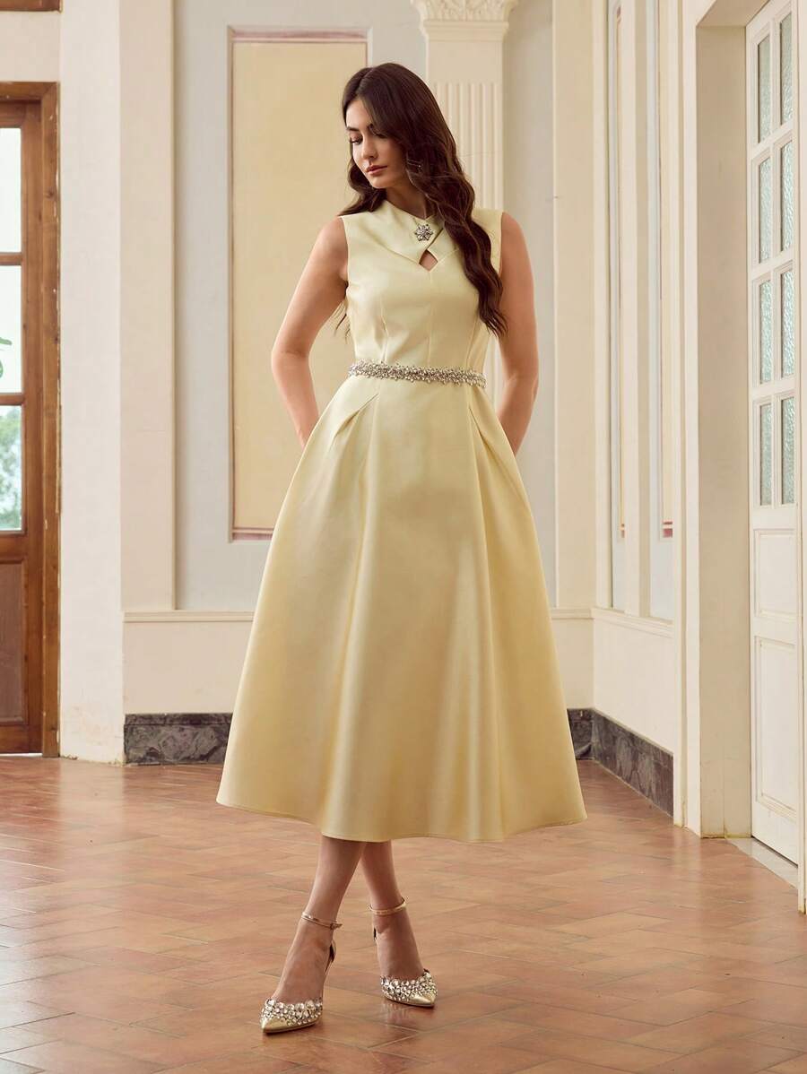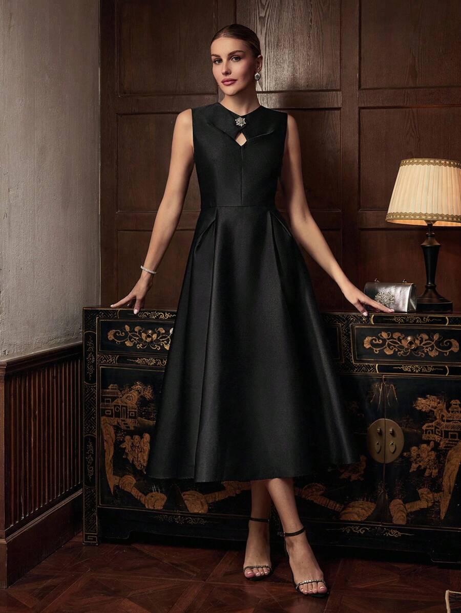MIU Design Collar Sleeveless Elegant Long Dress, Spring/Summer