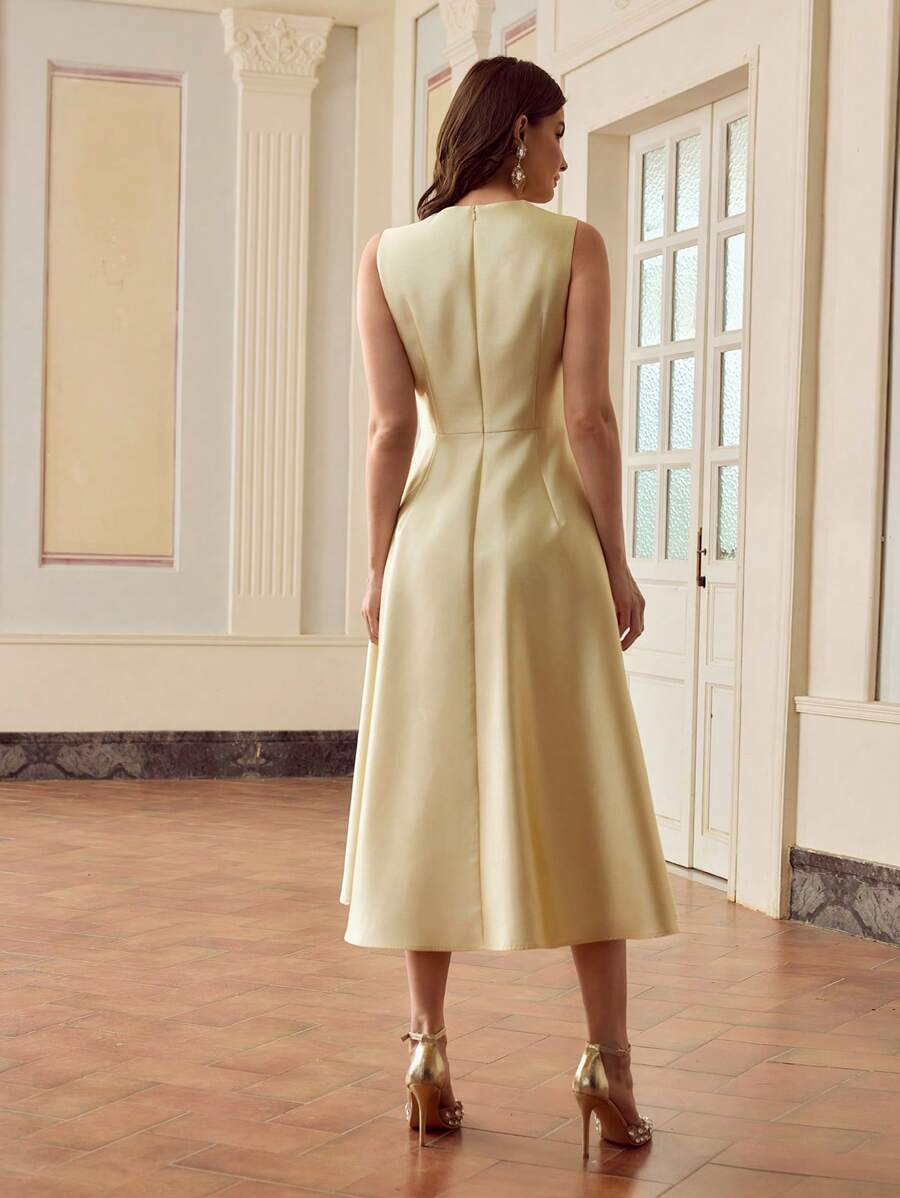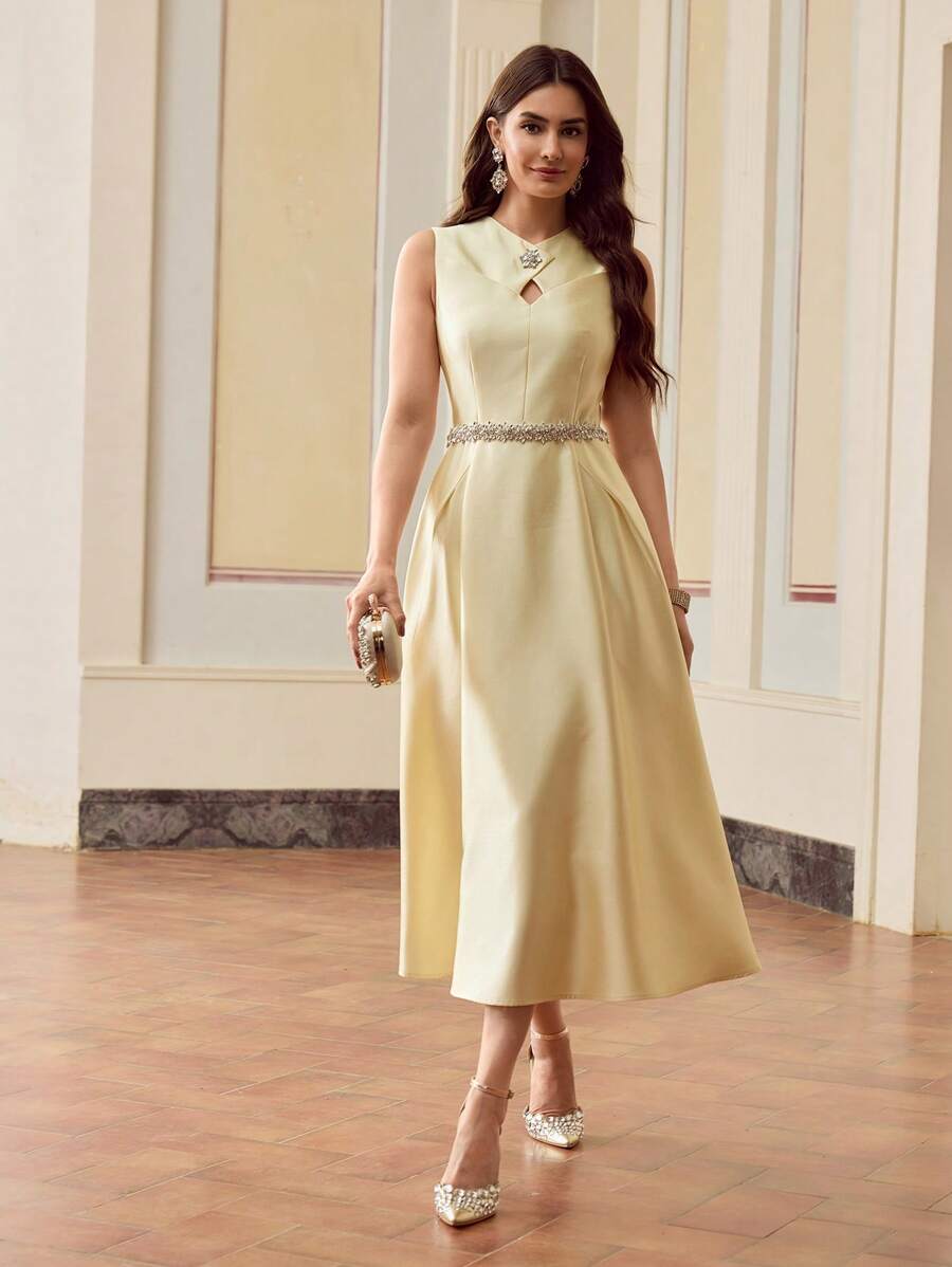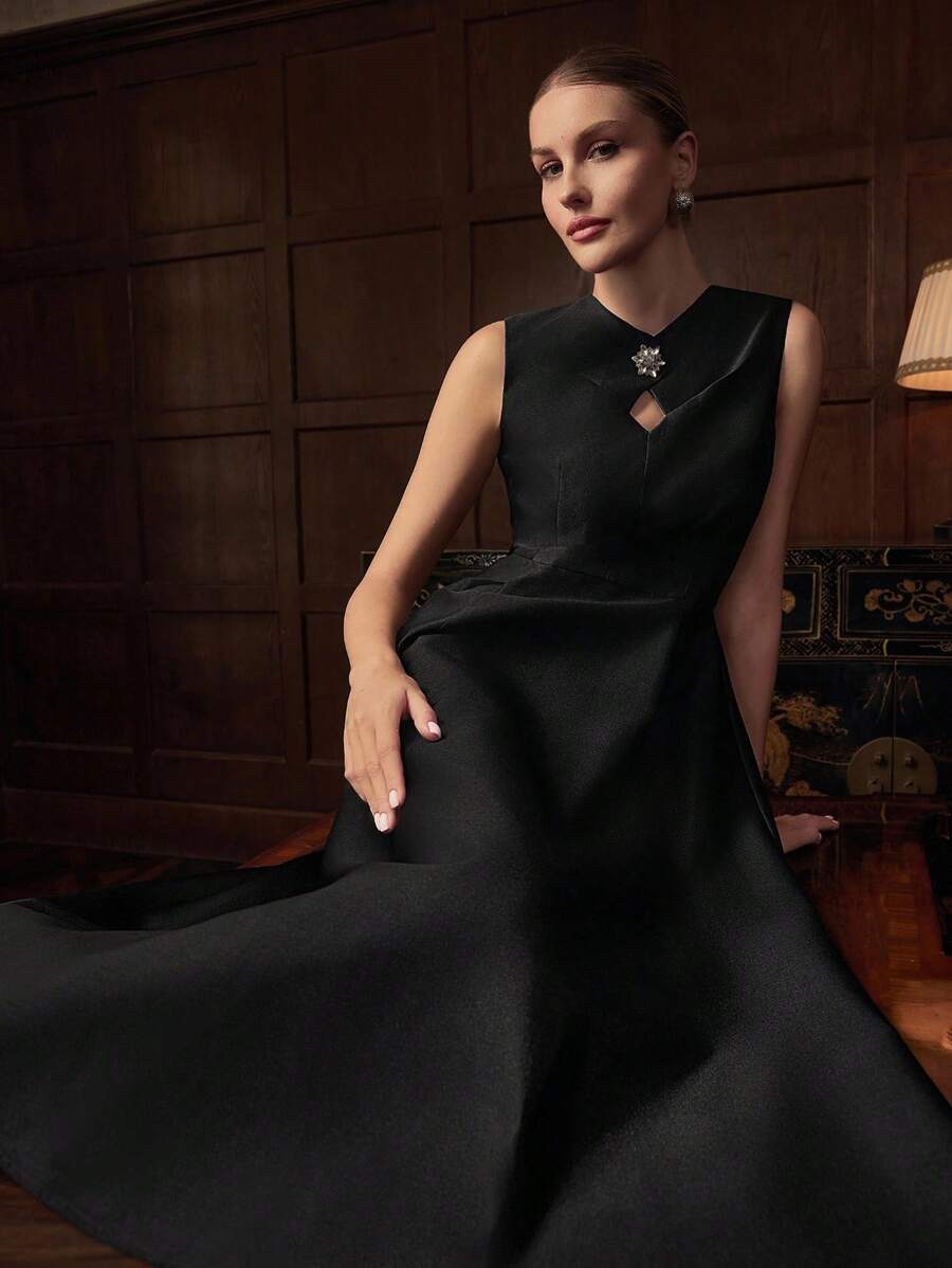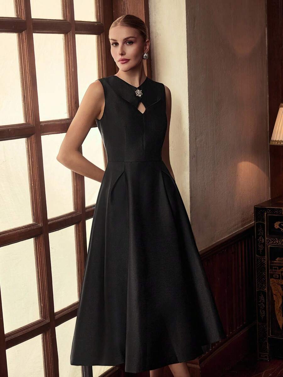MIU Design Collar Sleeveless Elegant Long Dress, Spring/Summer
