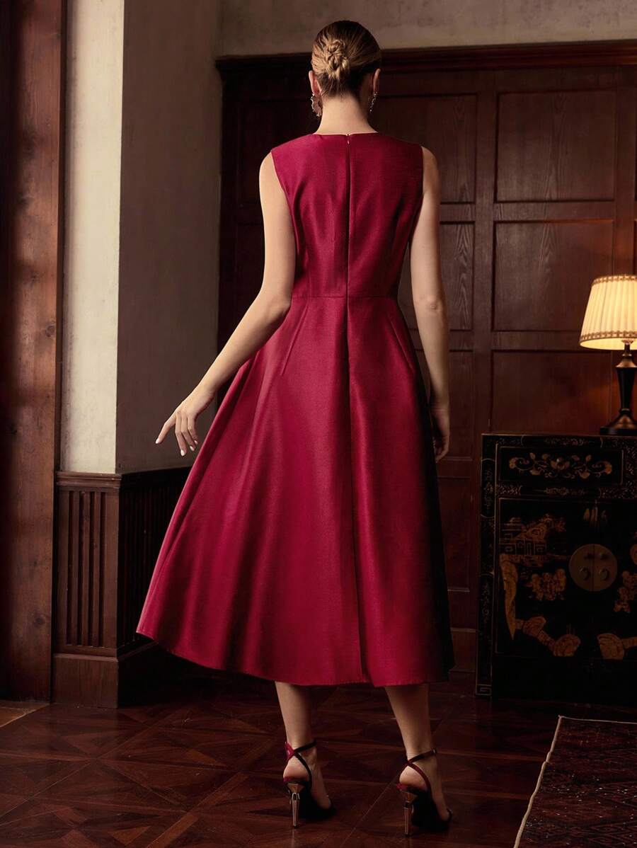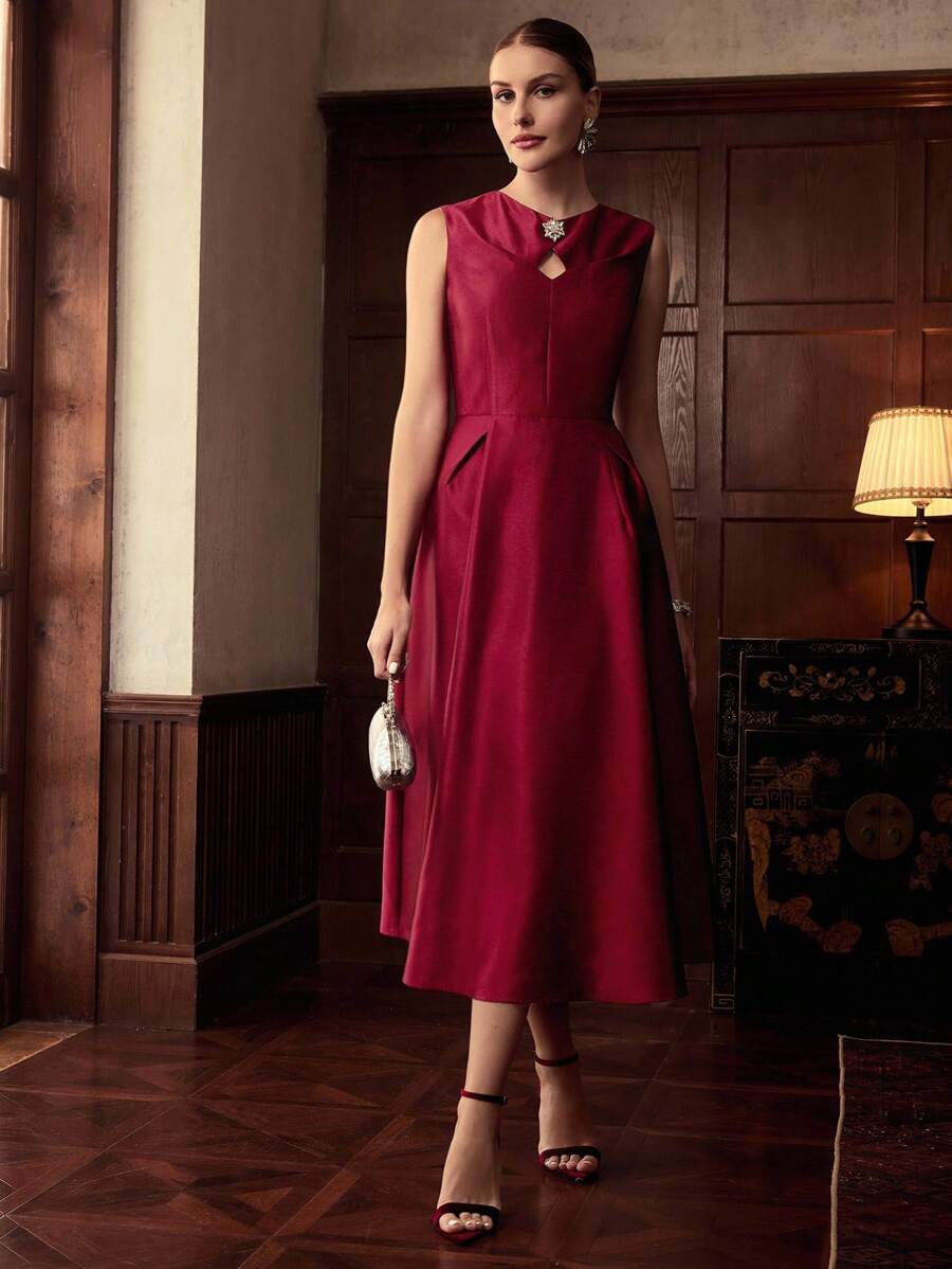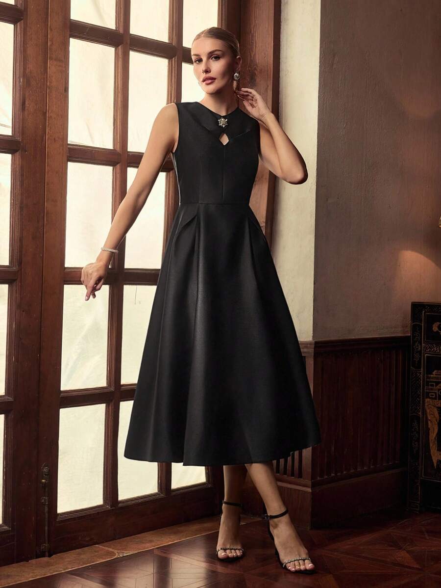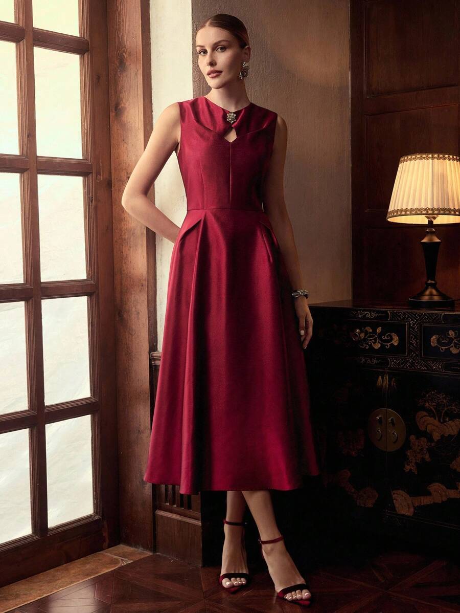 MIU Design Collar Sleeveless Elegant Long Dress, Spring/Summer