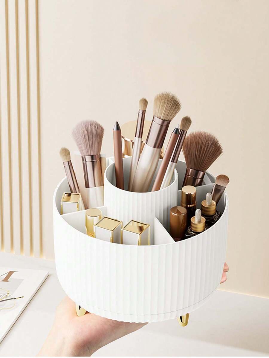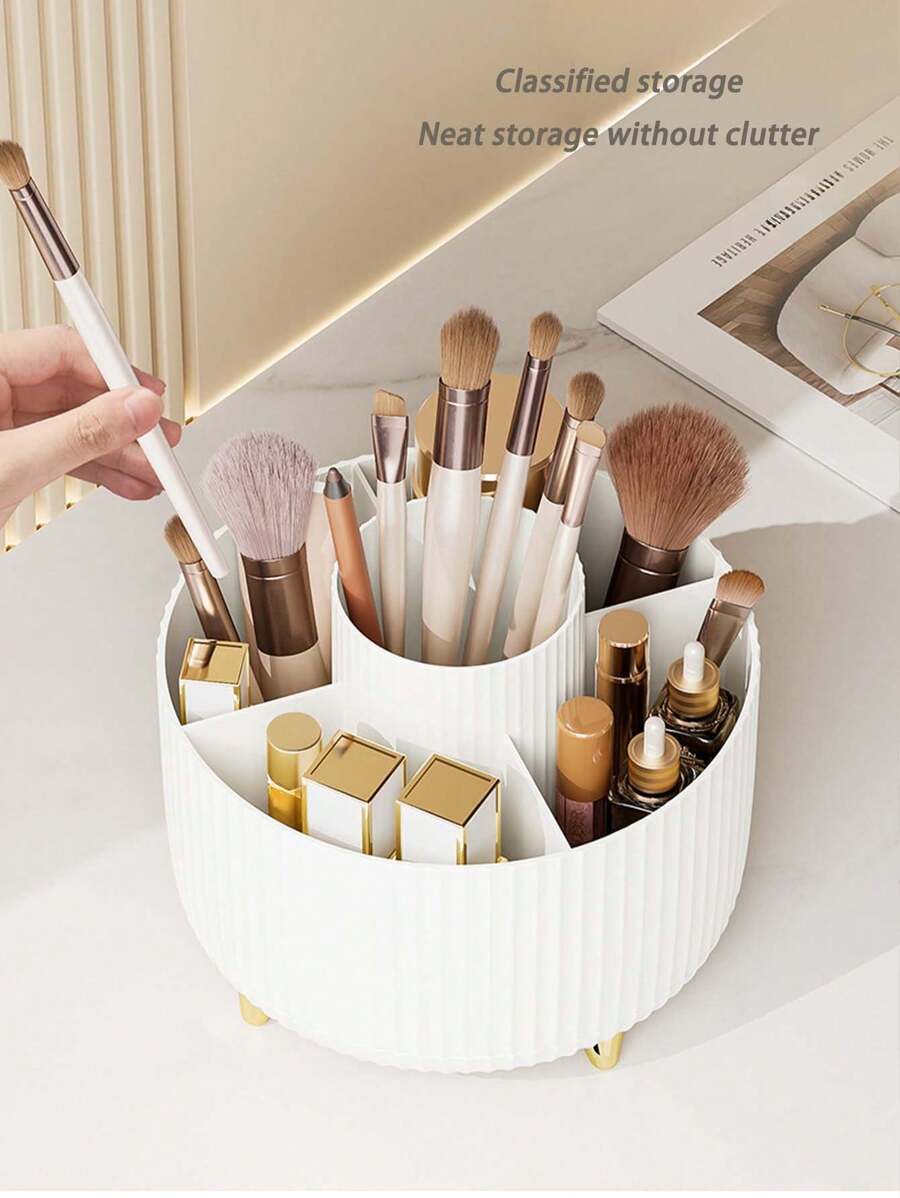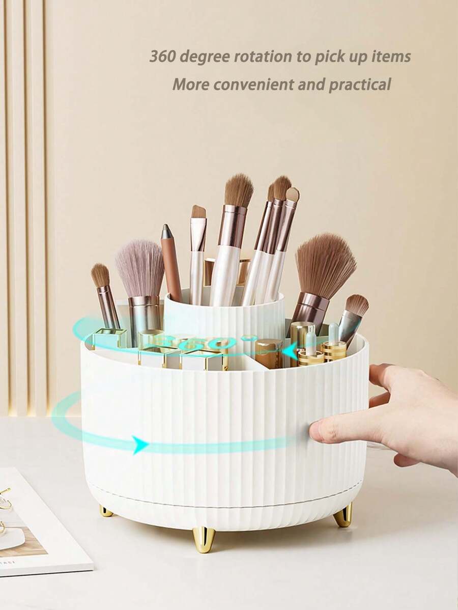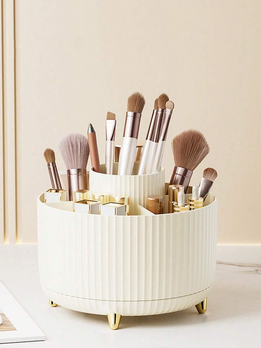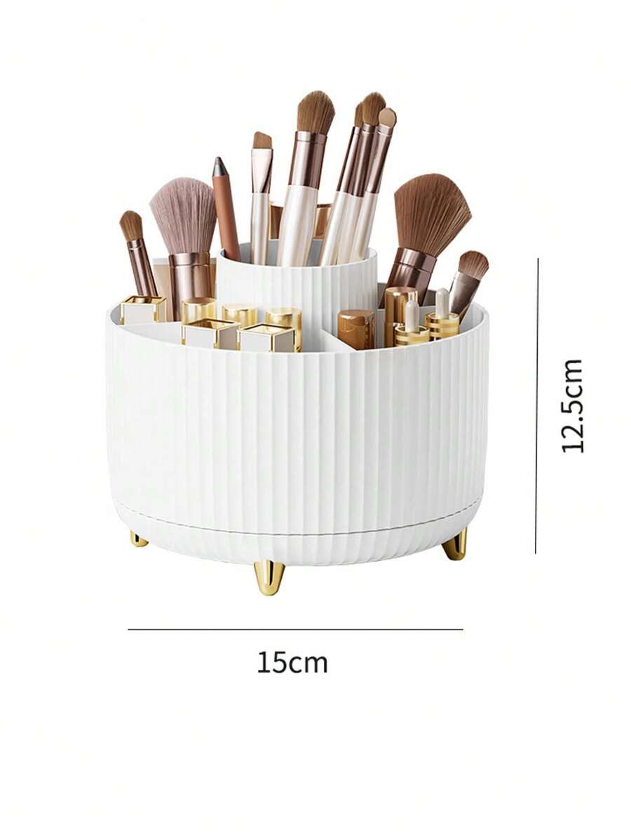 MIU Desktop Rotating Makeup Brush Storage Cylinder Cosmetic Organizer Stand For Table With Multiple Compartments Eyeshadow Brush Lipstick Holder, Home Vanity Dresser Decoration