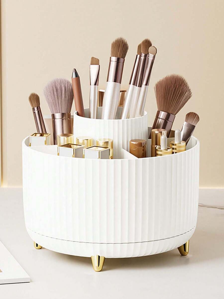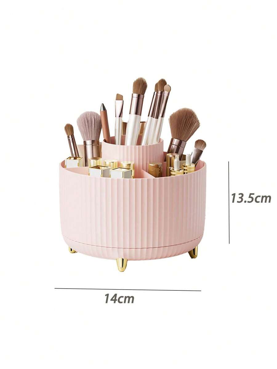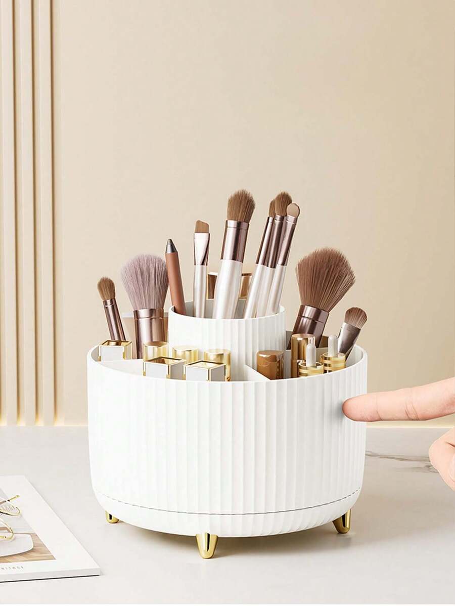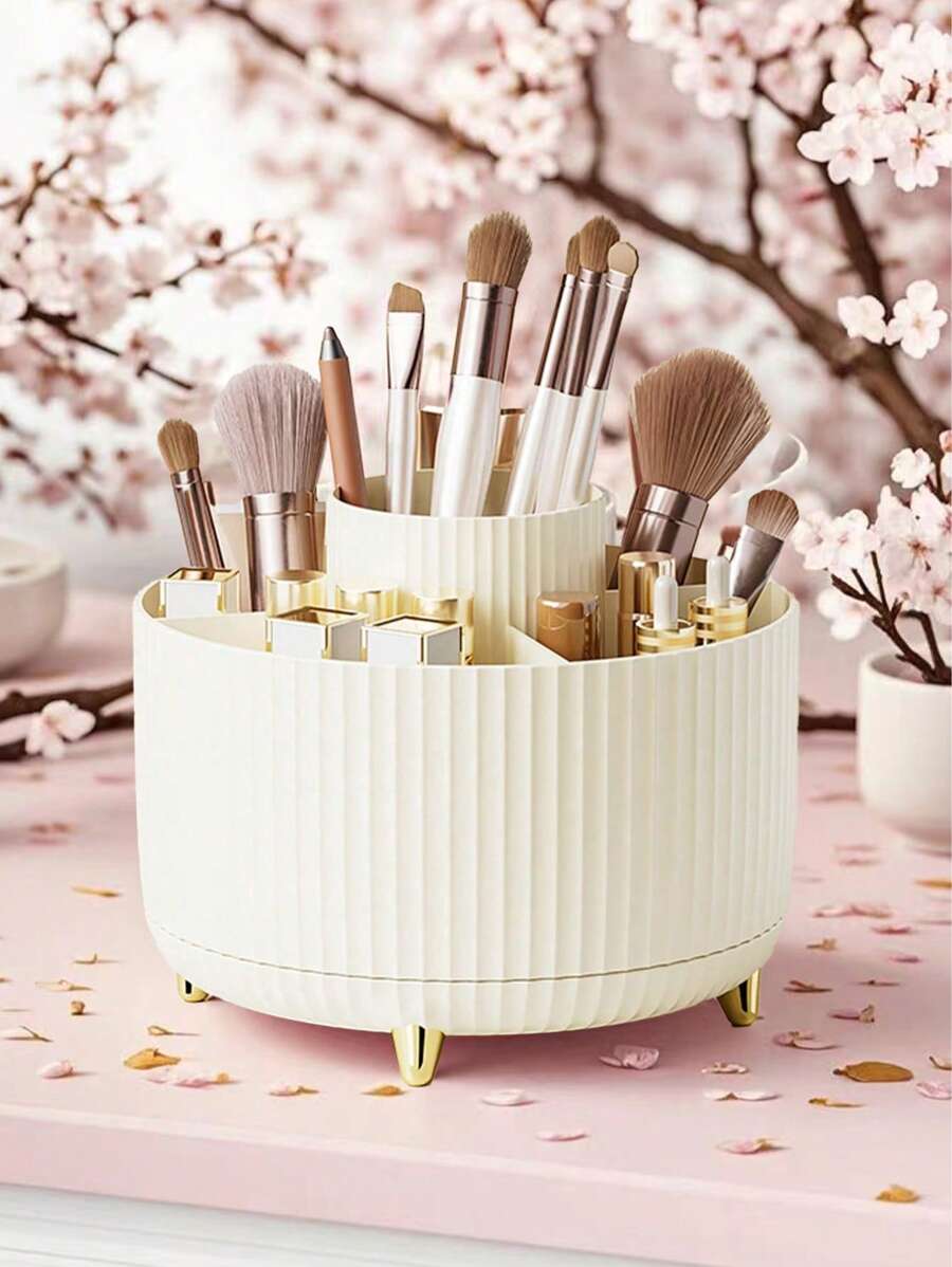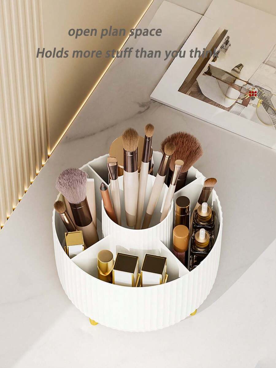 MIU Desktop Rotating Makeup Brush Storage Cylinder Cosmetic Organizer Stand For Table With Multiple Compartments Eyeshadow Brush Lipstick Holder, Home Vanity Dresser Decoration