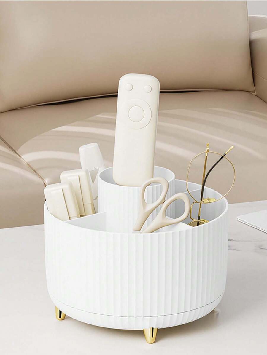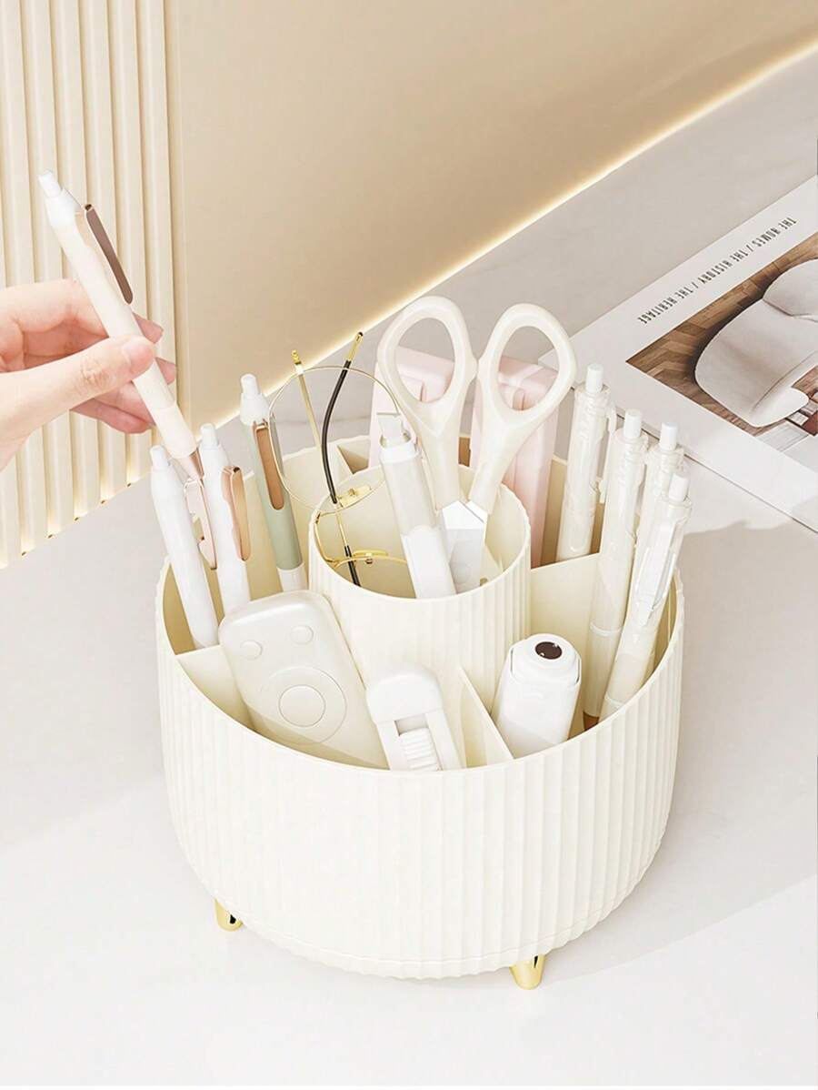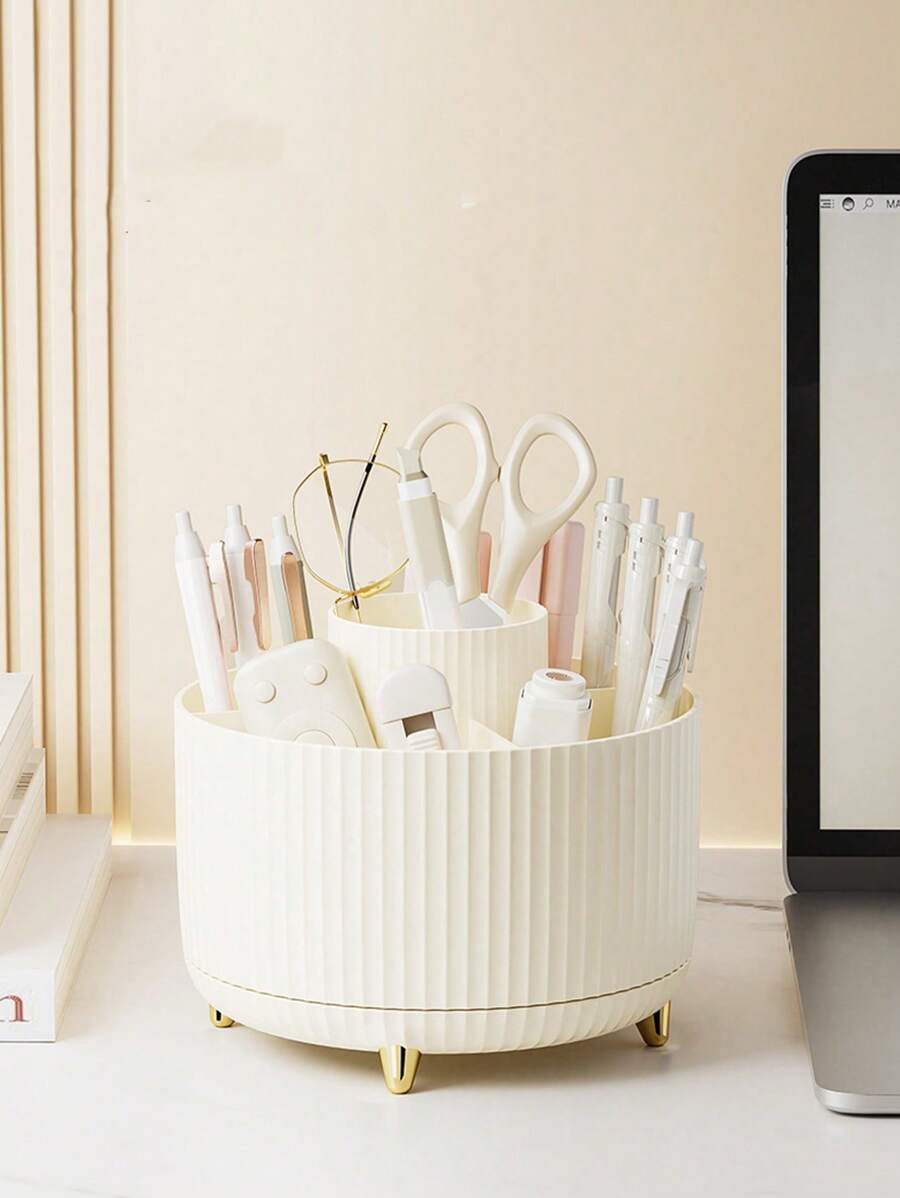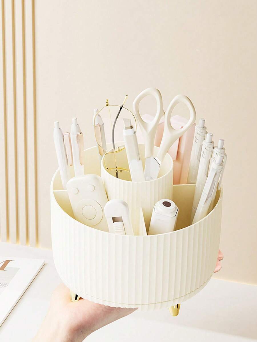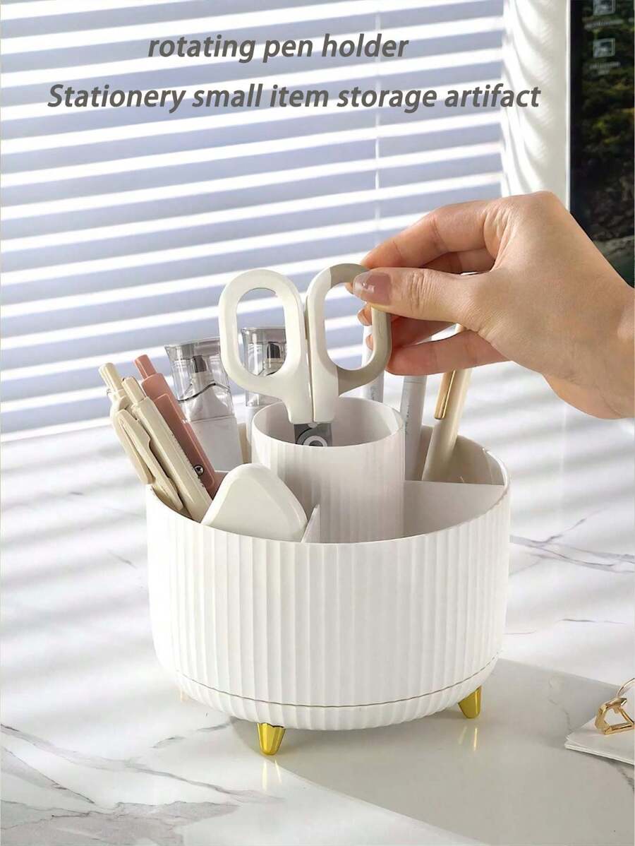 MIU Desktop Rotating Makeup Brush Storage Cylinder Cosmetic Organizer Stand For Table With Multiple Compartments Eyeshadow Brush Lipstick Holder, Home Vanity Dresser Decoration