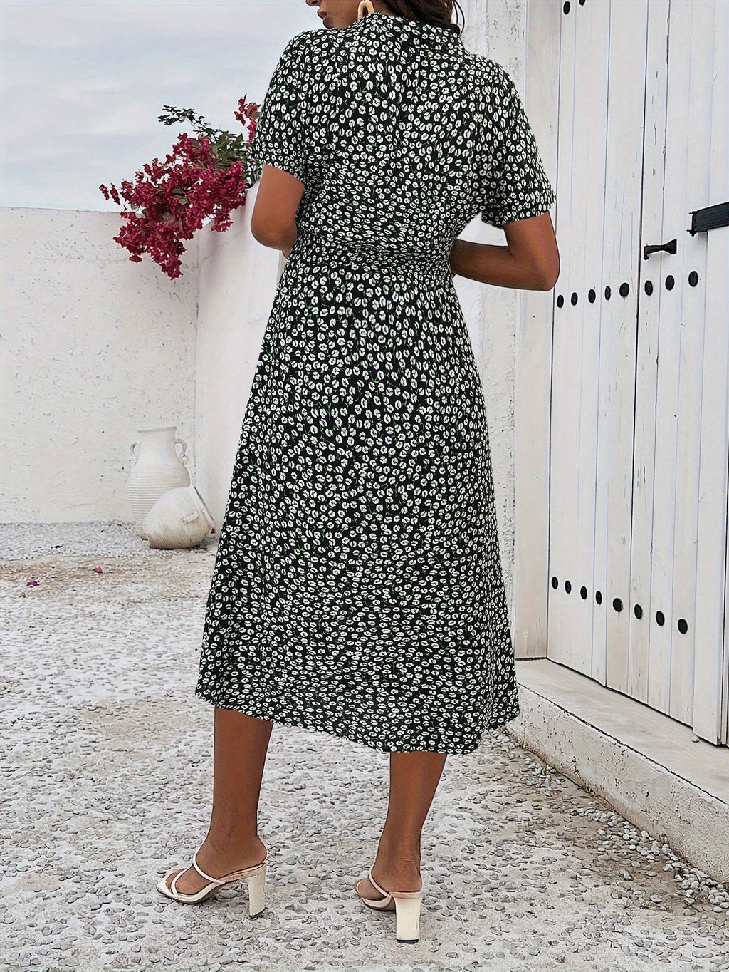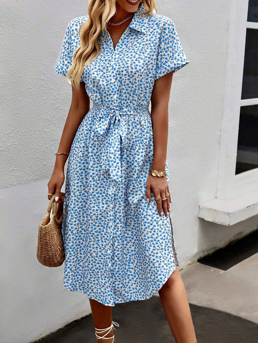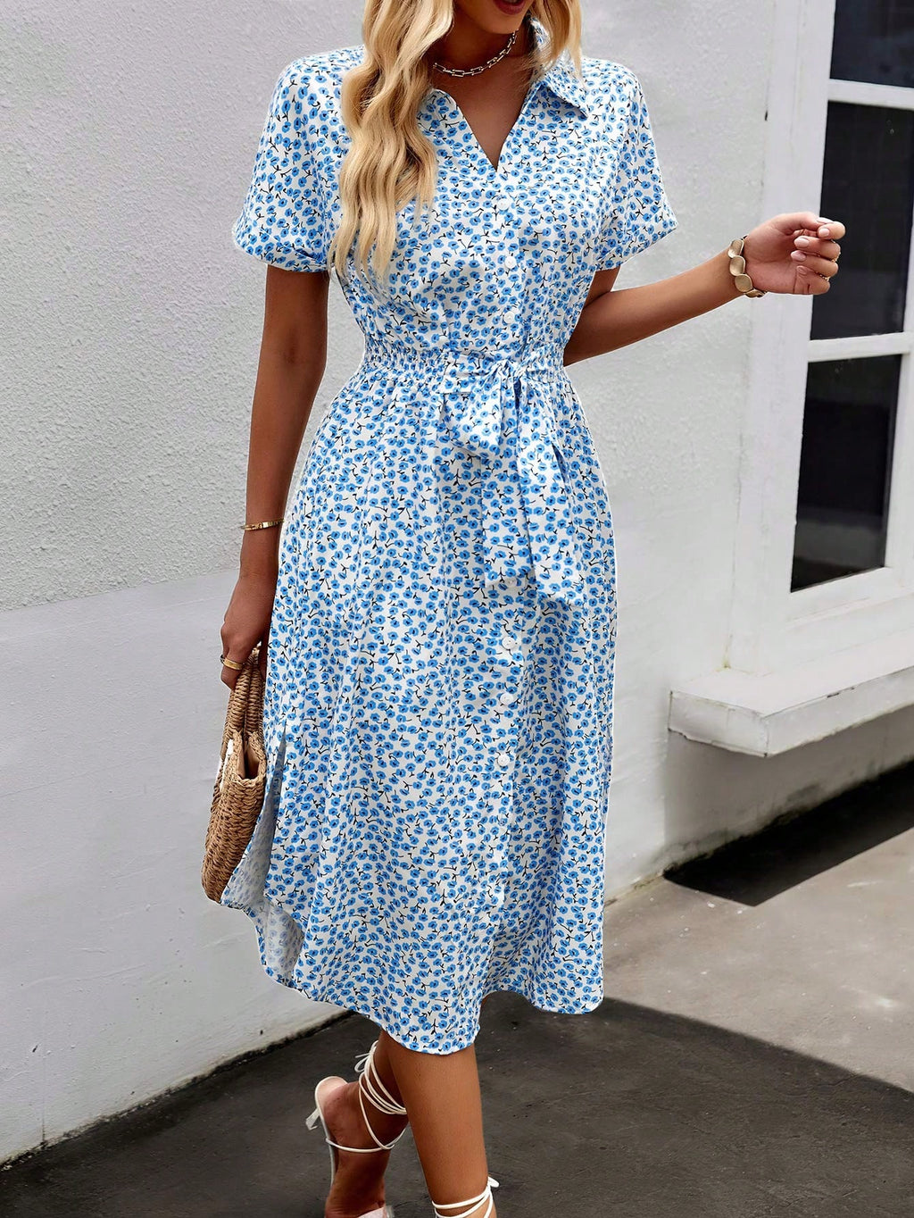 MIU Ditsy Floral Tie Front Button Through Dress Maxi Vacation Beach Outfits Women