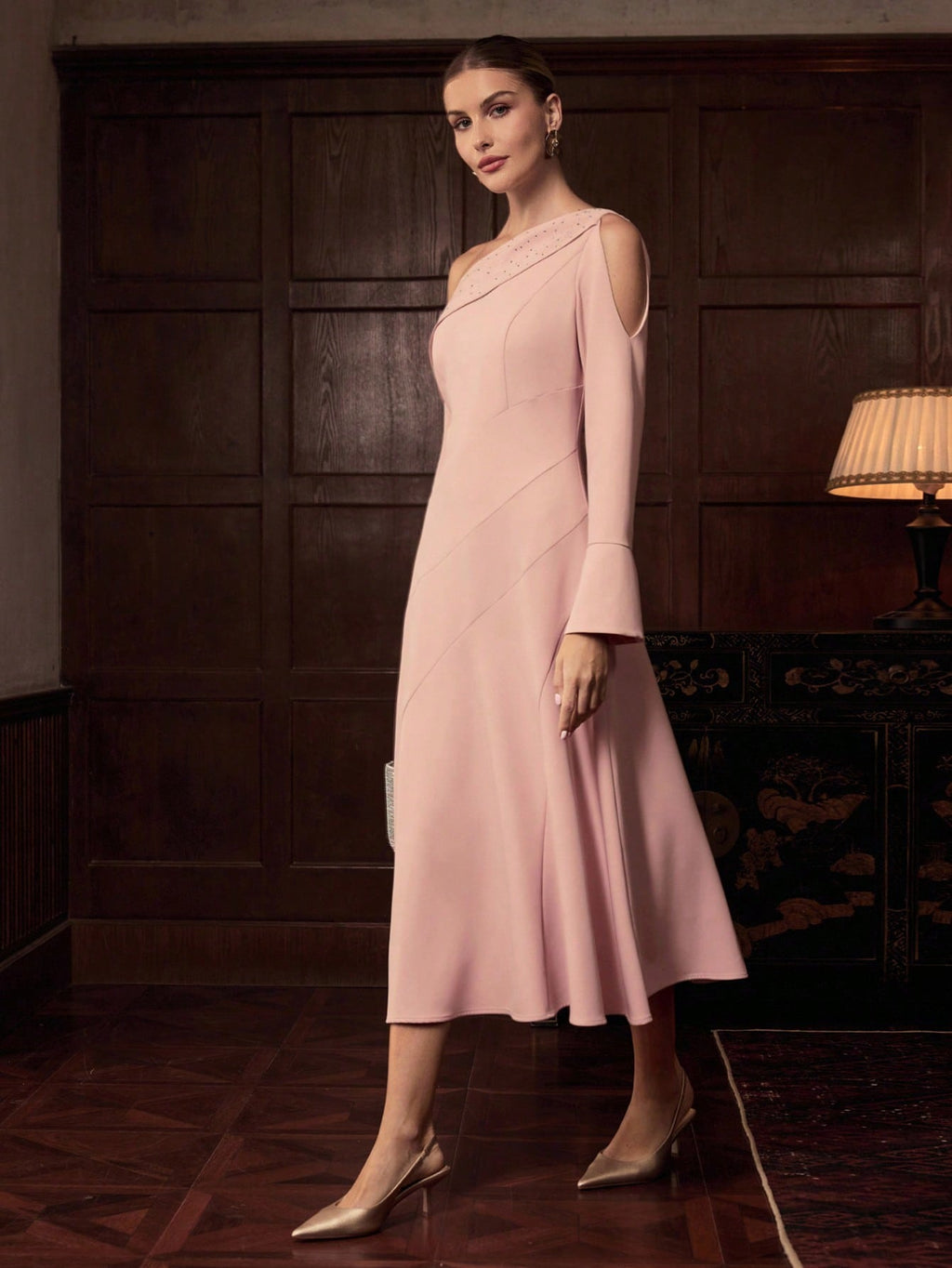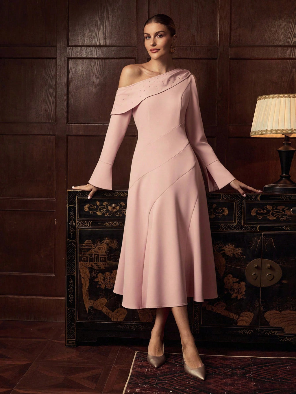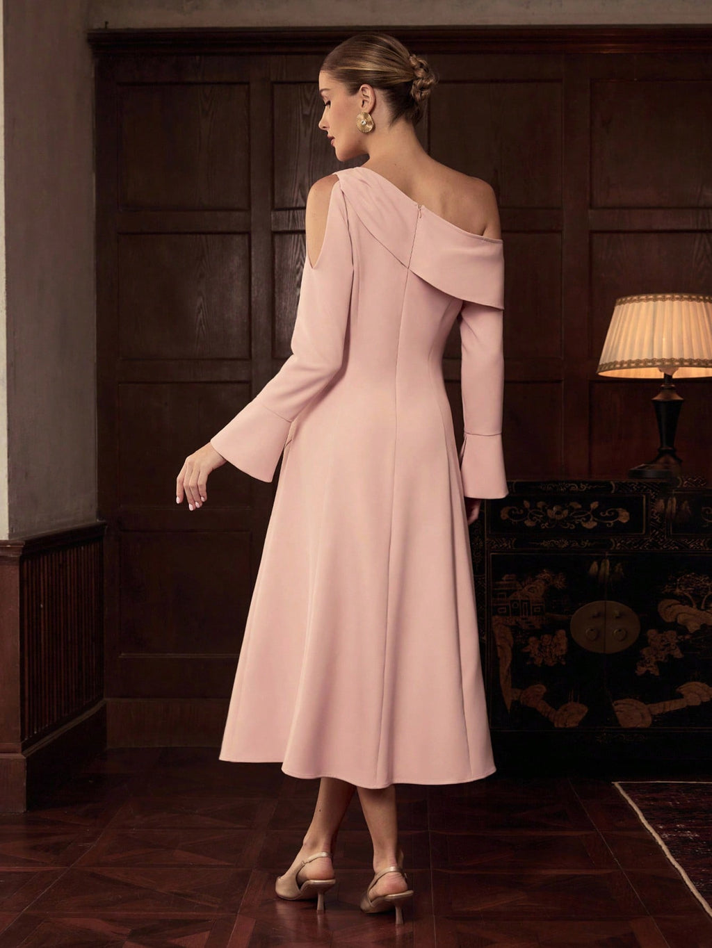 MIU Elegant Asymmetrical Neck Long Sleeve Dress, Autumn/Winter