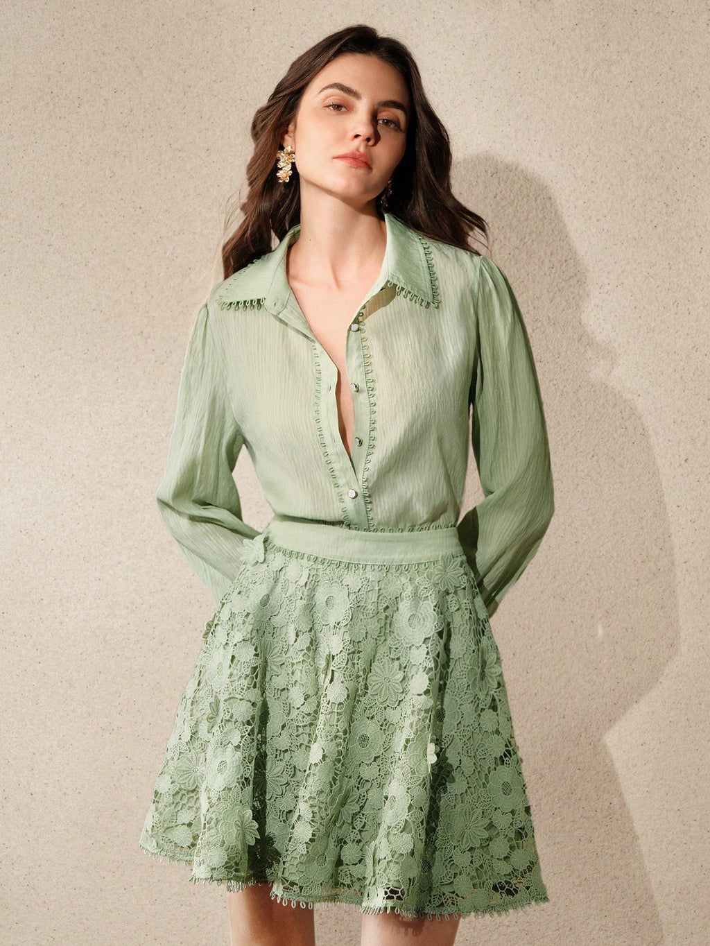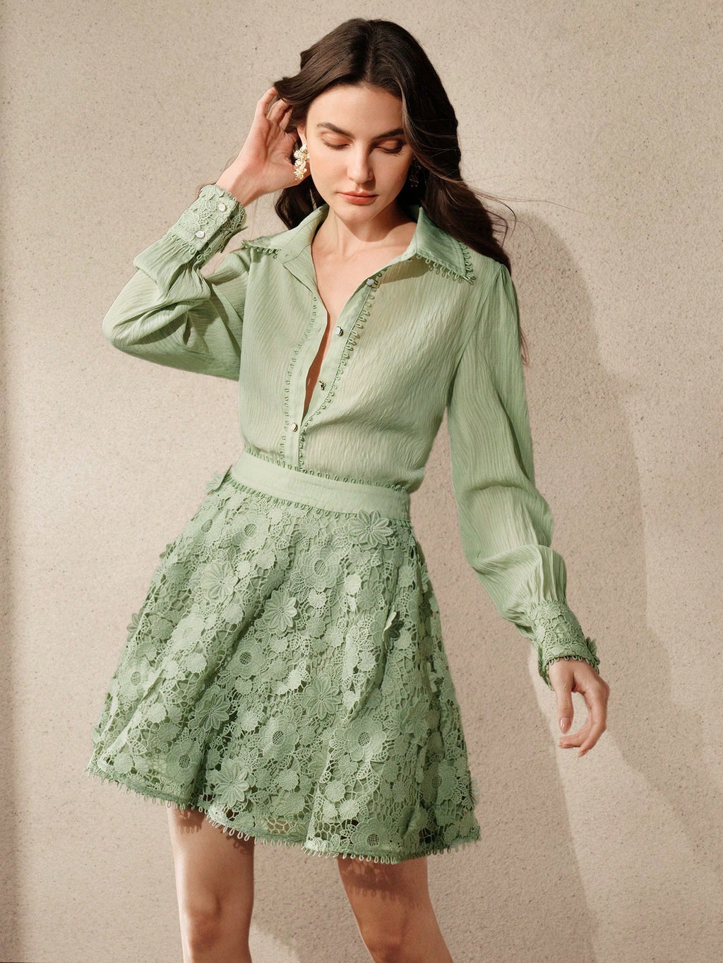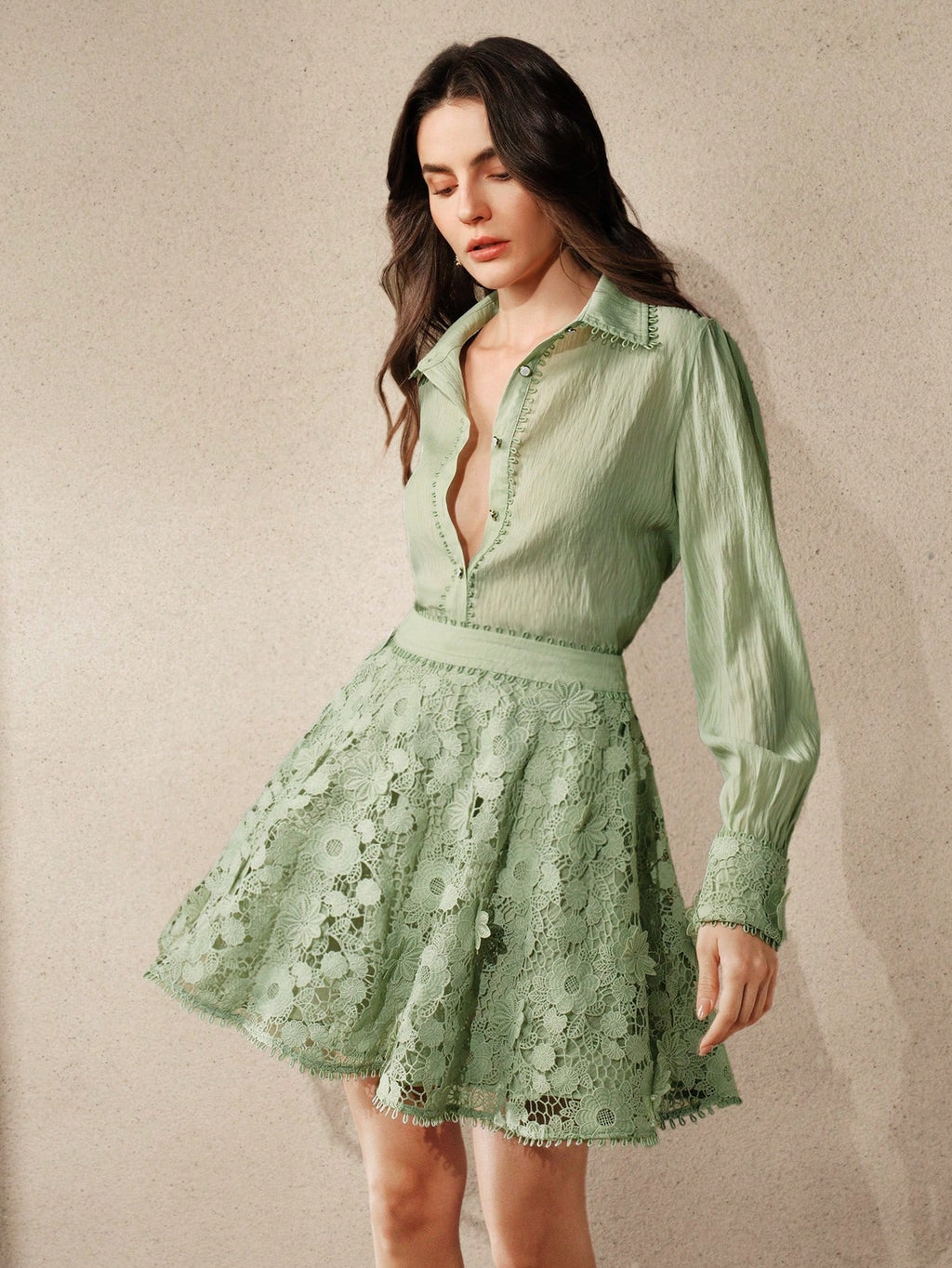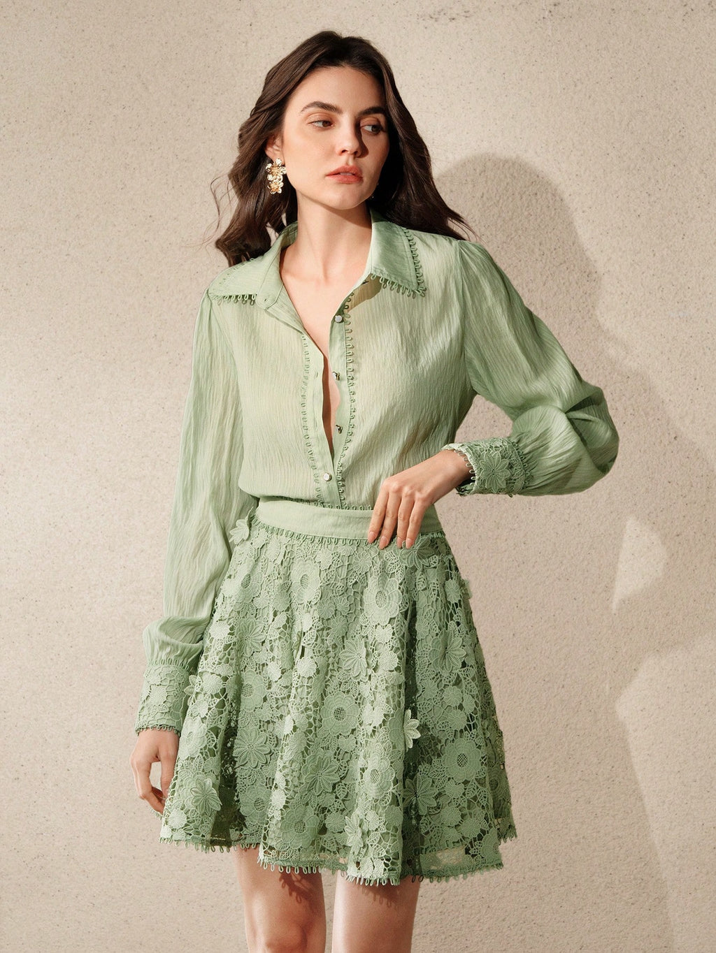 MIU Elegant Floral Print Long Sleeve Waist Defined A-Line Ruffled Hem 2 Pieces Set, Spring Outfit For Women, Valentine's Day