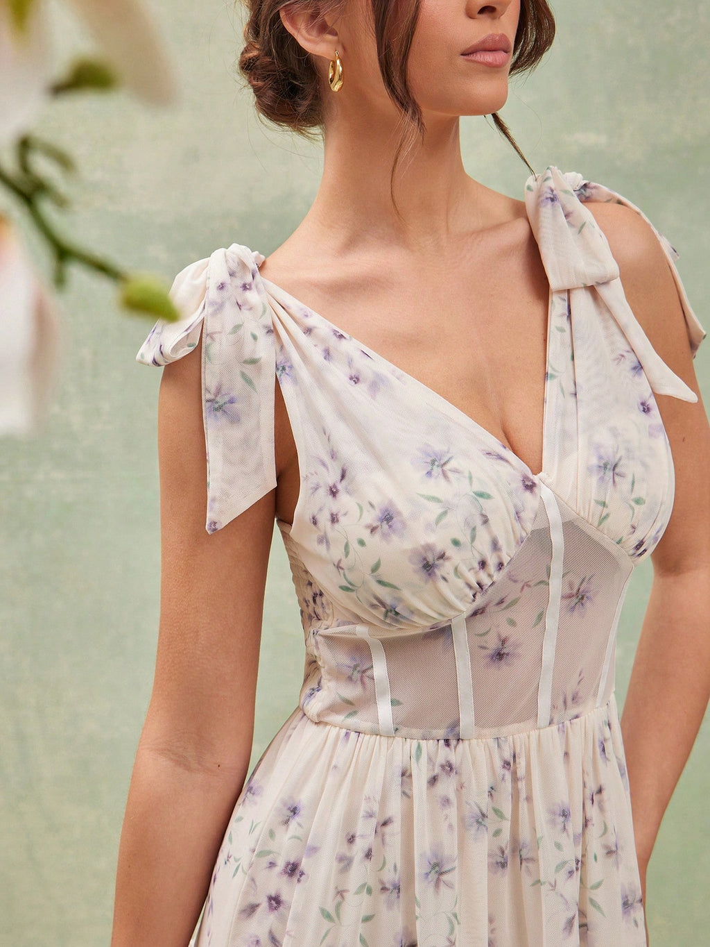 MIU Elegant Floral Print Ruffle Hem Sleeveless Summer Dress