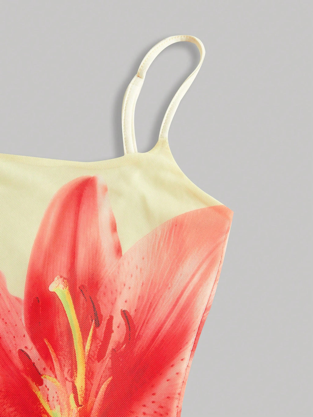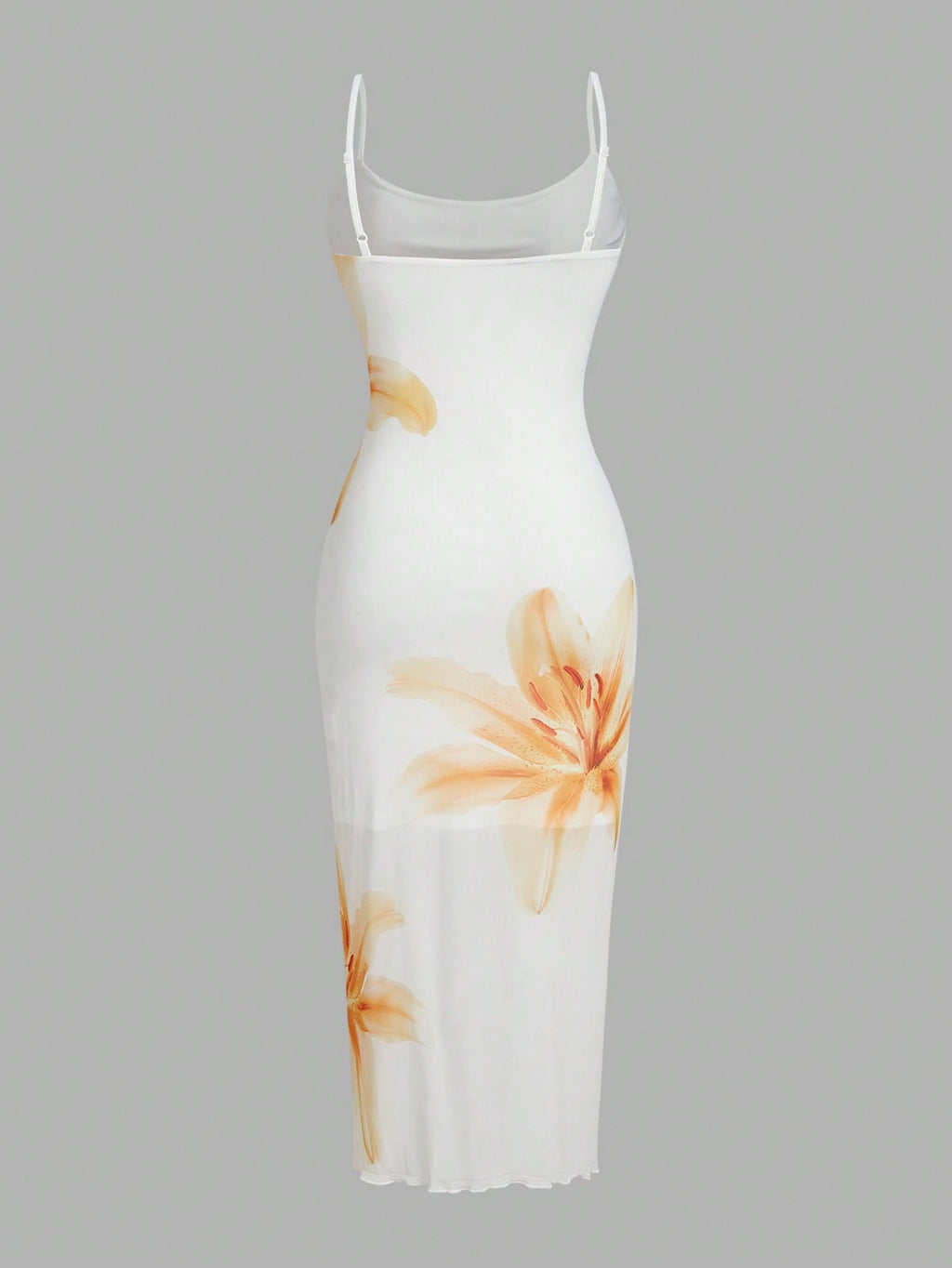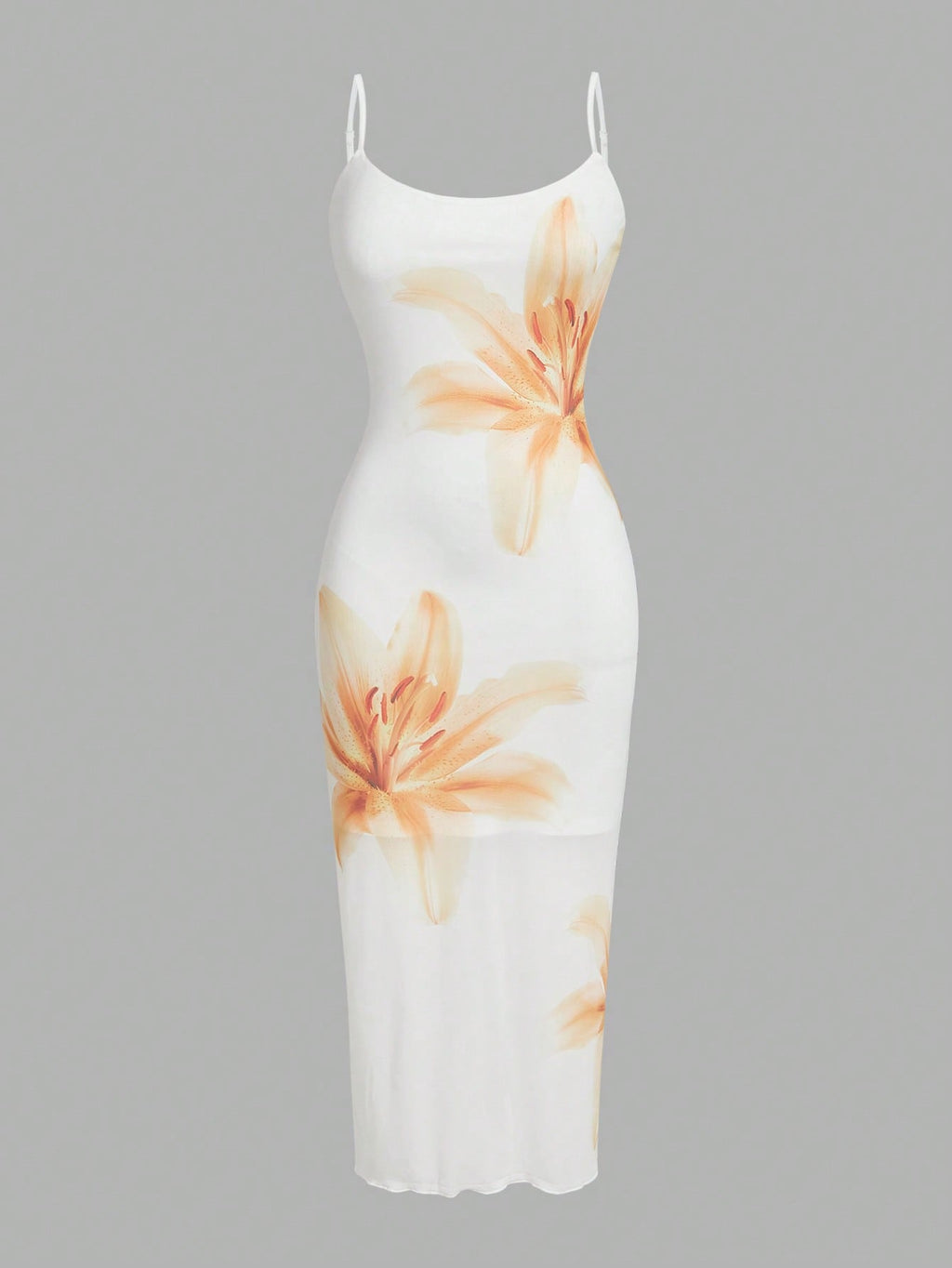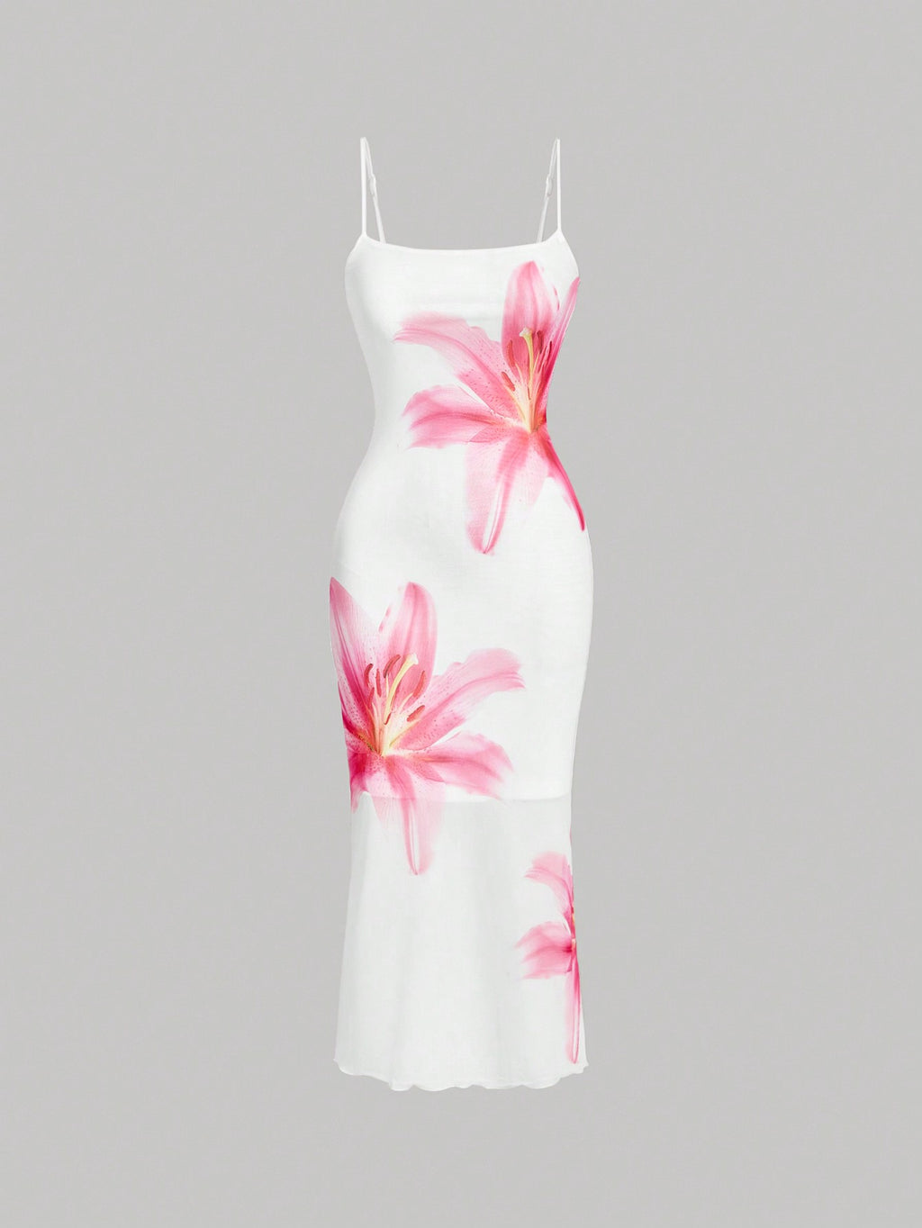 MIU Elegant Floral Print Slip Dress, Resort Style Dress, Fall Dress,New Year Eve Dress,Thanksgiving Women Dress, Party Women Dress,Holiday Party Women Dress,Summer Dresses For Women