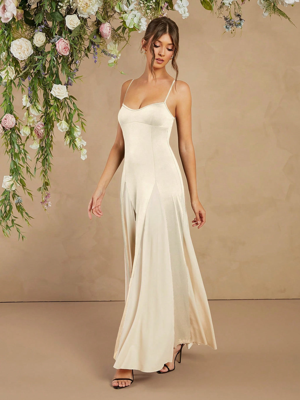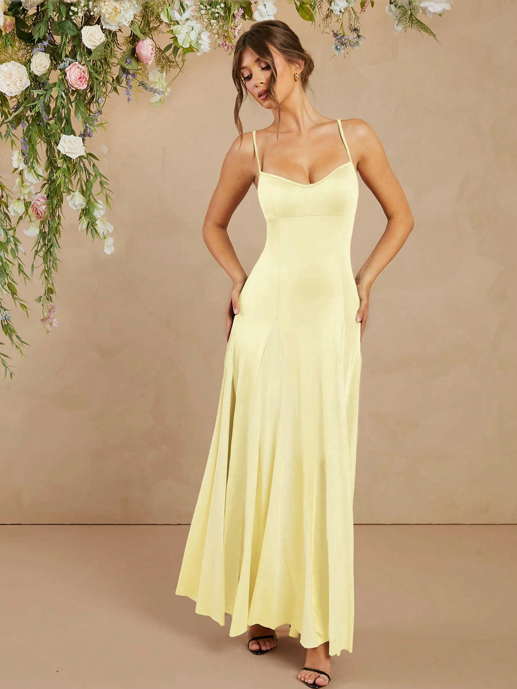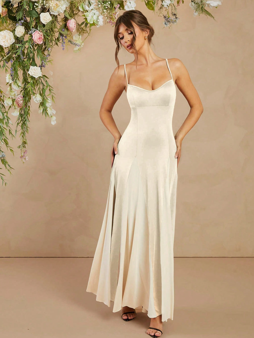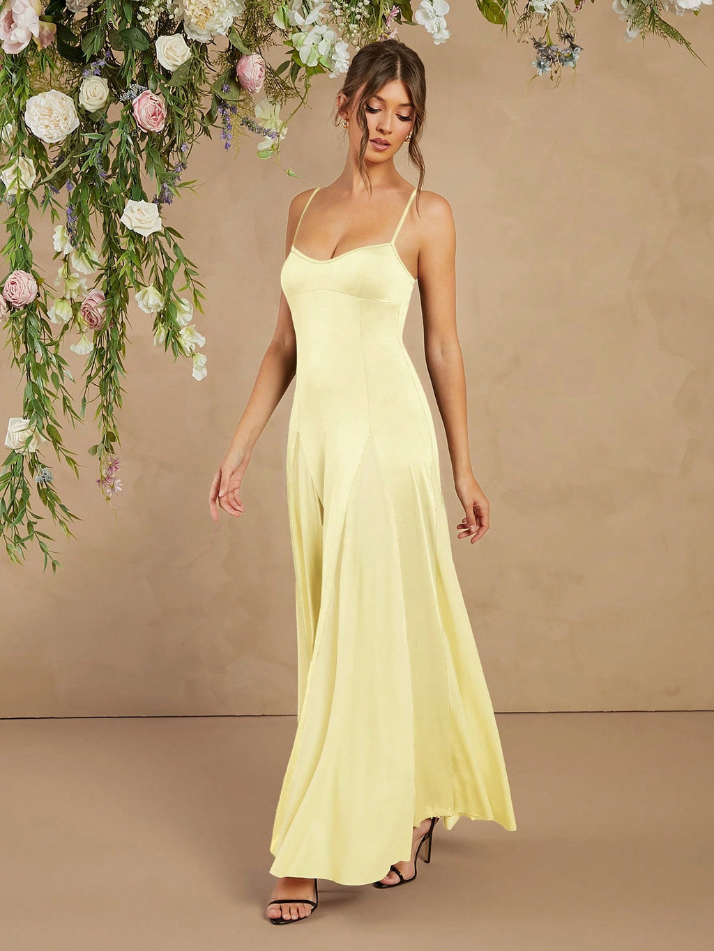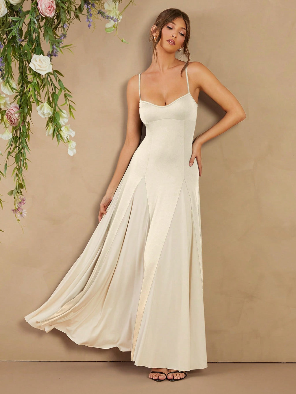 MIU Elegant Flowy Spaghetti Straps Sleeveless Maxi Dress, Wedding Guest Dress, Summer Outfits For Women