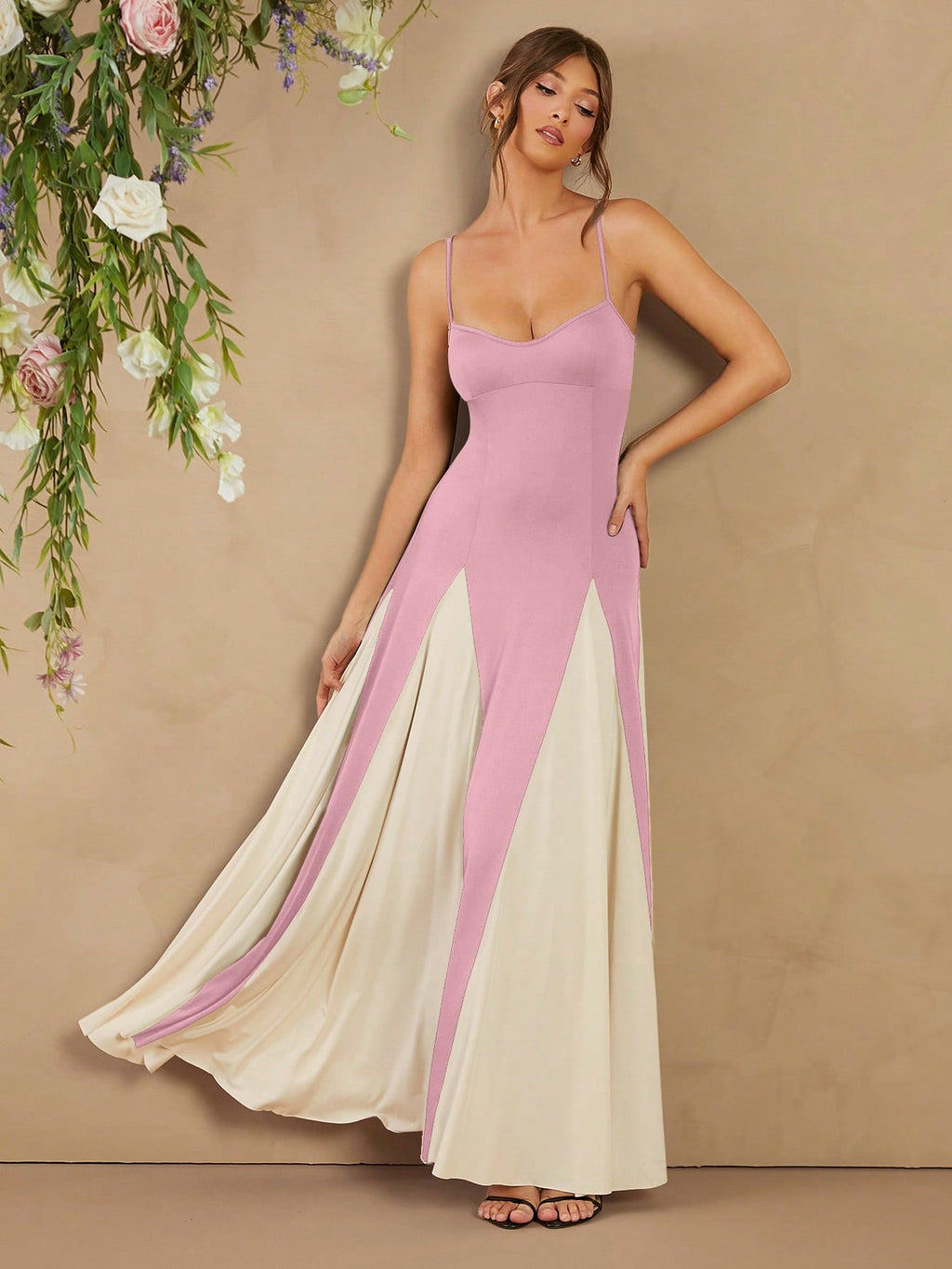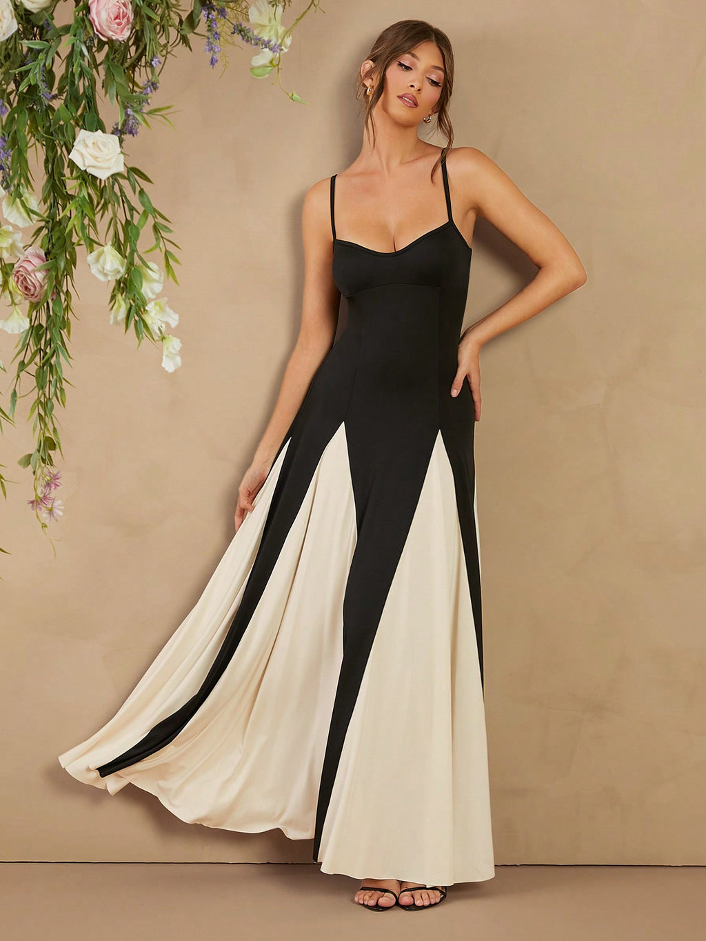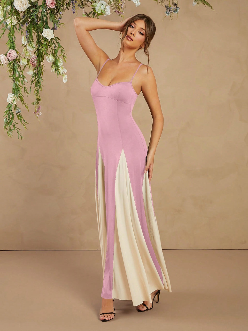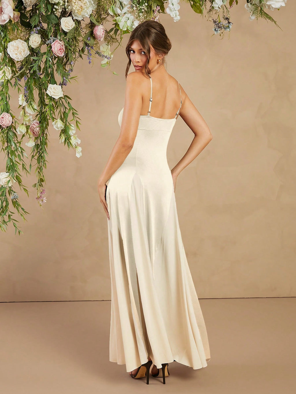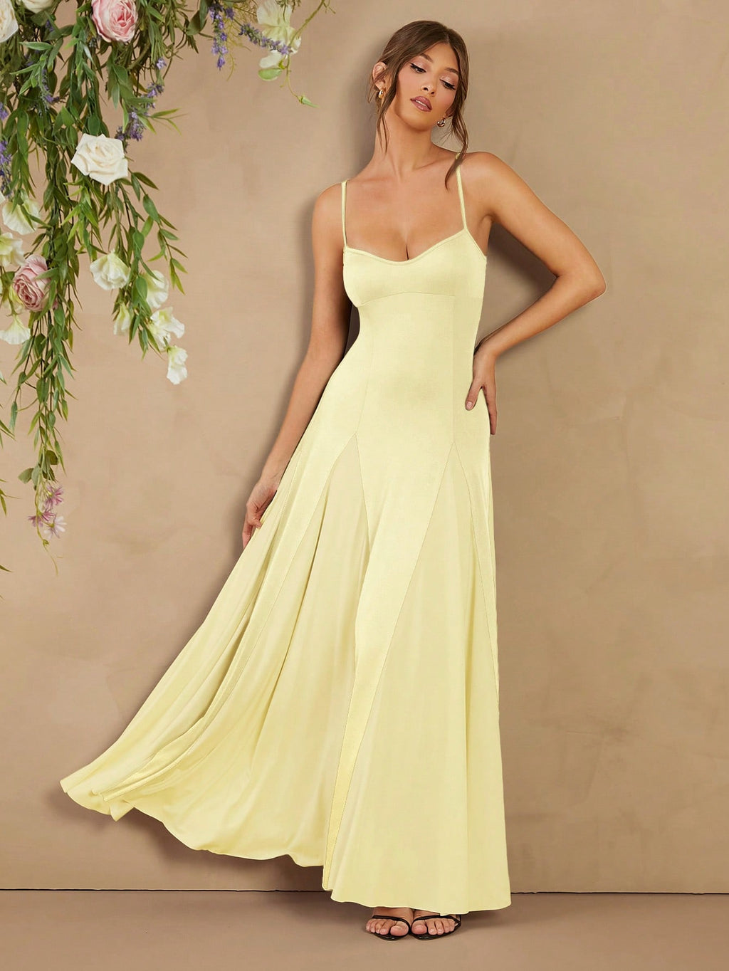 MIU Elegant Flowy Spaghetti Straps Sleeveless Maxi Dress, Wedding Guest Dress, Summer Outfits For Women