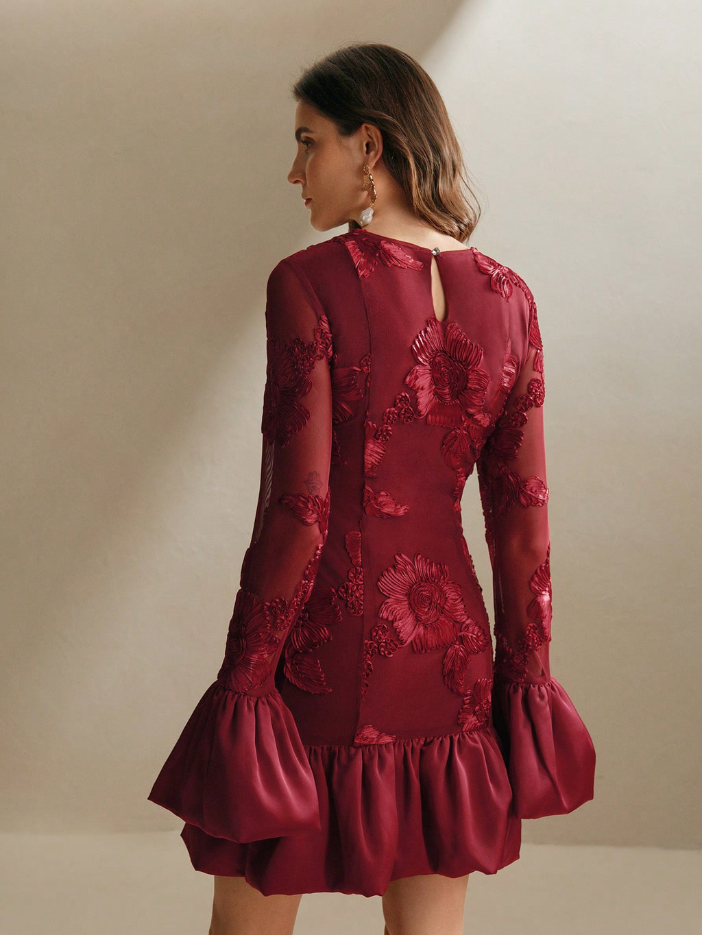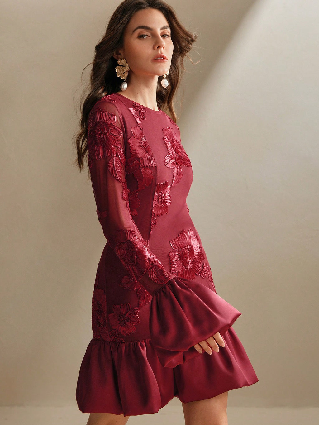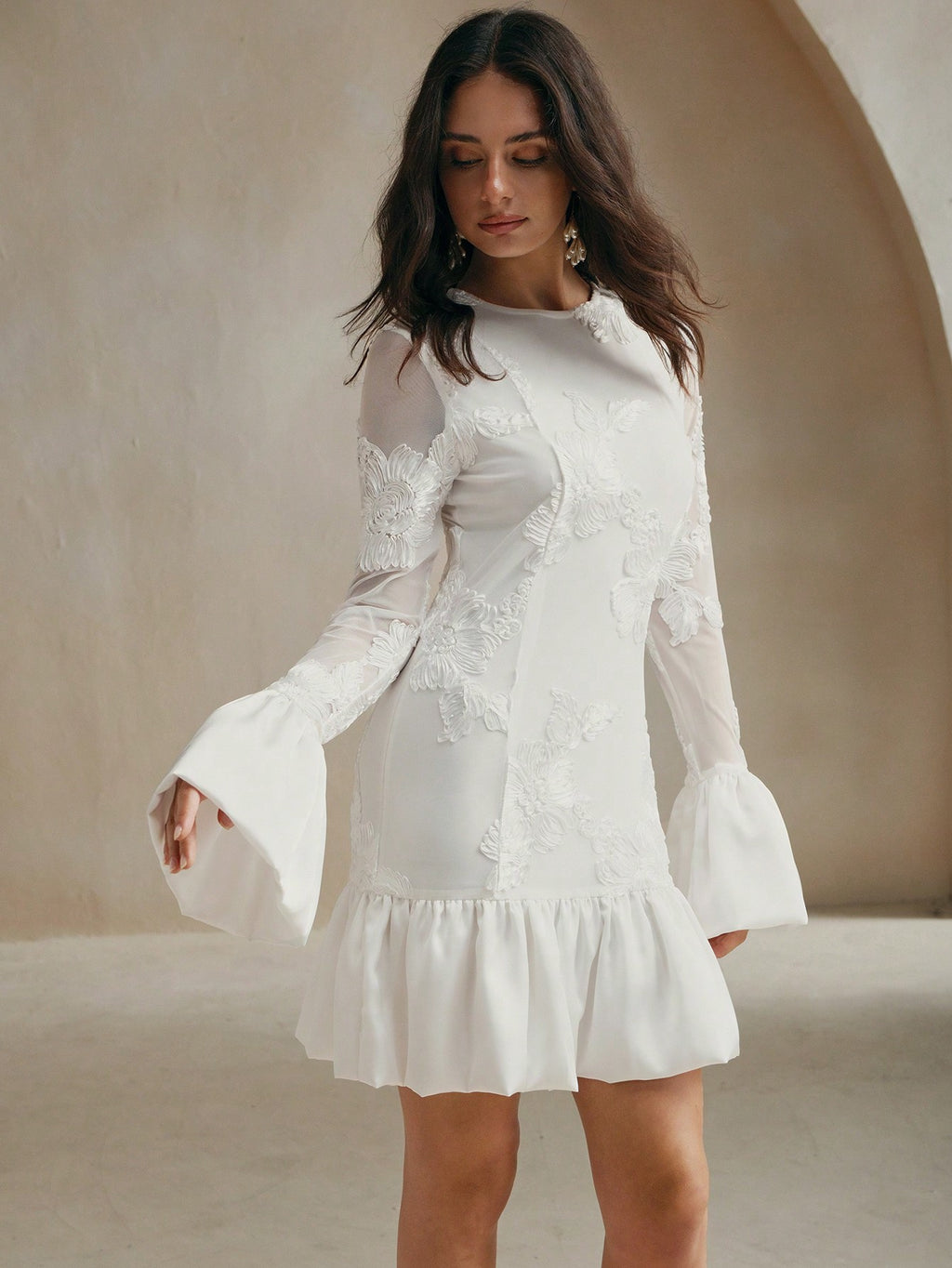 MIU Elegant French Embroidered Fitted Floral Midi Dress For Women Embroidery Women Outfit