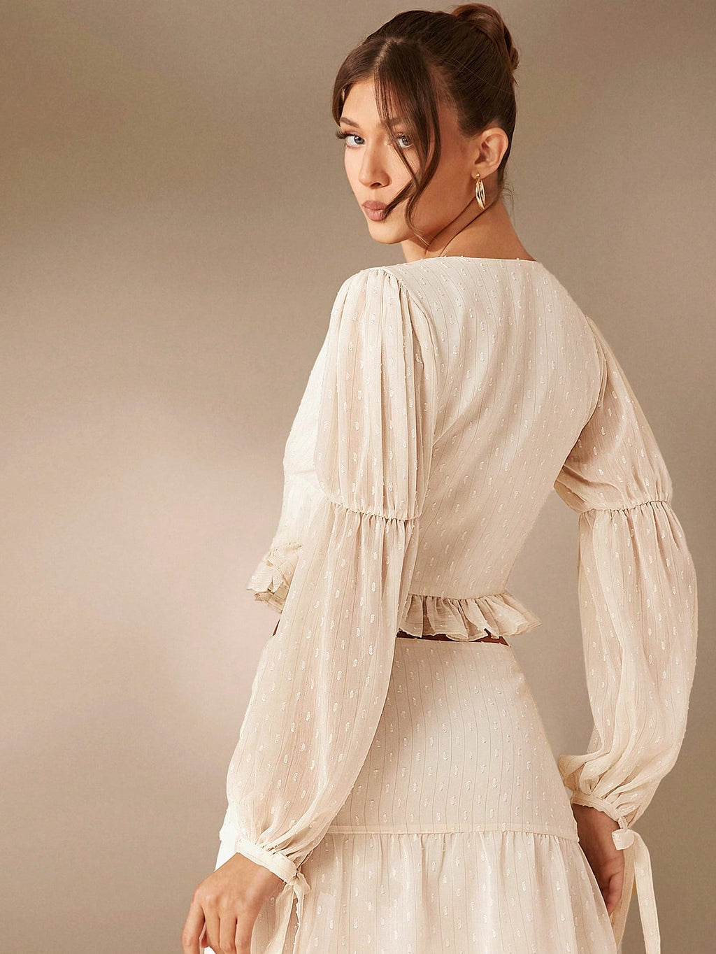 MIU Elegant Long Sleeve Chiffon Buttoned Ruffle Hem Holiday Party Top