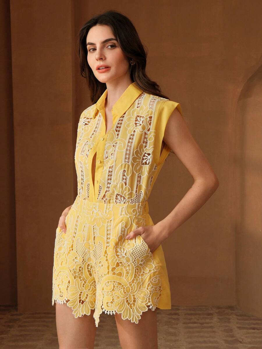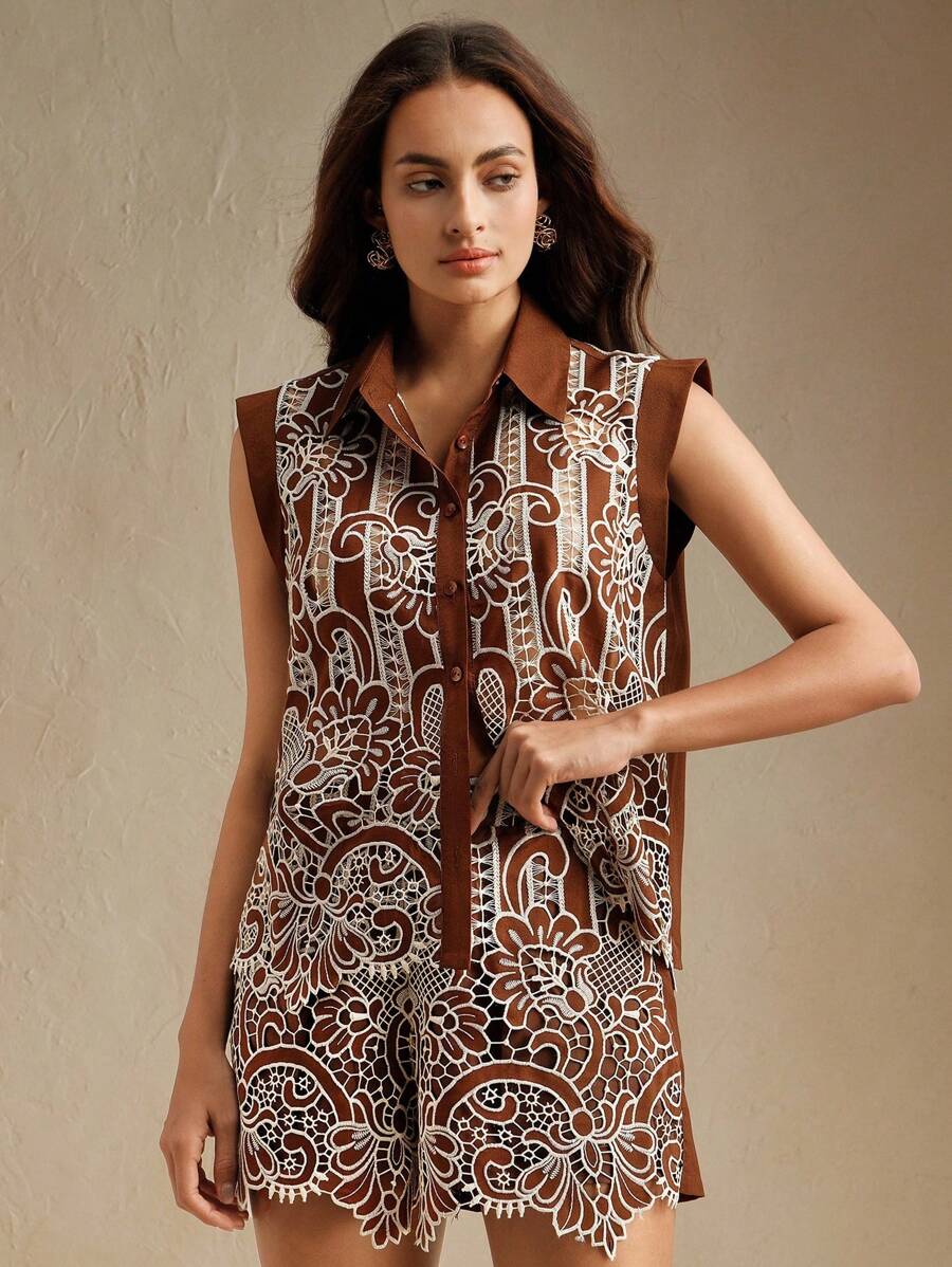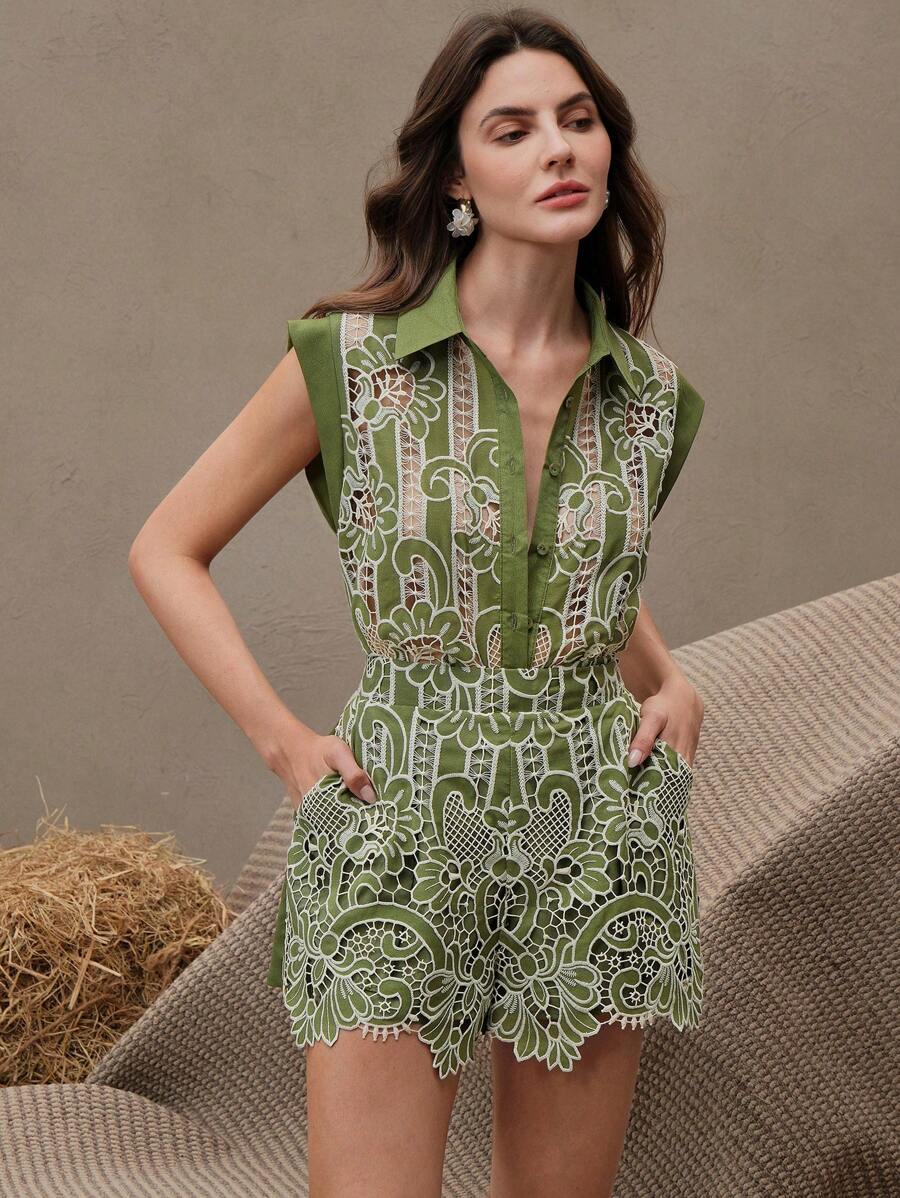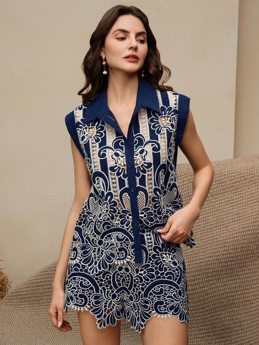 MIU Elegant Luxury Embroidered Lace Set, Inspired By "Old Money" Summer Vacation Style