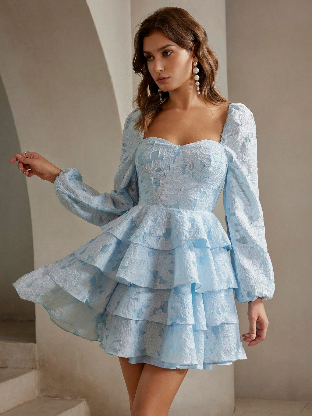 MIU Elegant Party Wear Multi-Layer Ruffle Trim Waist Embroidered White Ladies Dress Mini Short Women Outfit