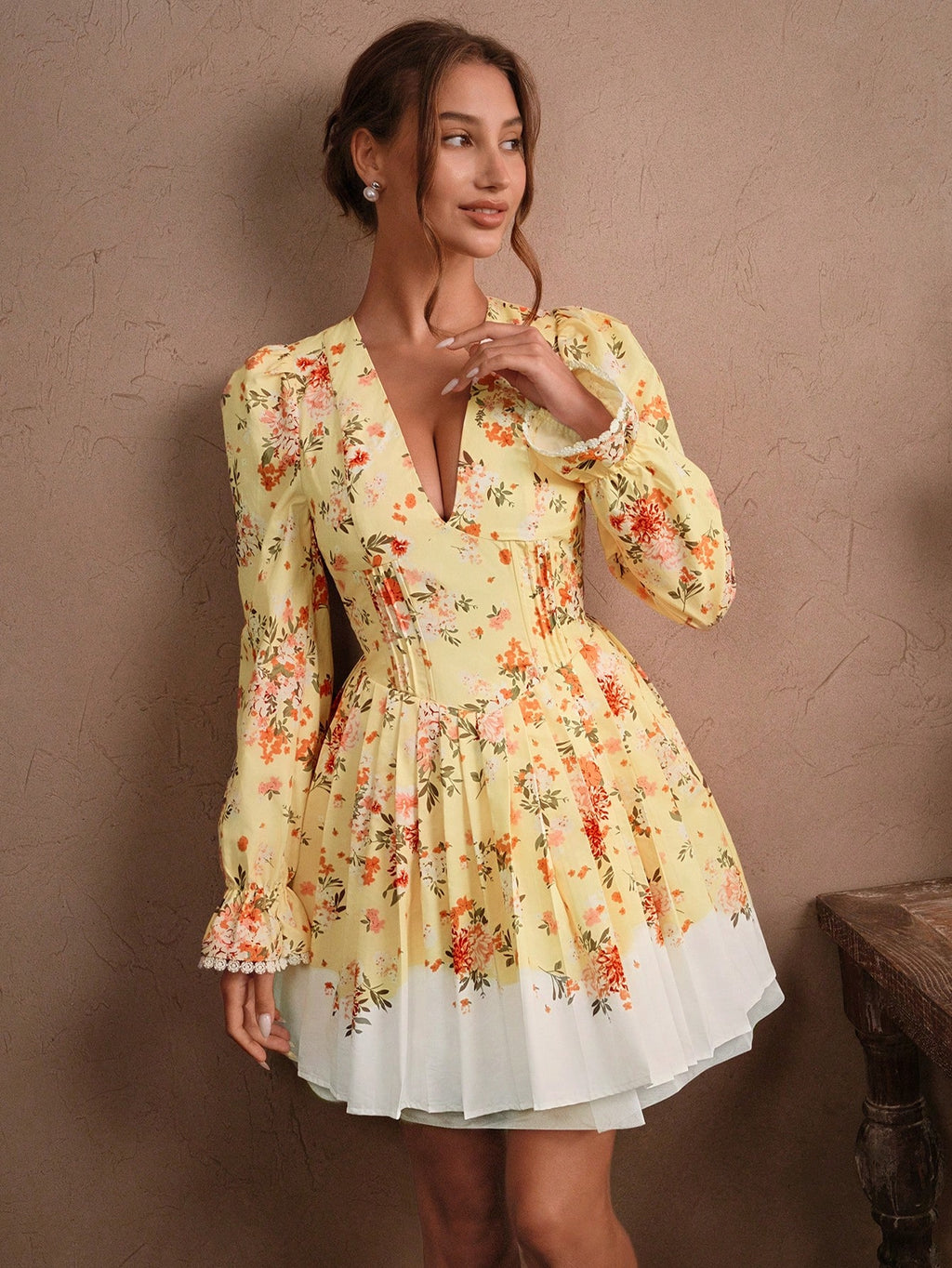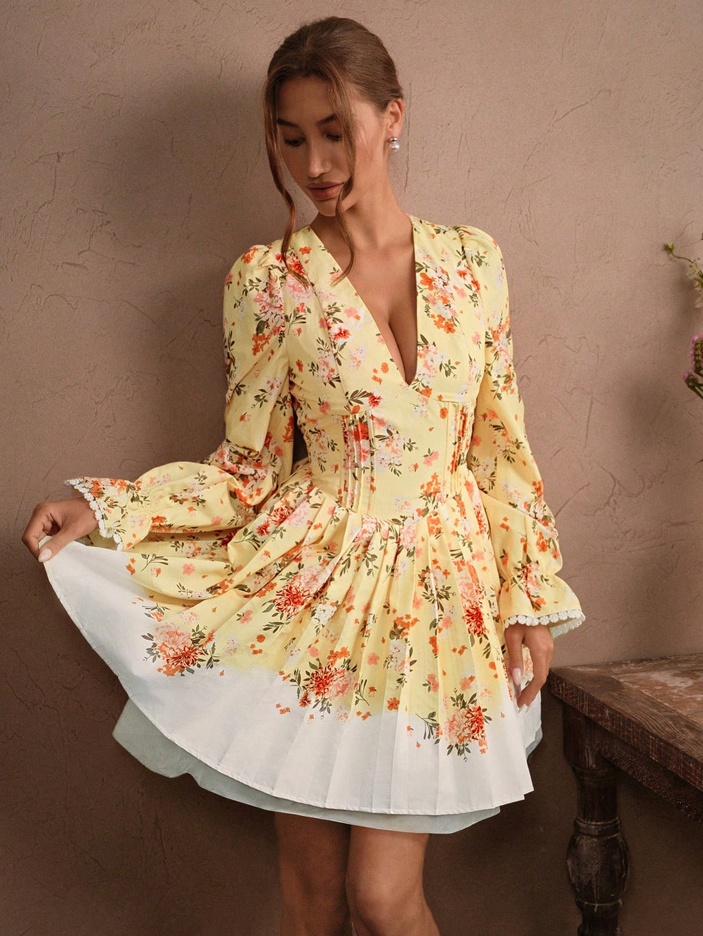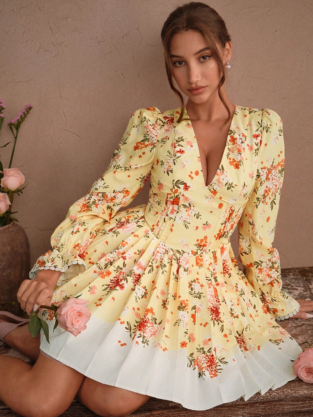 MIU Elegant Romantic Mini Dress With Ruffle Hem, Bowknot Backless Design, Ditsy Floral, Cinched Waist, Suitable For Spring/Summer, Holiday, Festival, Vacation, Valentine's Day