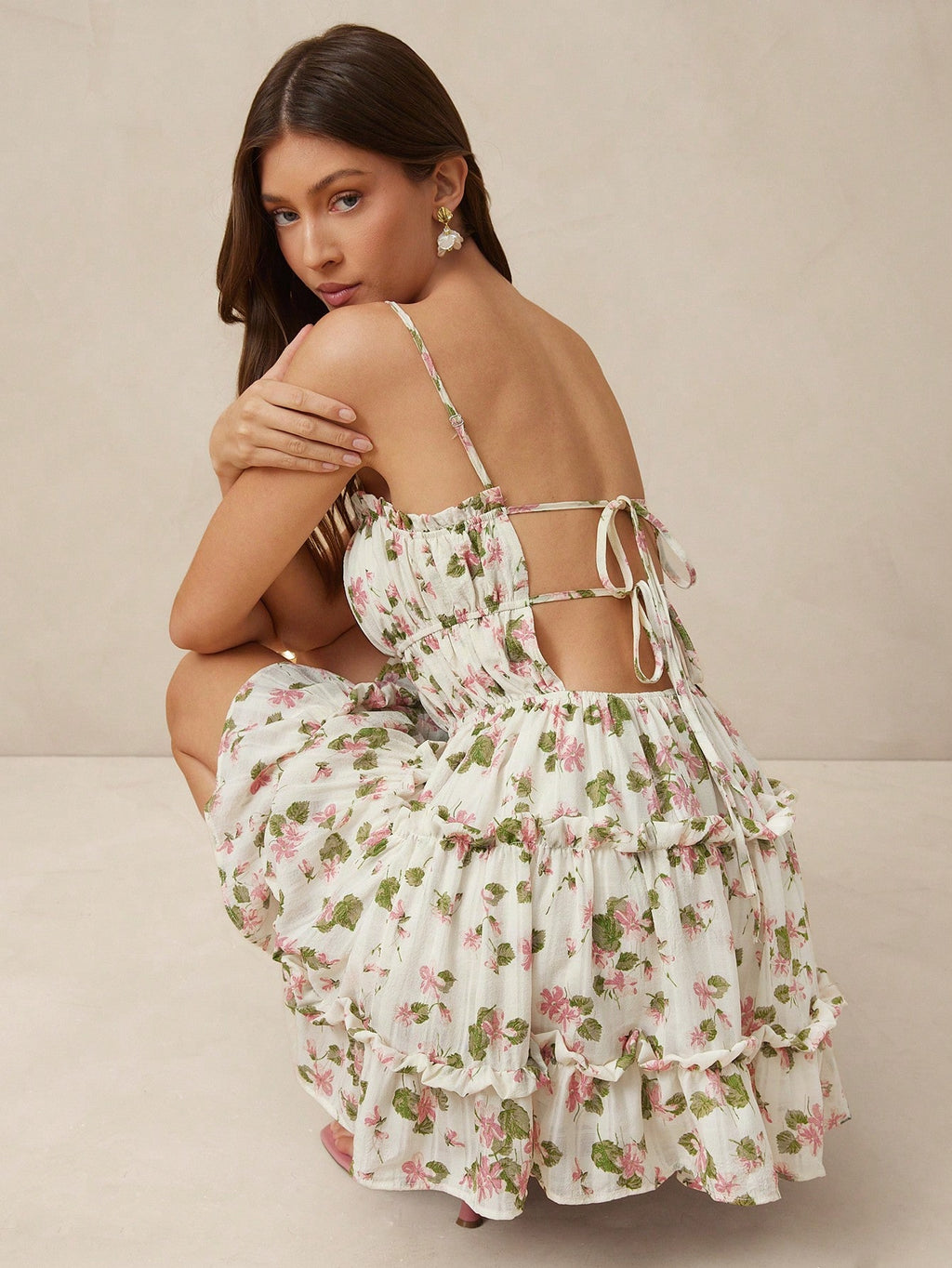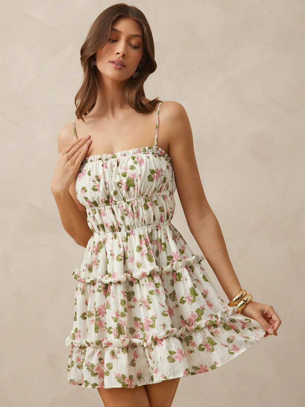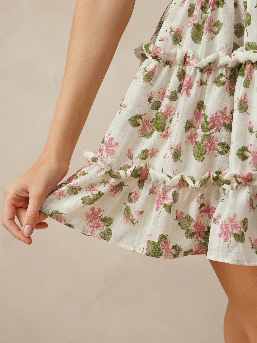 MIU Elegant Sleeveless Floral Print Tiered Smocked Summer Mini Sun Dress, Summer Outfits For Women, Brunch Outfits For Women