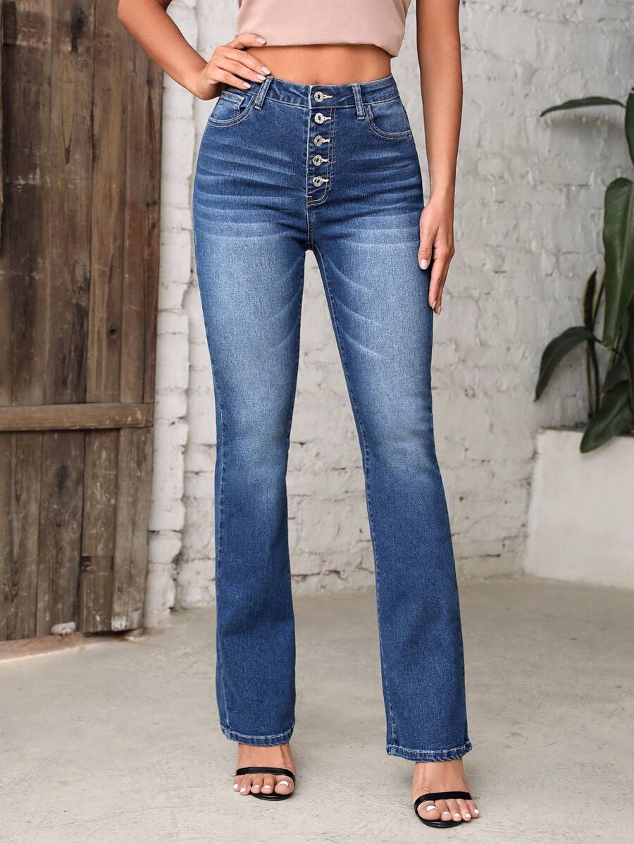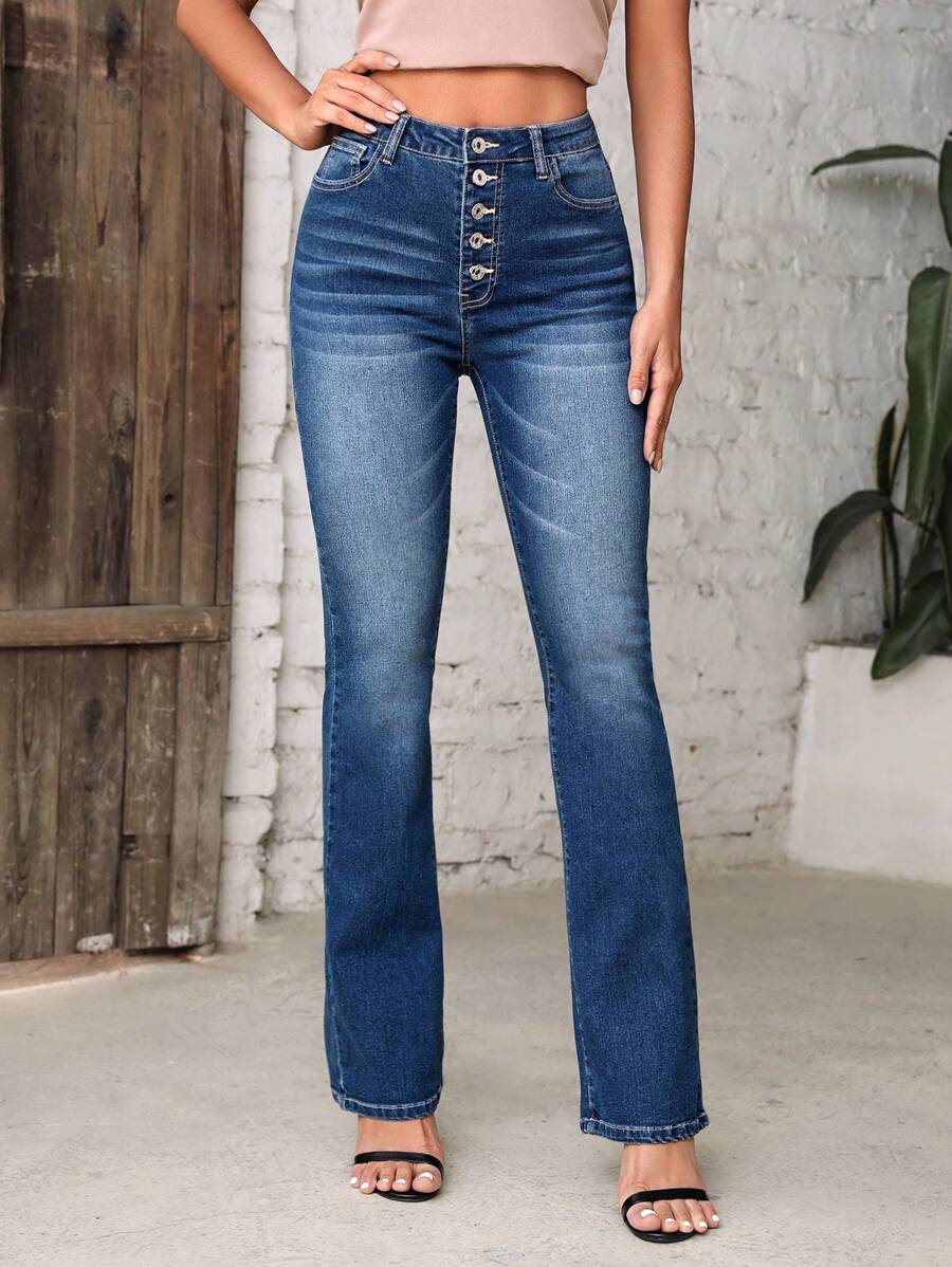 MIU Essnce Button Fly Flare Leg Jeans
