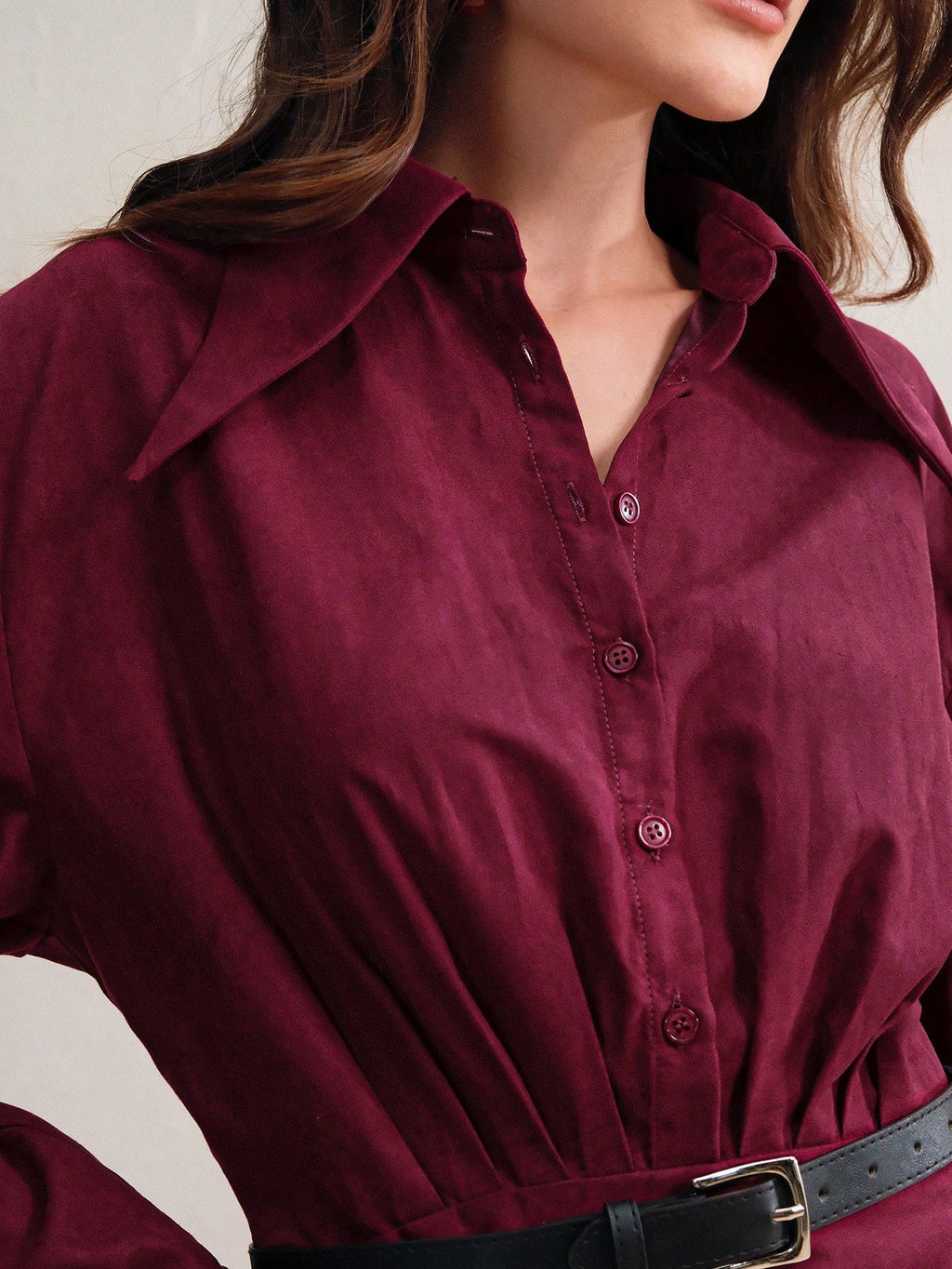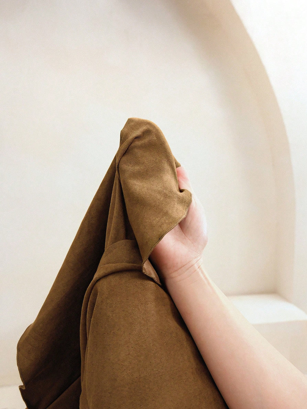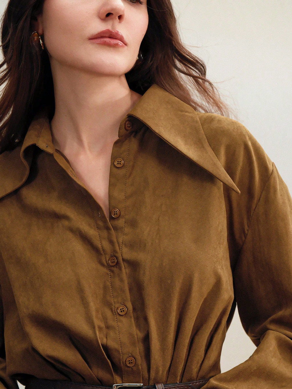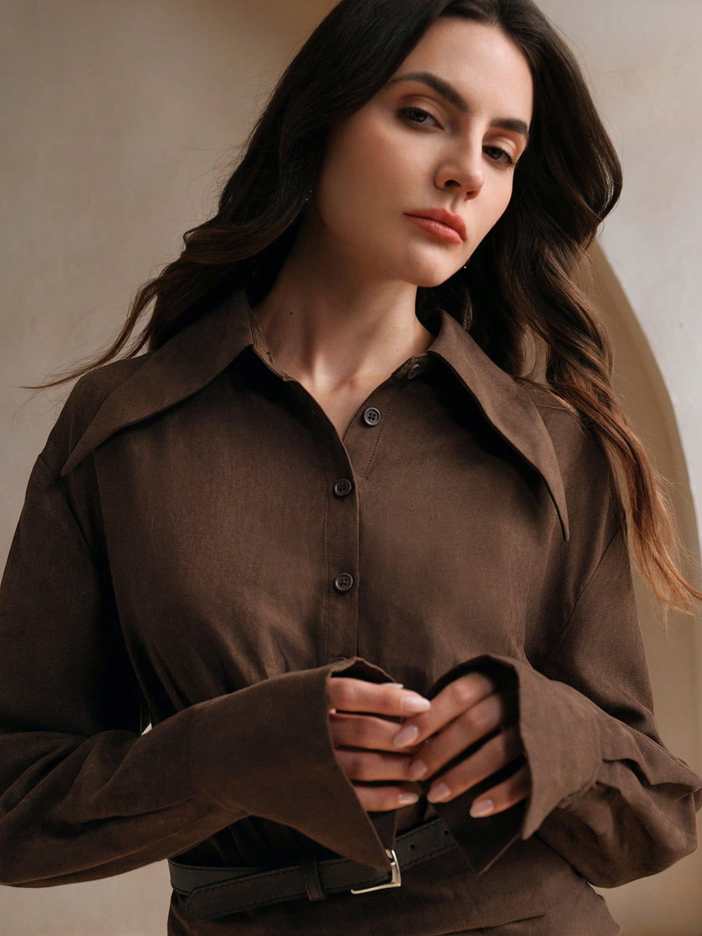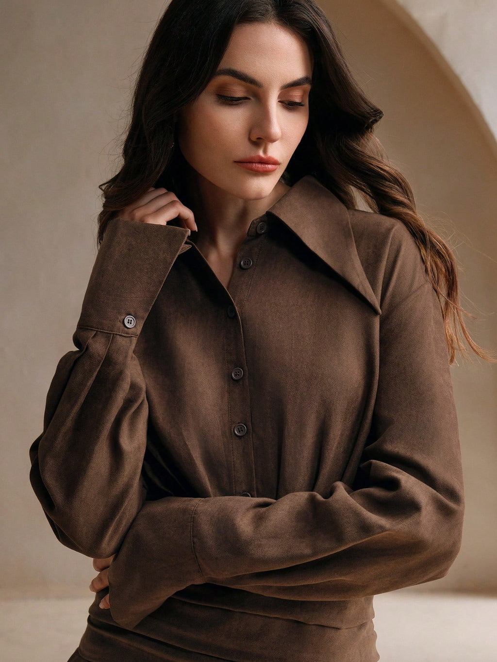 MIU European Unique Design Suede Ruffle Hem Casual Dress With Cinched Waist And Short Peplum Skirt Organza Women Outfit