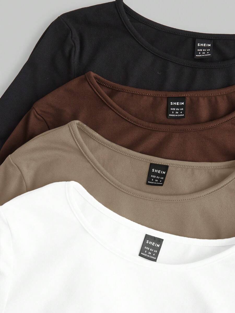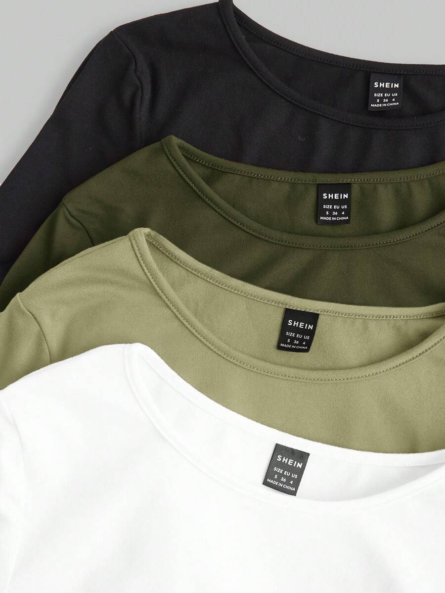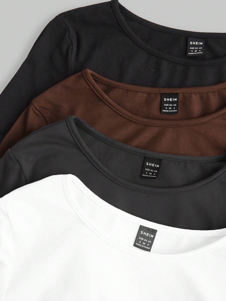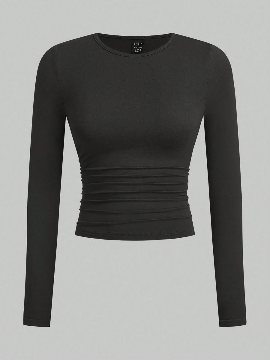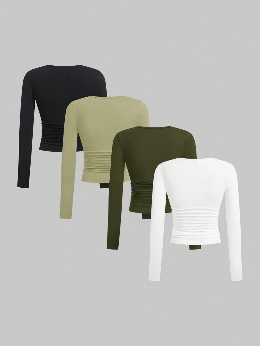 MIU EZwear Multi-Color Knitted Women's Round Neck Long Sleeve Ruched Bodycon T-Shirt