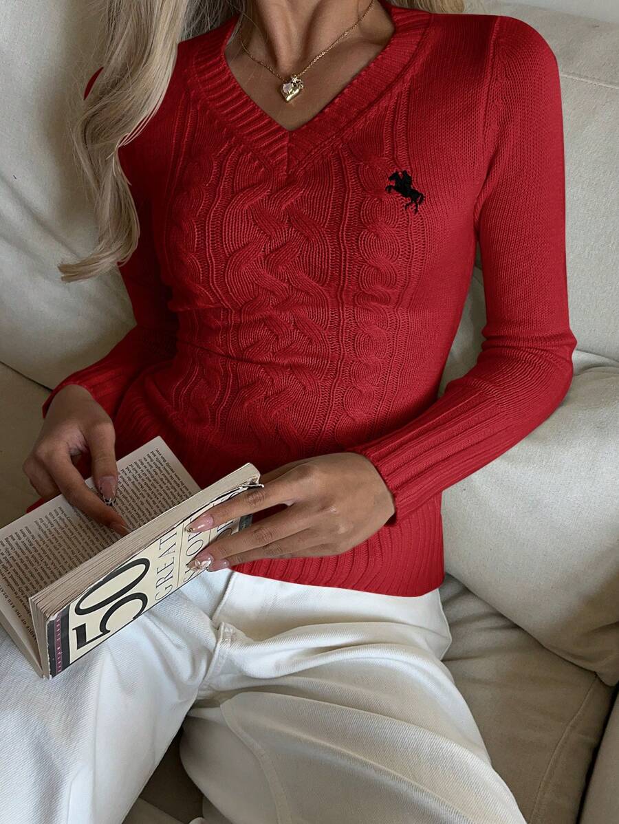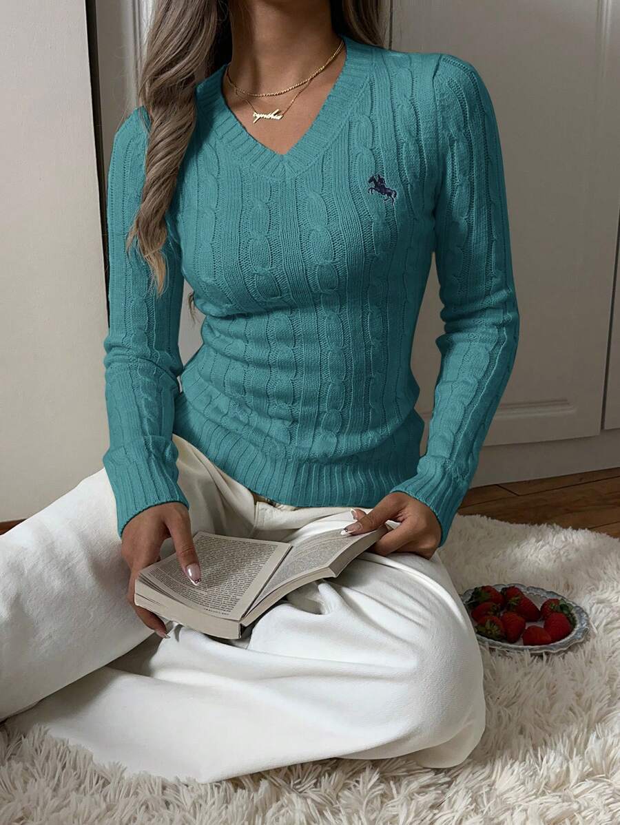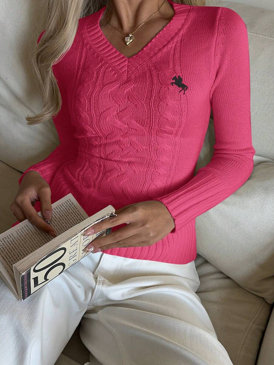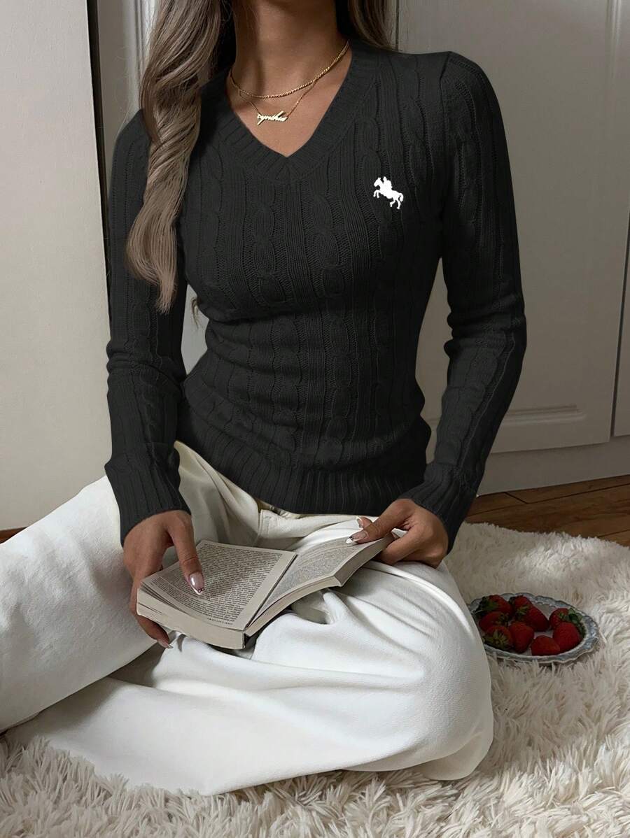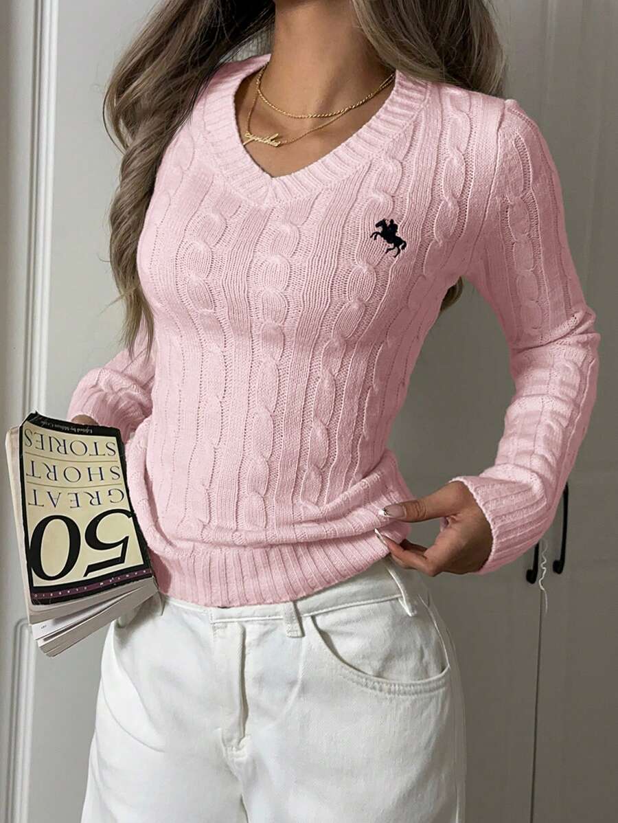 MIU EZwear Women's Knight Pattern Long Sleeve V-Neck Sweater, Autumn/Winter,Tops For School