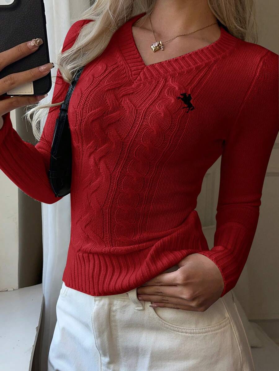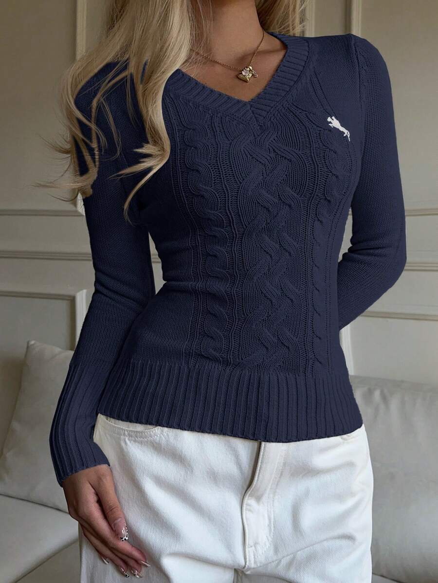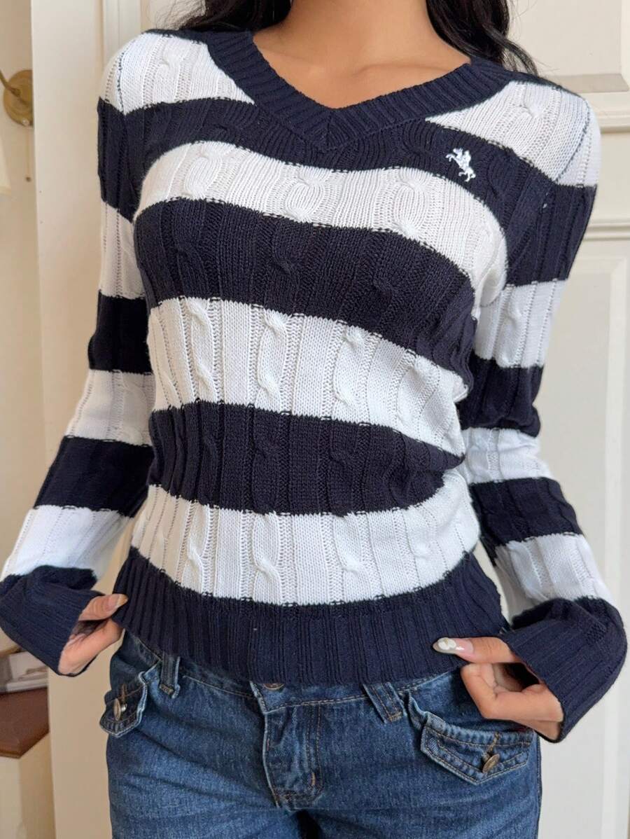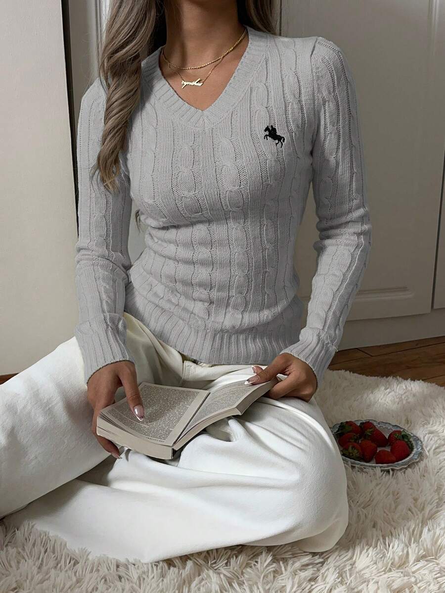 MIU EZwear Women's Knight Pattern Long Sleeve V-Neck Sweater, Autumn/Winter,Tops For School