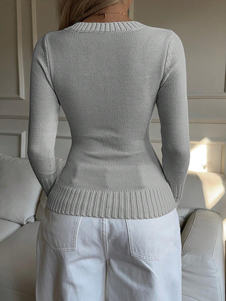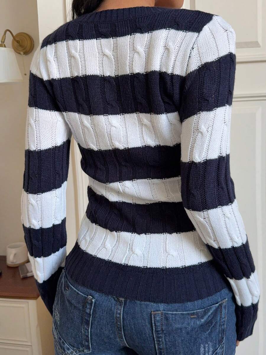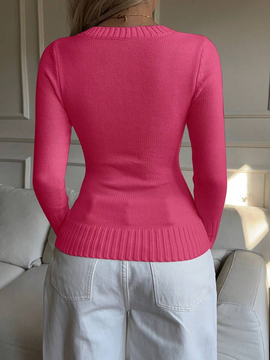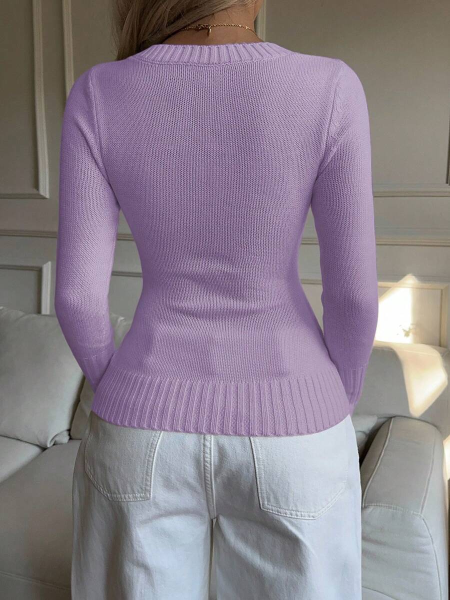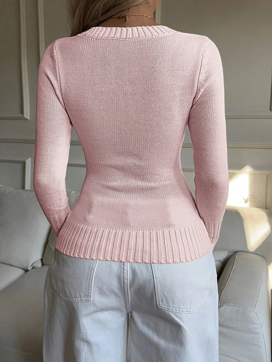 MIU EZwear Women's Knight Pattern Long Sleeve V-Neck Sweater, Autumn/Winter,Tops For School