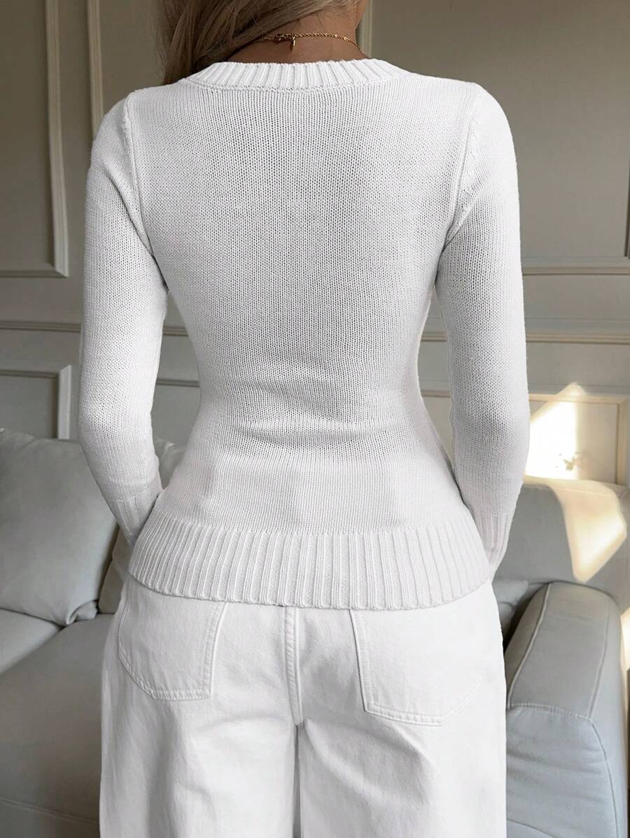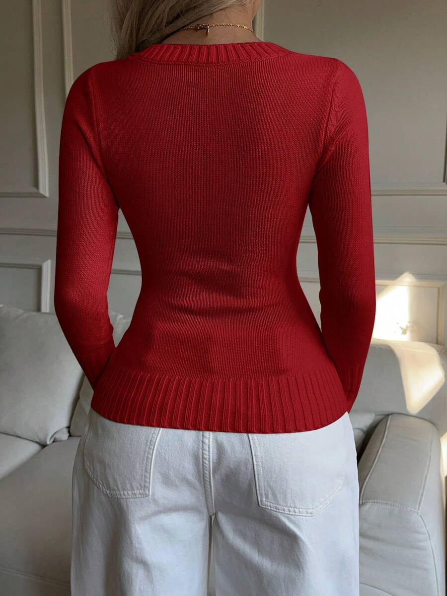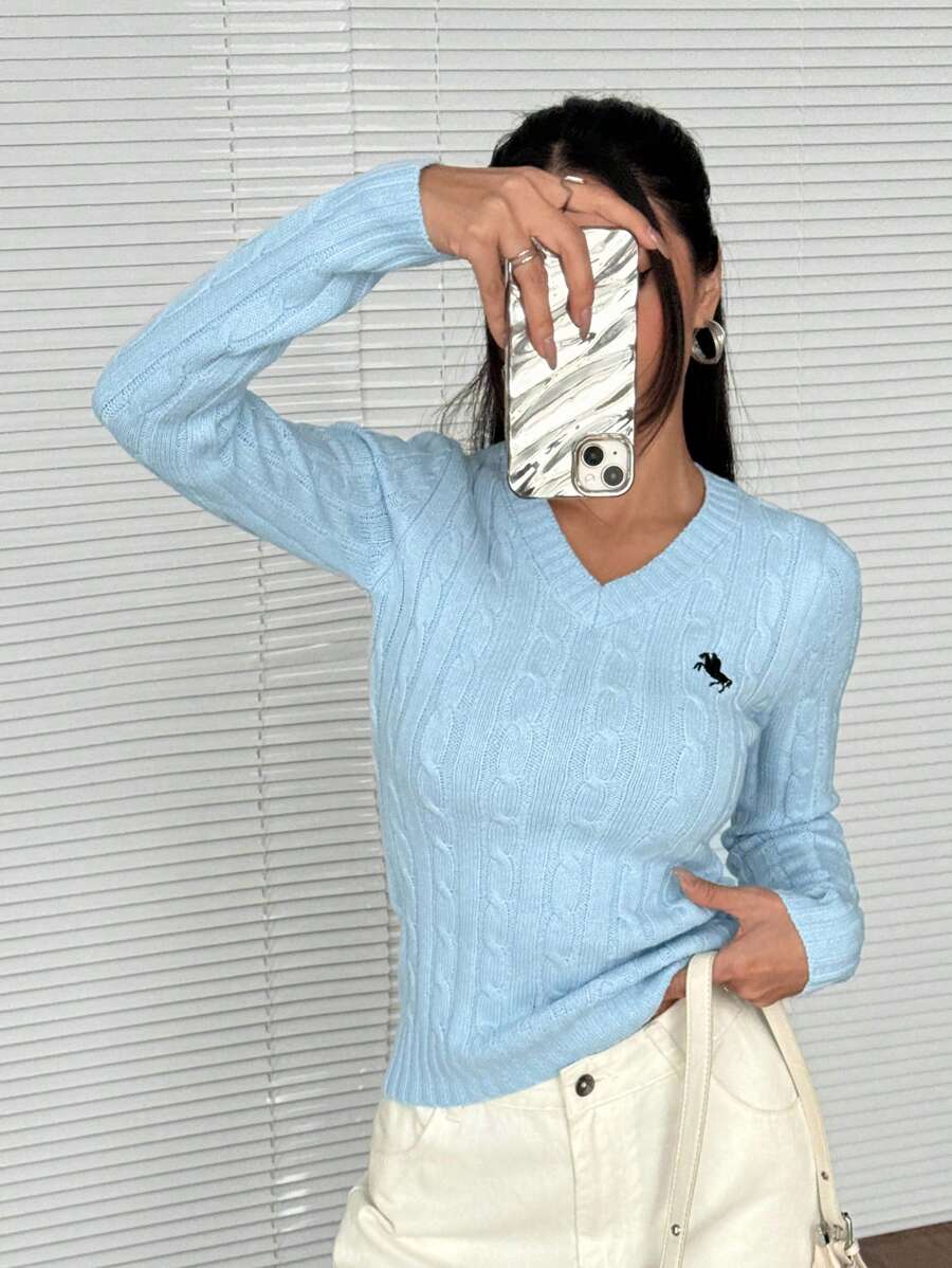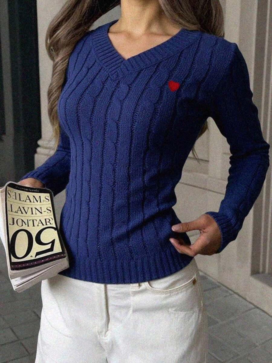 MIU EZwear Women's Plain V-Neck Knit Sweater, Casual And Fashionable For Daily Wear,Long Sleeve Tops,Tops For School In Fall/Winter