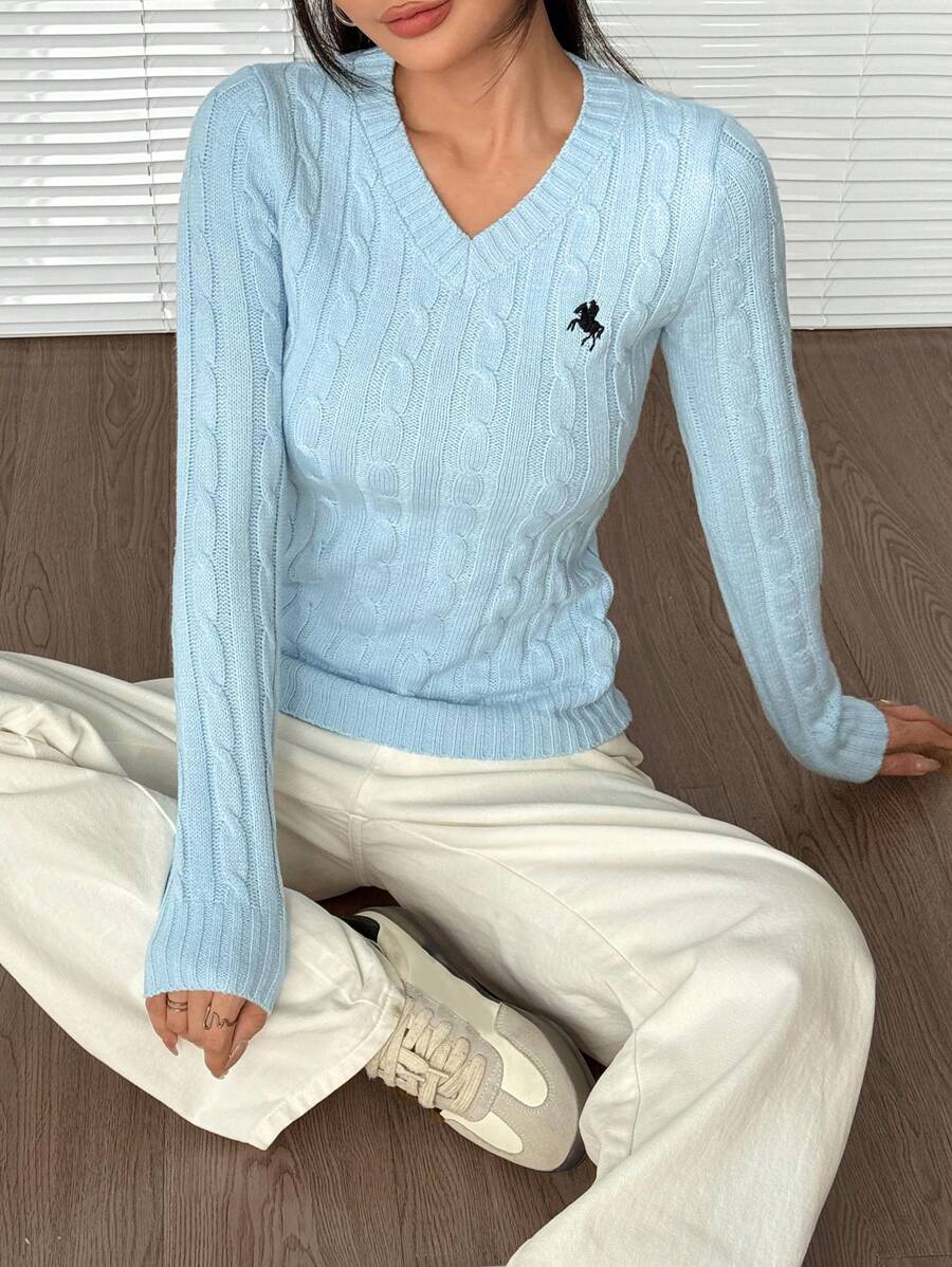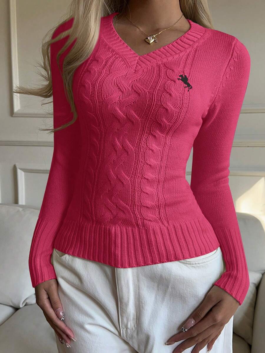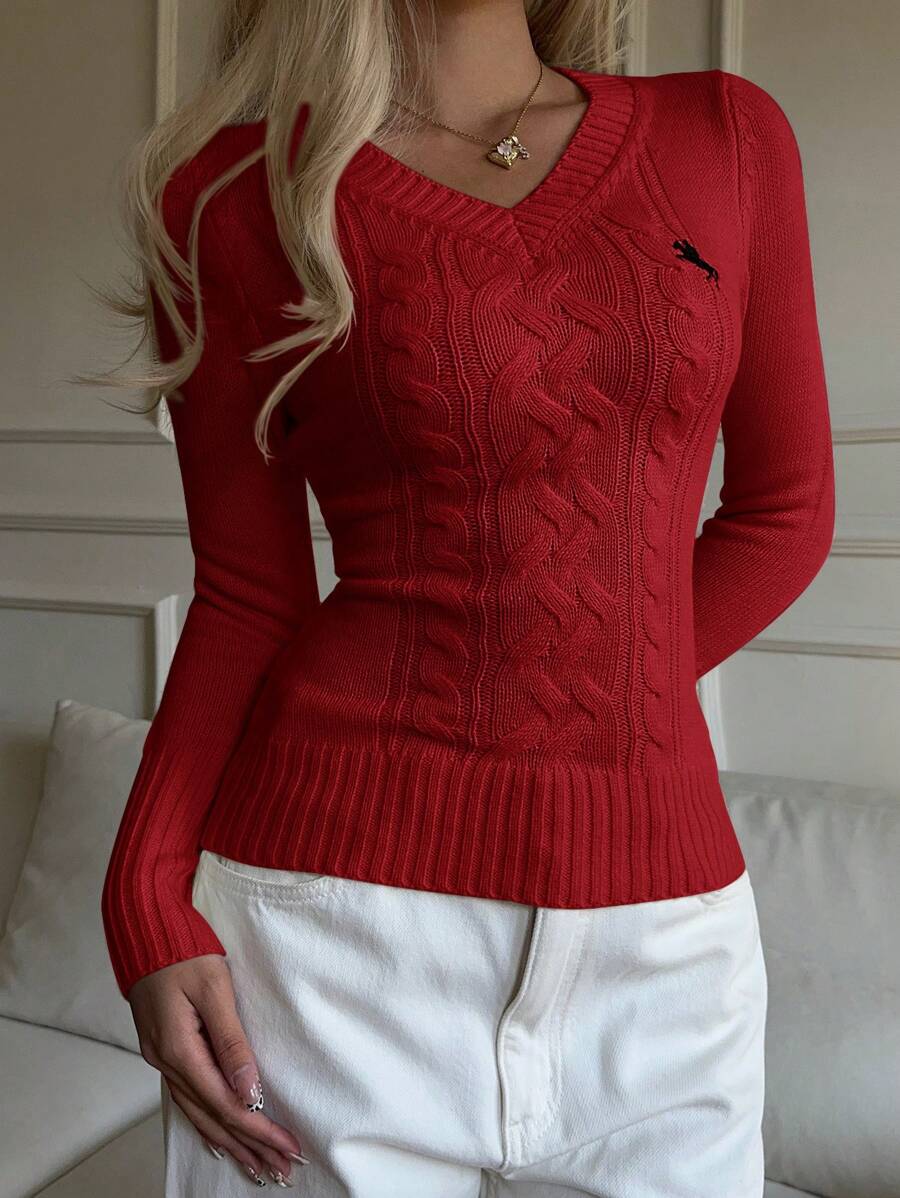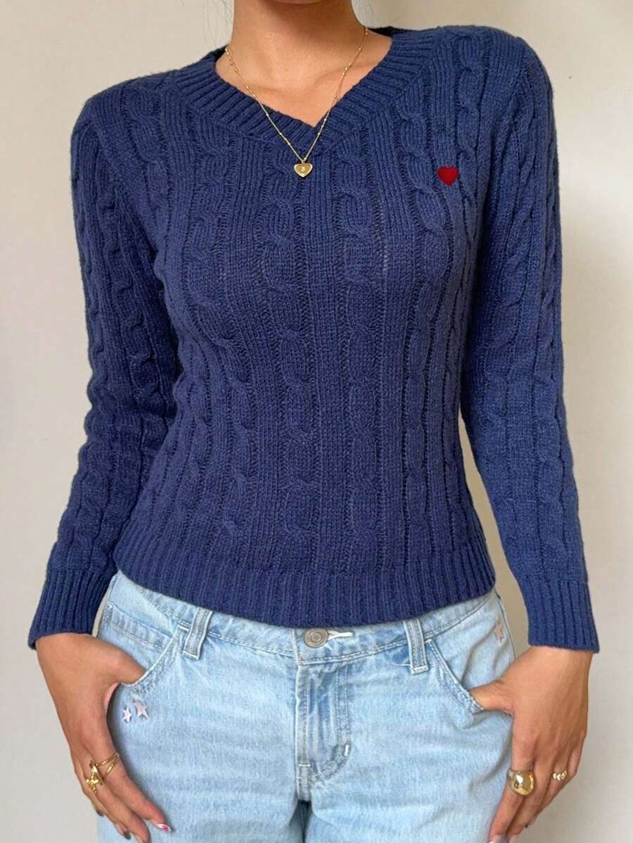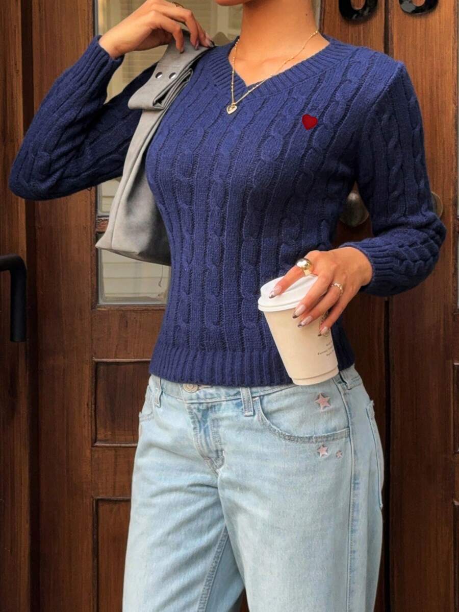 MIU EZwear Women's Plain V-Neck Knit Sweater, Casual And Fashionable For Daily Wear,Long Sleeve Tops,Tops For School In Fall/Winter
