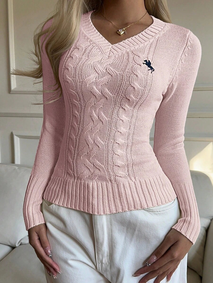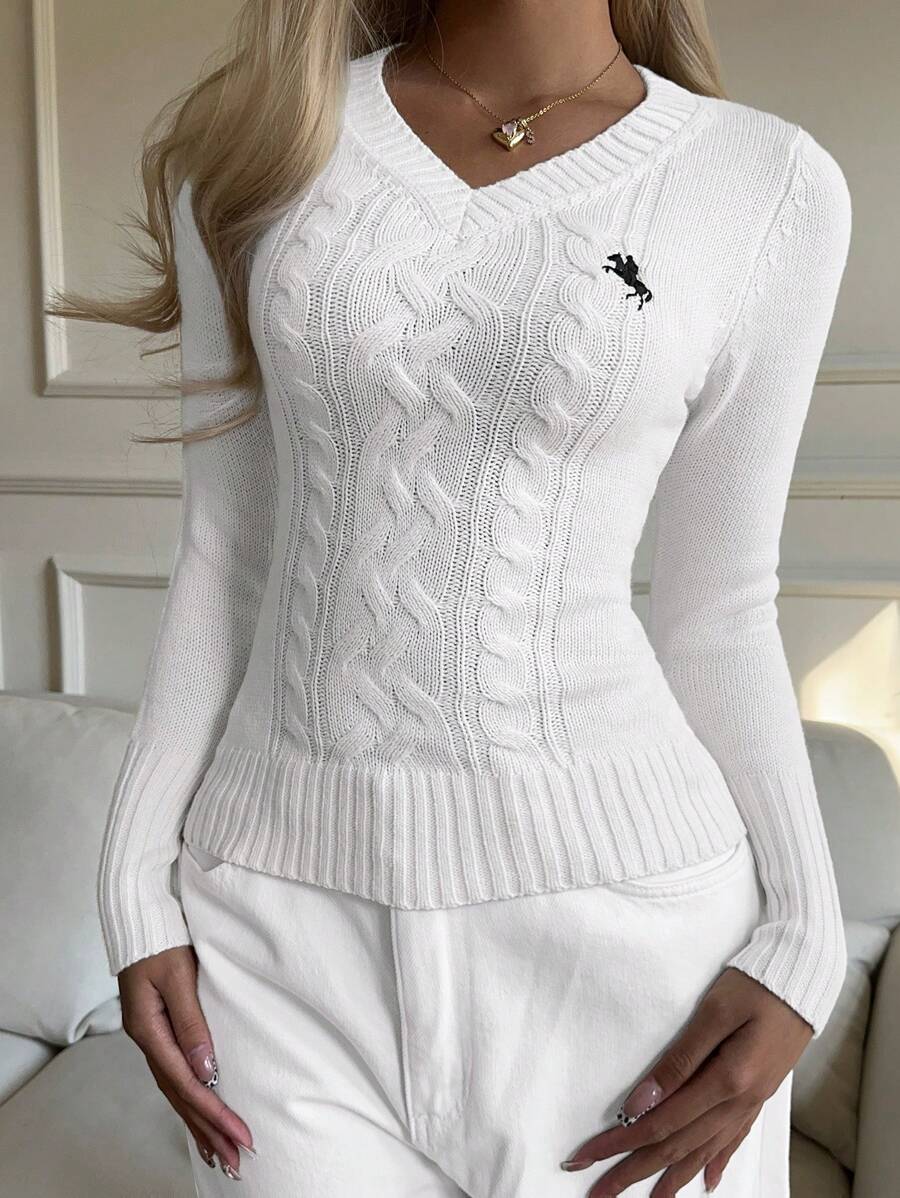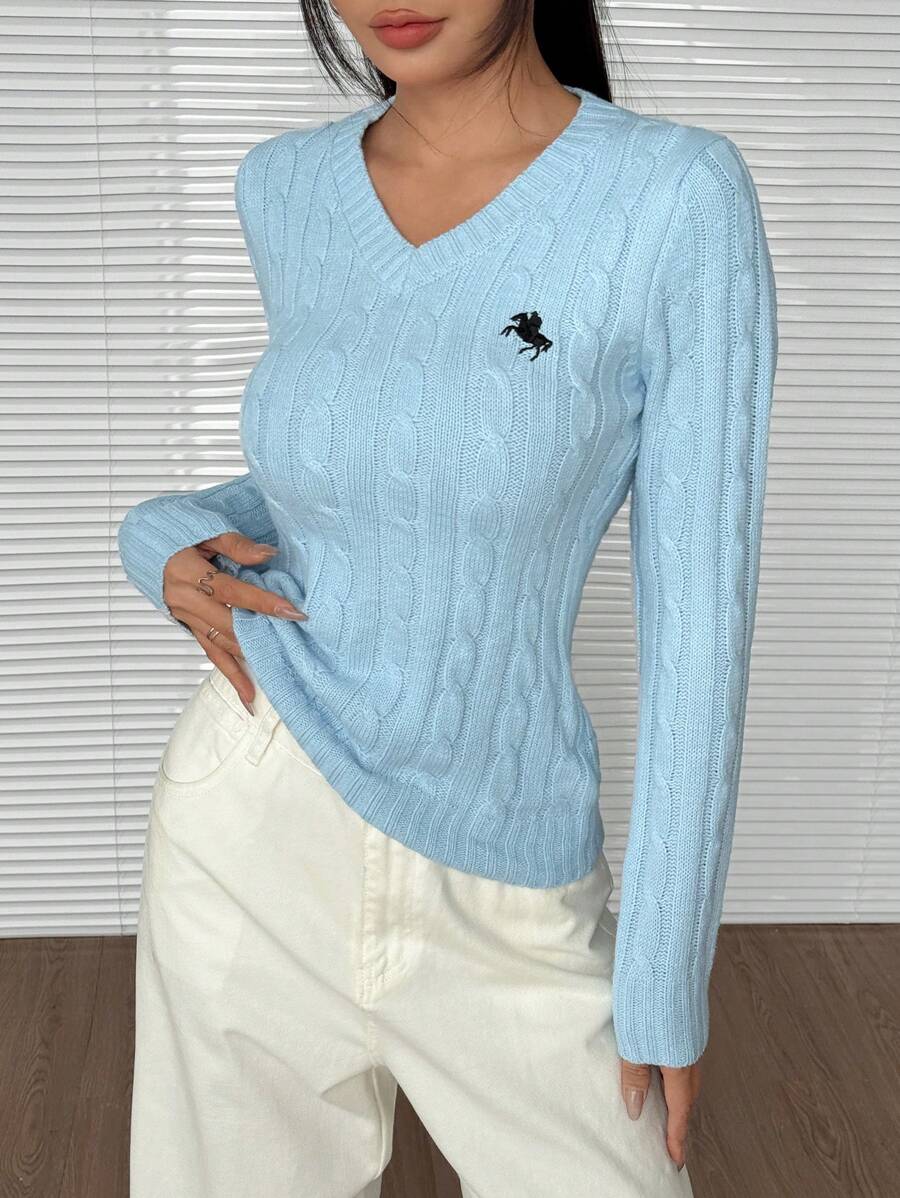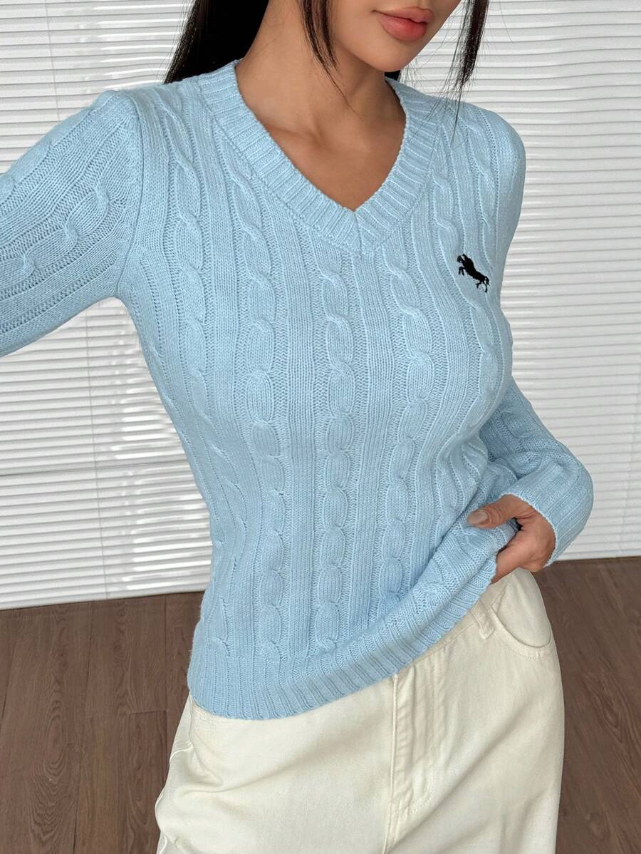 MIU EZwear Women's Plain V-Neck Knit Sweater, Casual And Fashionable For Daily Wear,Long Sleeve Tops,Tops For School In Fall/Winter